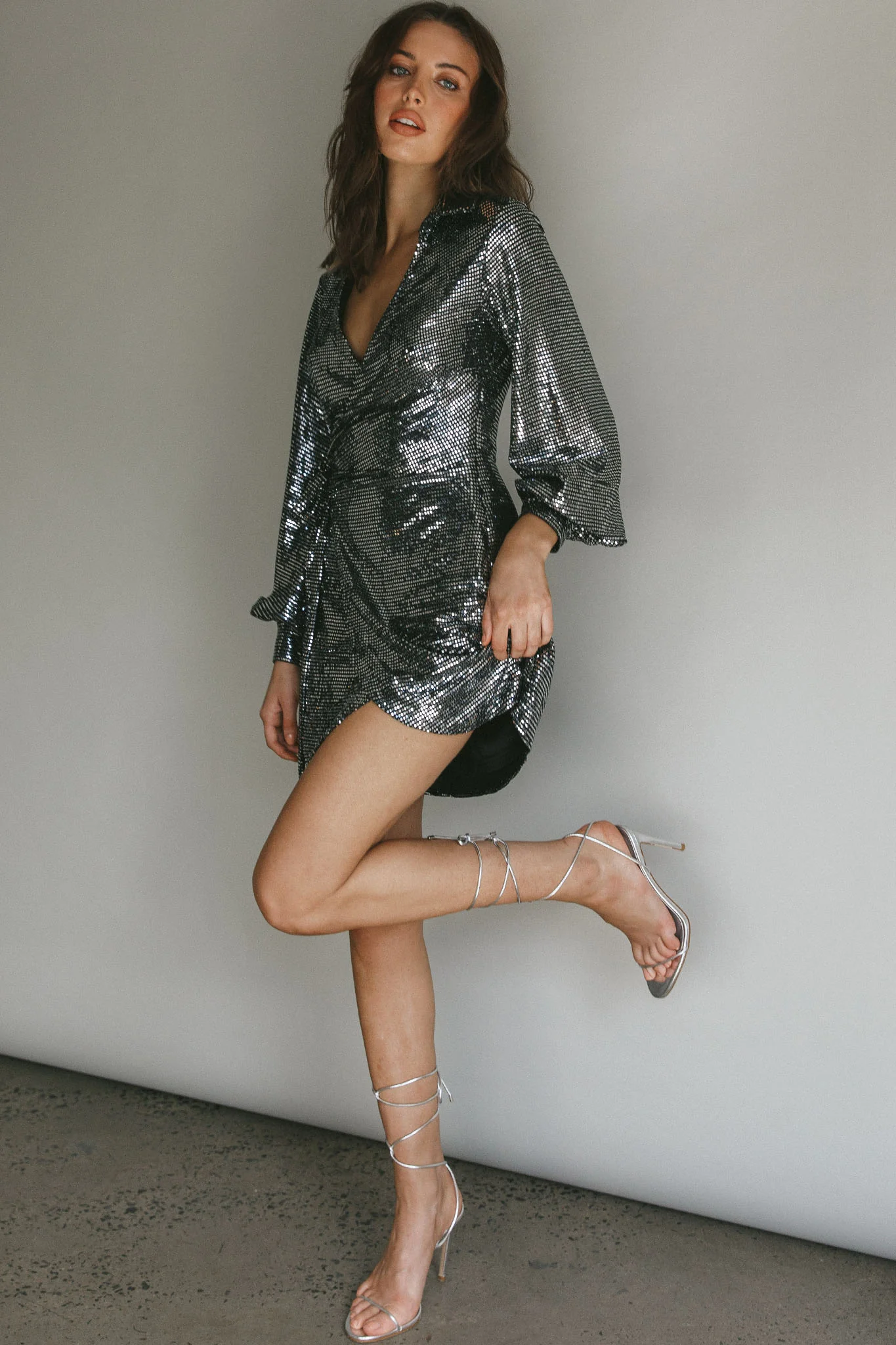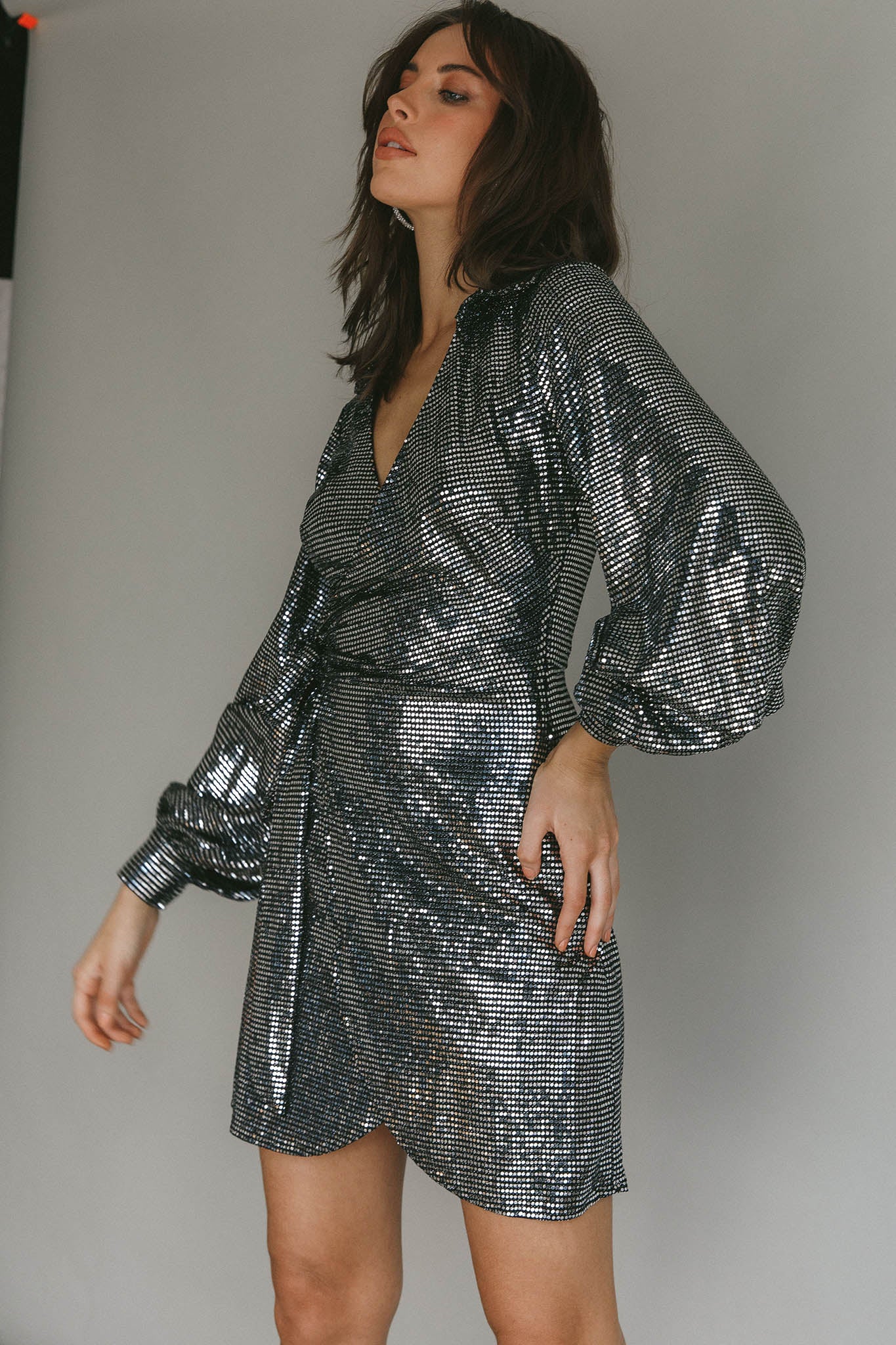 Ruma Faux Wrap Shirt Dress Sequin Metal
