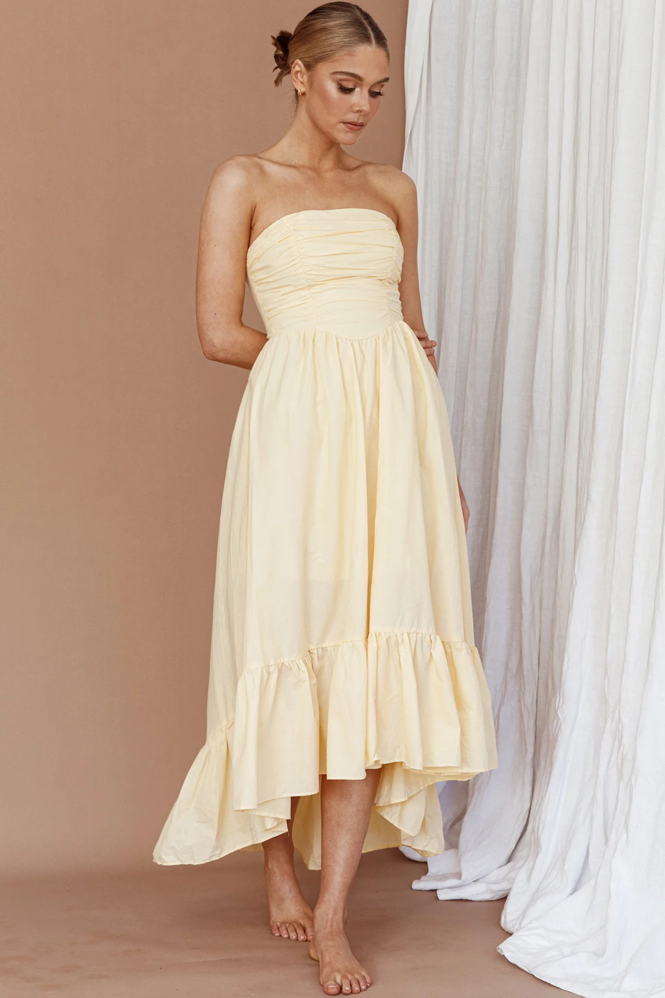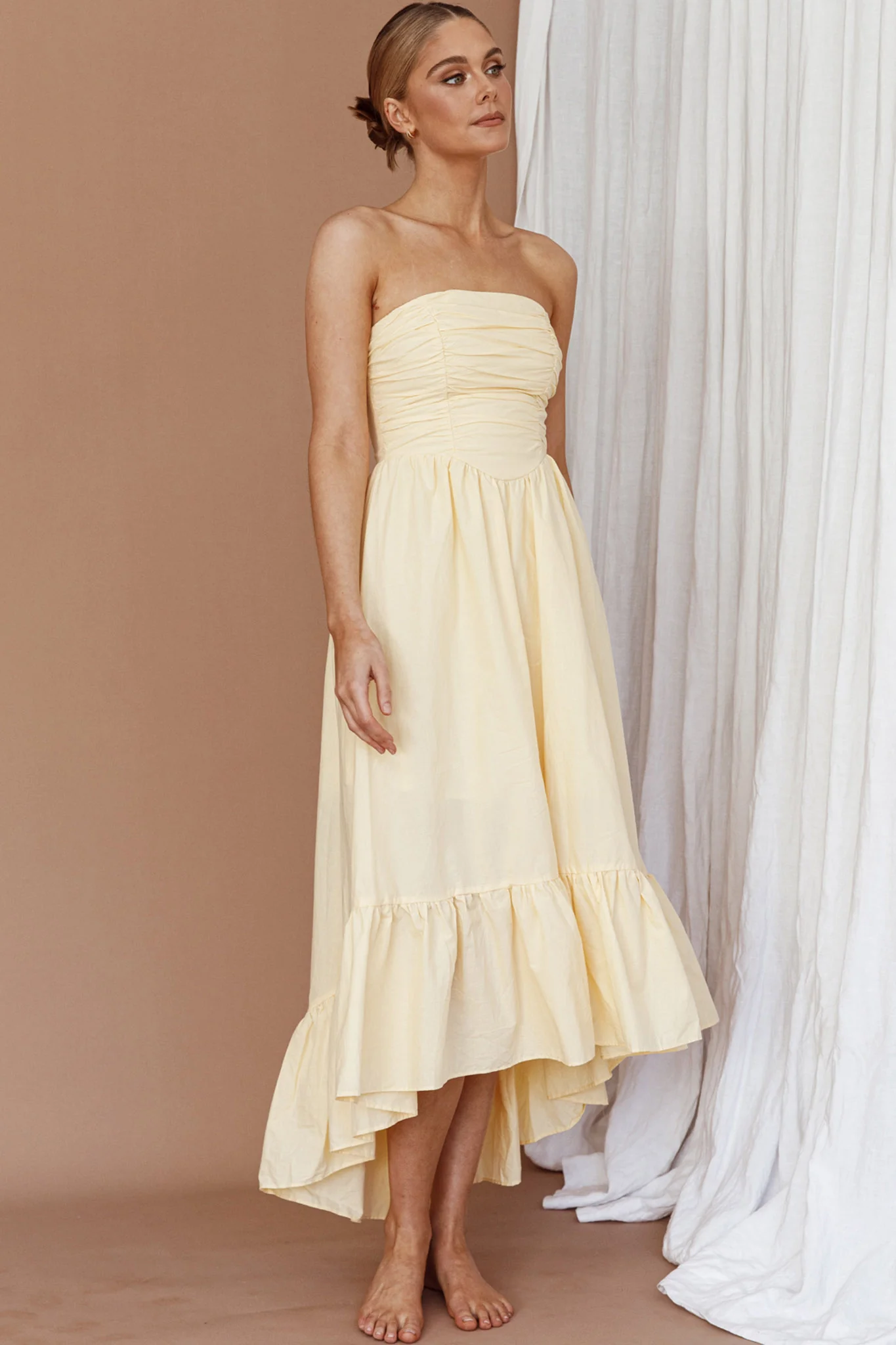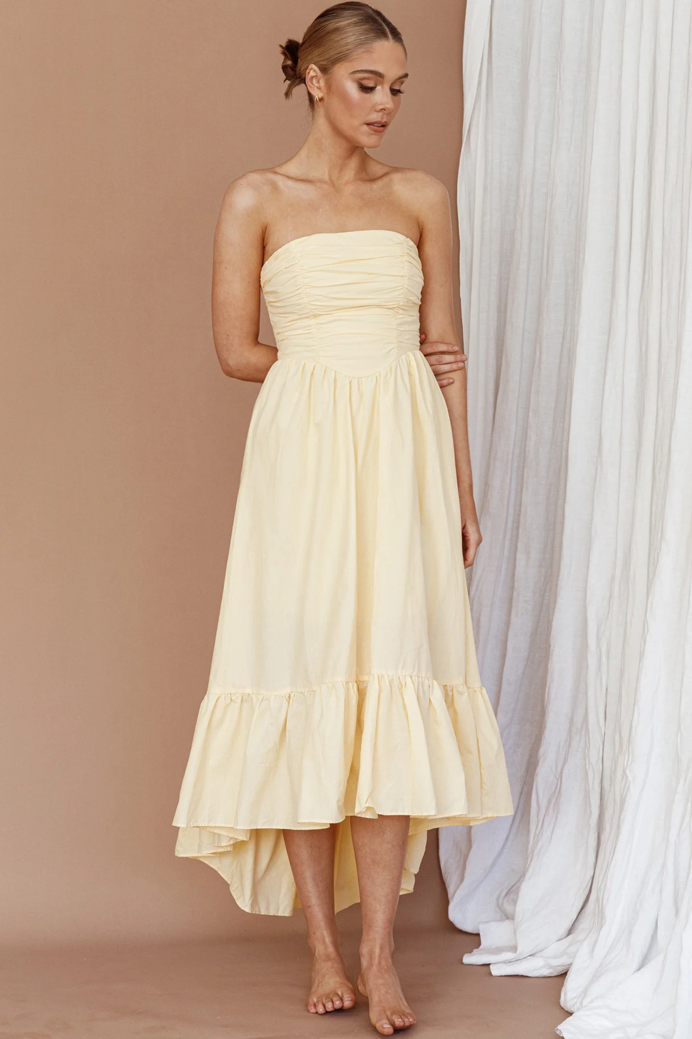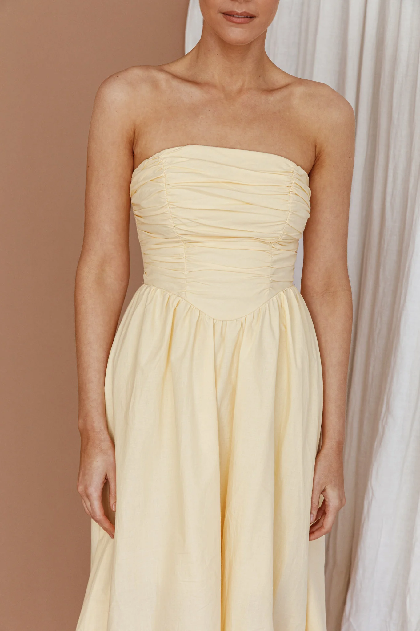 Sunday Mornings Ruched Bust Midi Dress Lemon