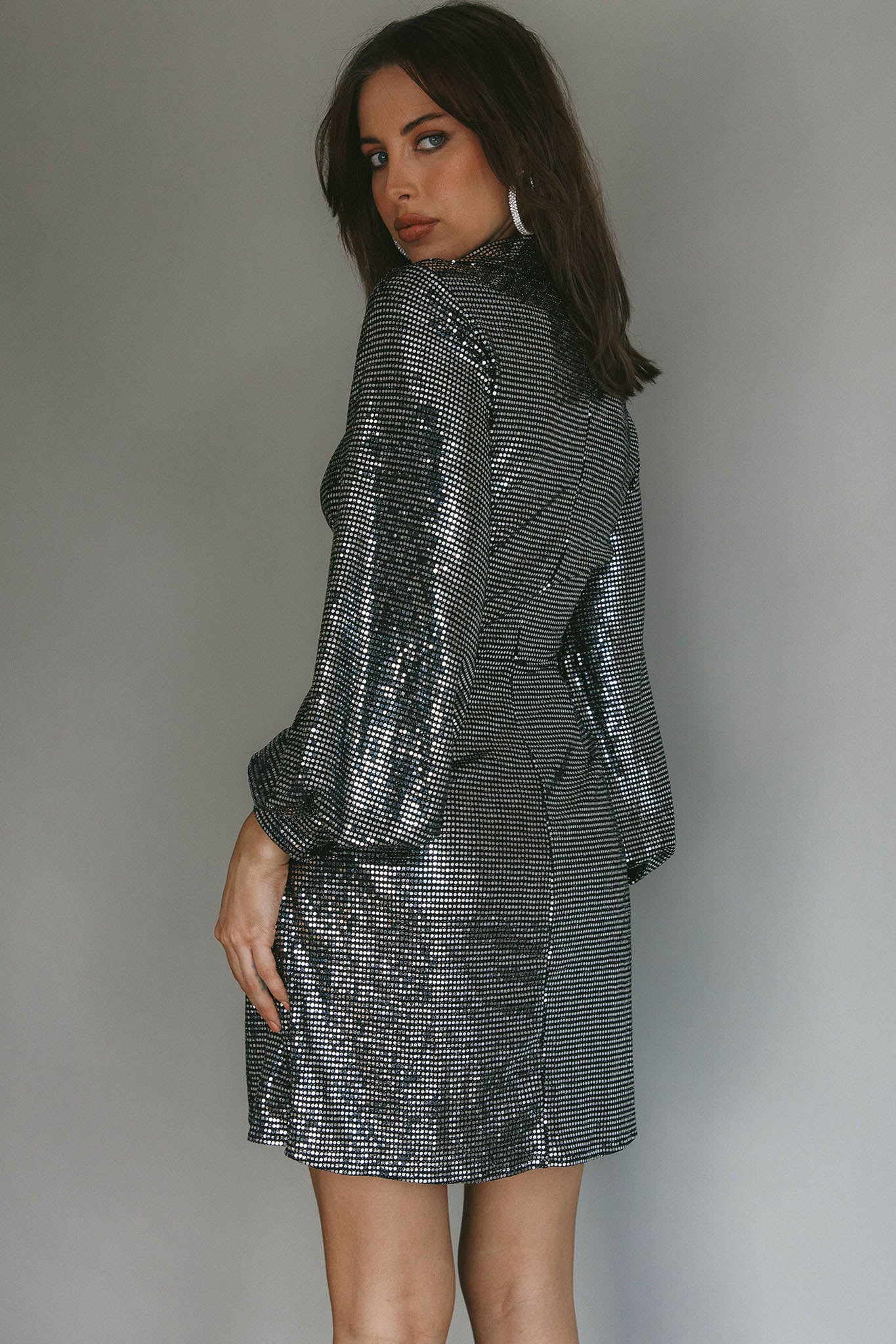 Jayde Balloon Sleeve Sequin Mini Dress Black