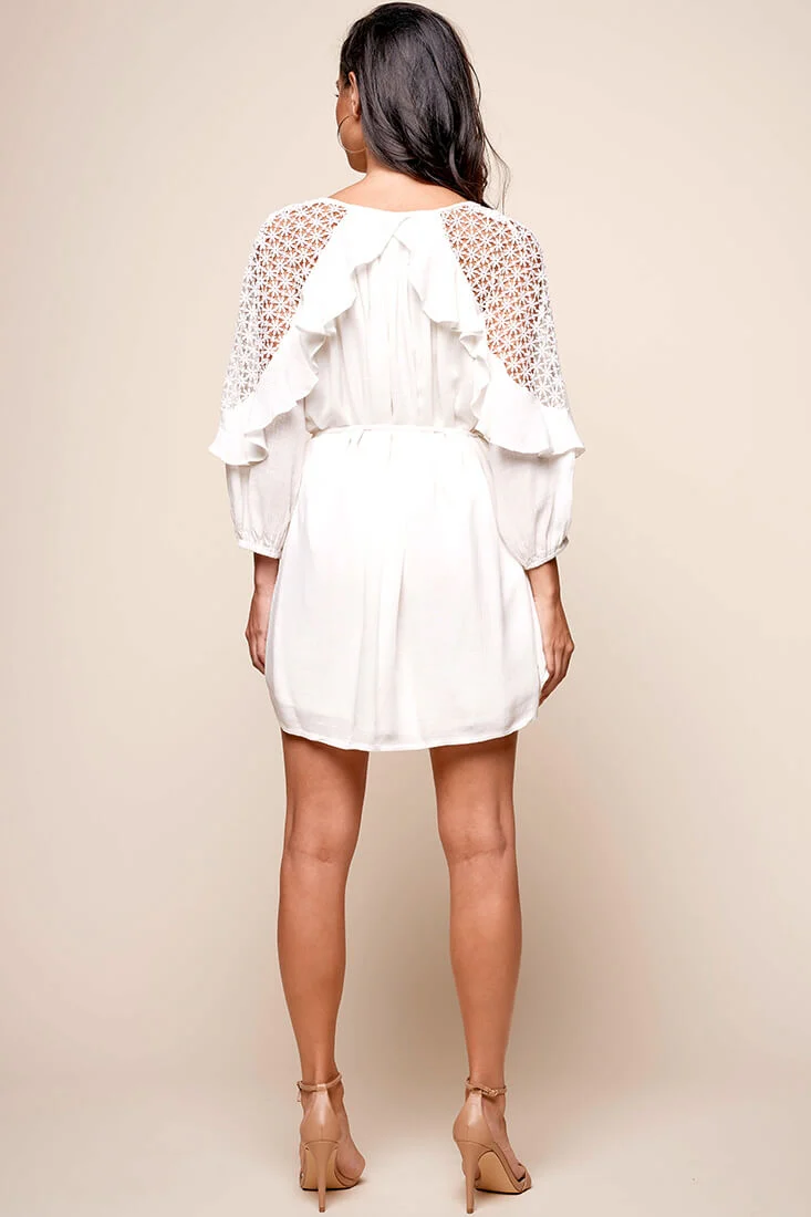 Angel Lace-Up Mini Dress White