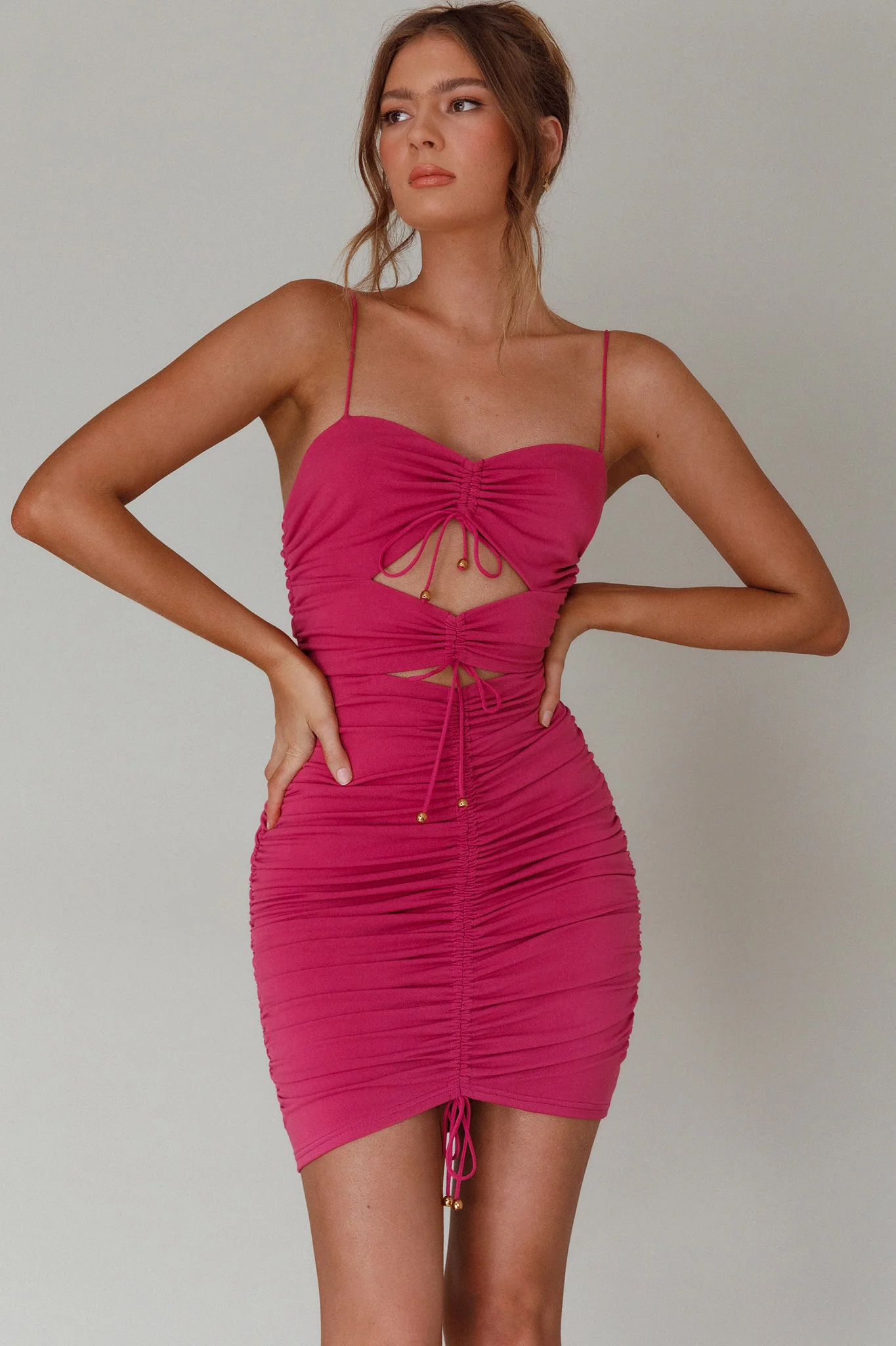 Casanova Ruched String-Tie Dress Fuchsia