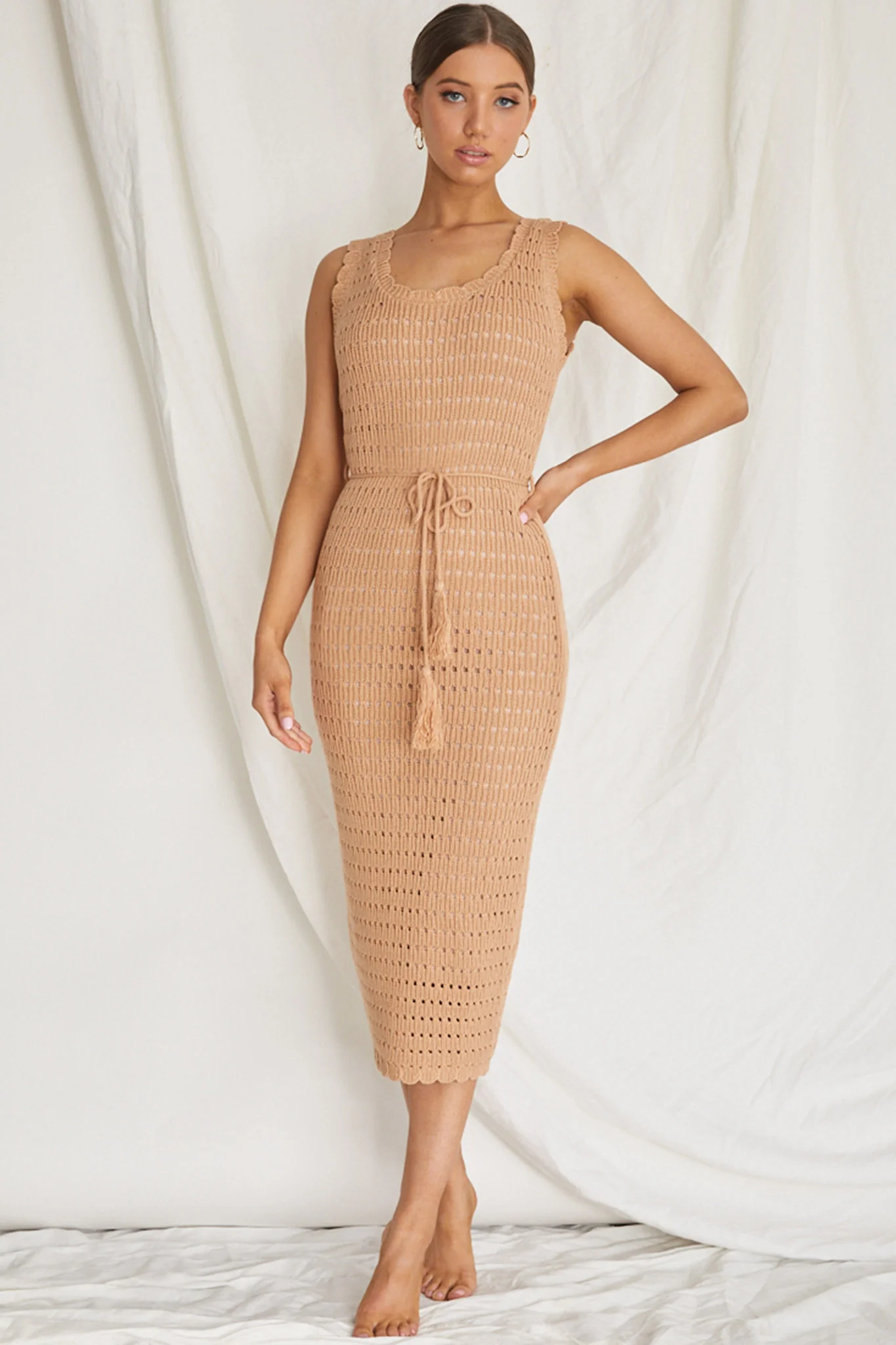Wander Lust Crochet Midi Dress Mocha