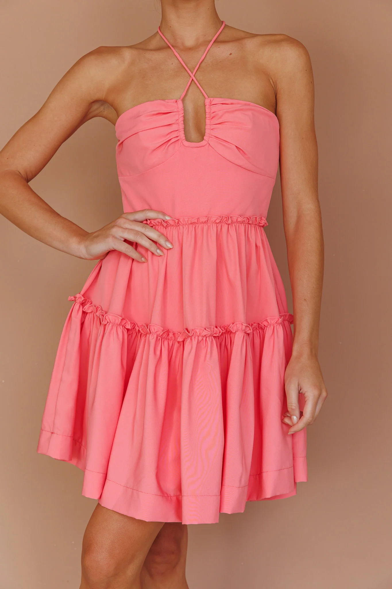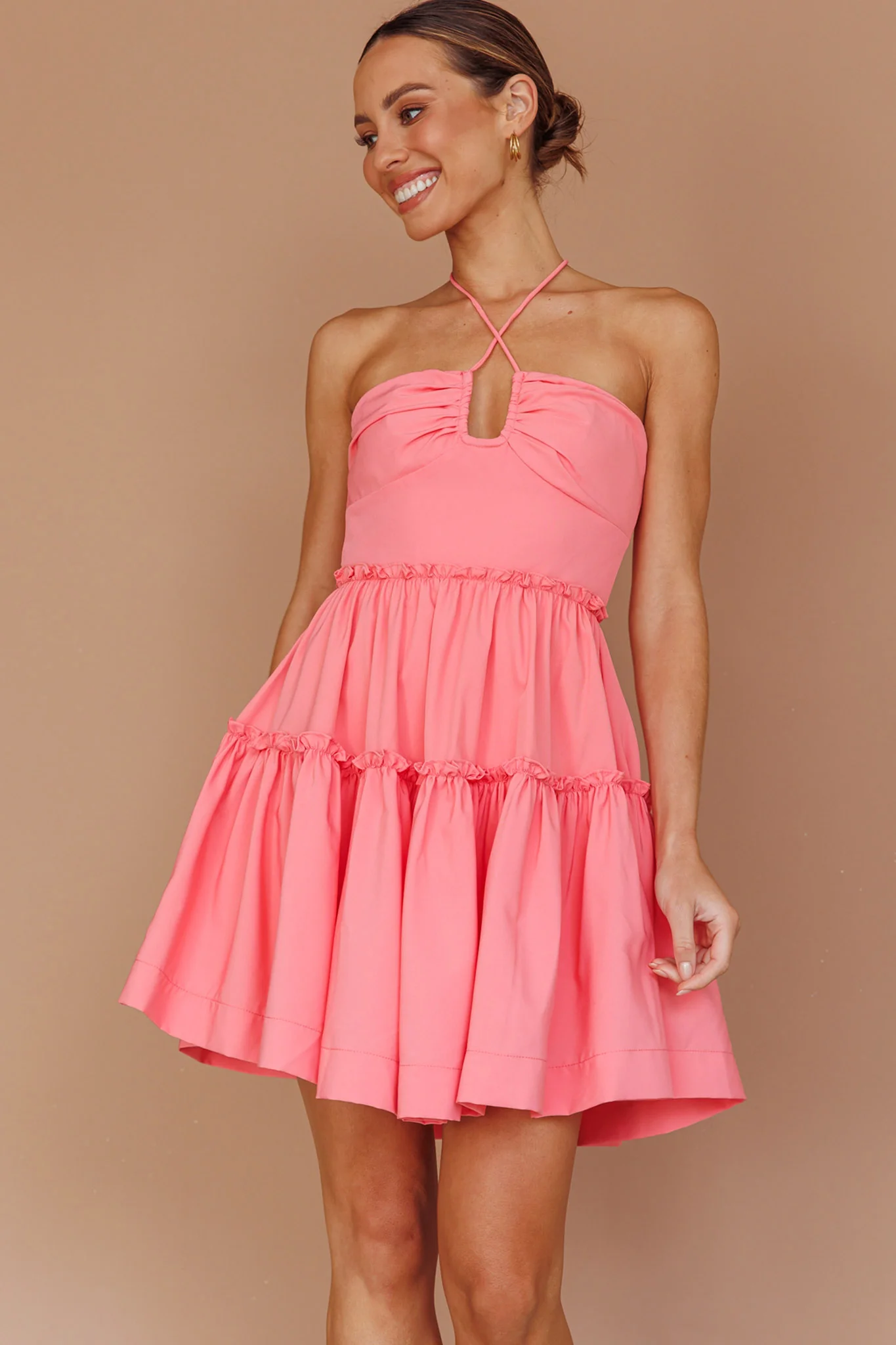 Horizons Frill Trim Mini Dress Pink