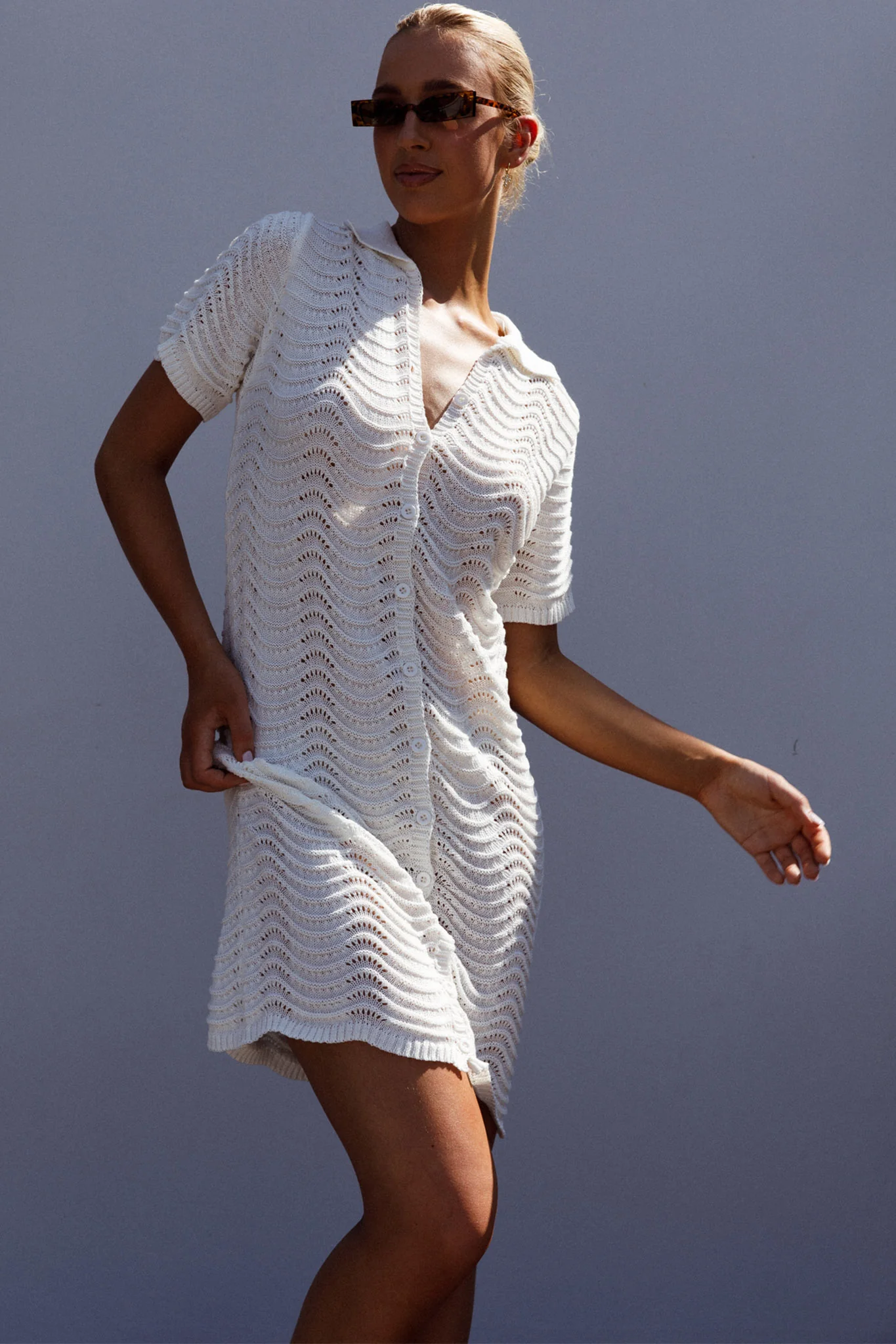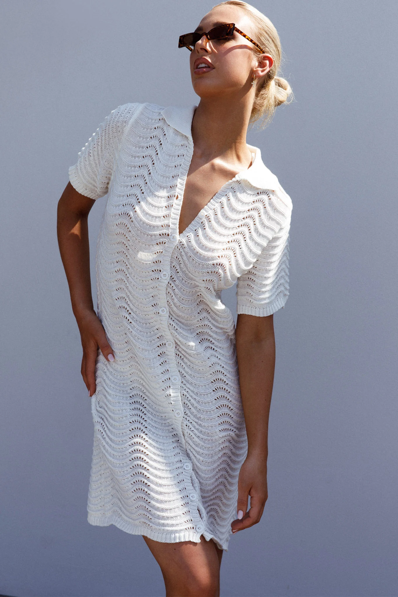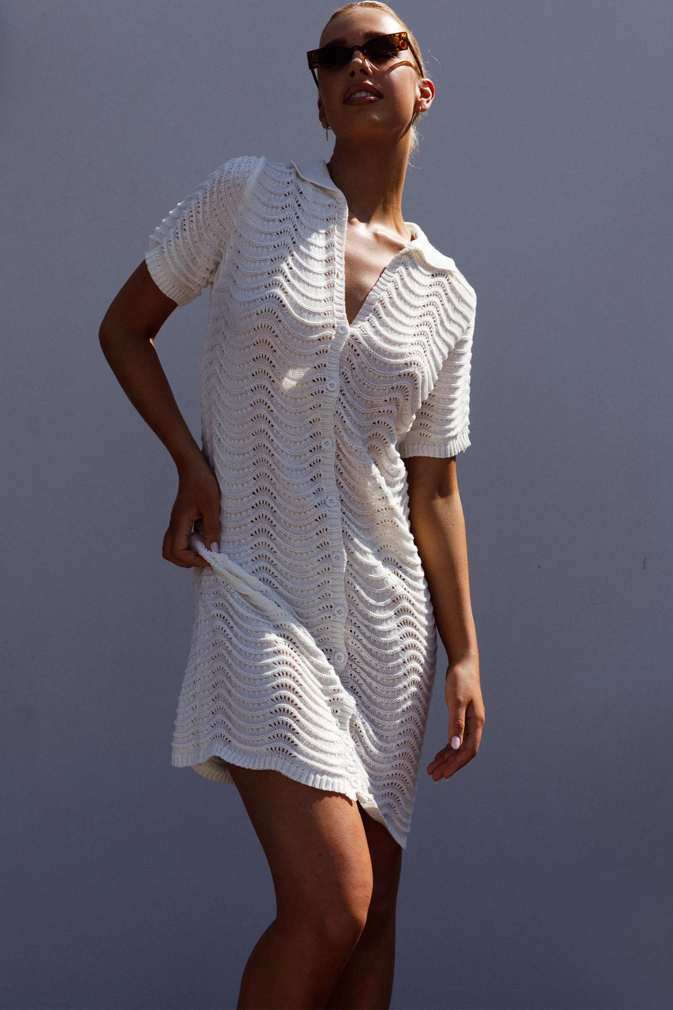 Glennon B Crochet Shirt Dress White