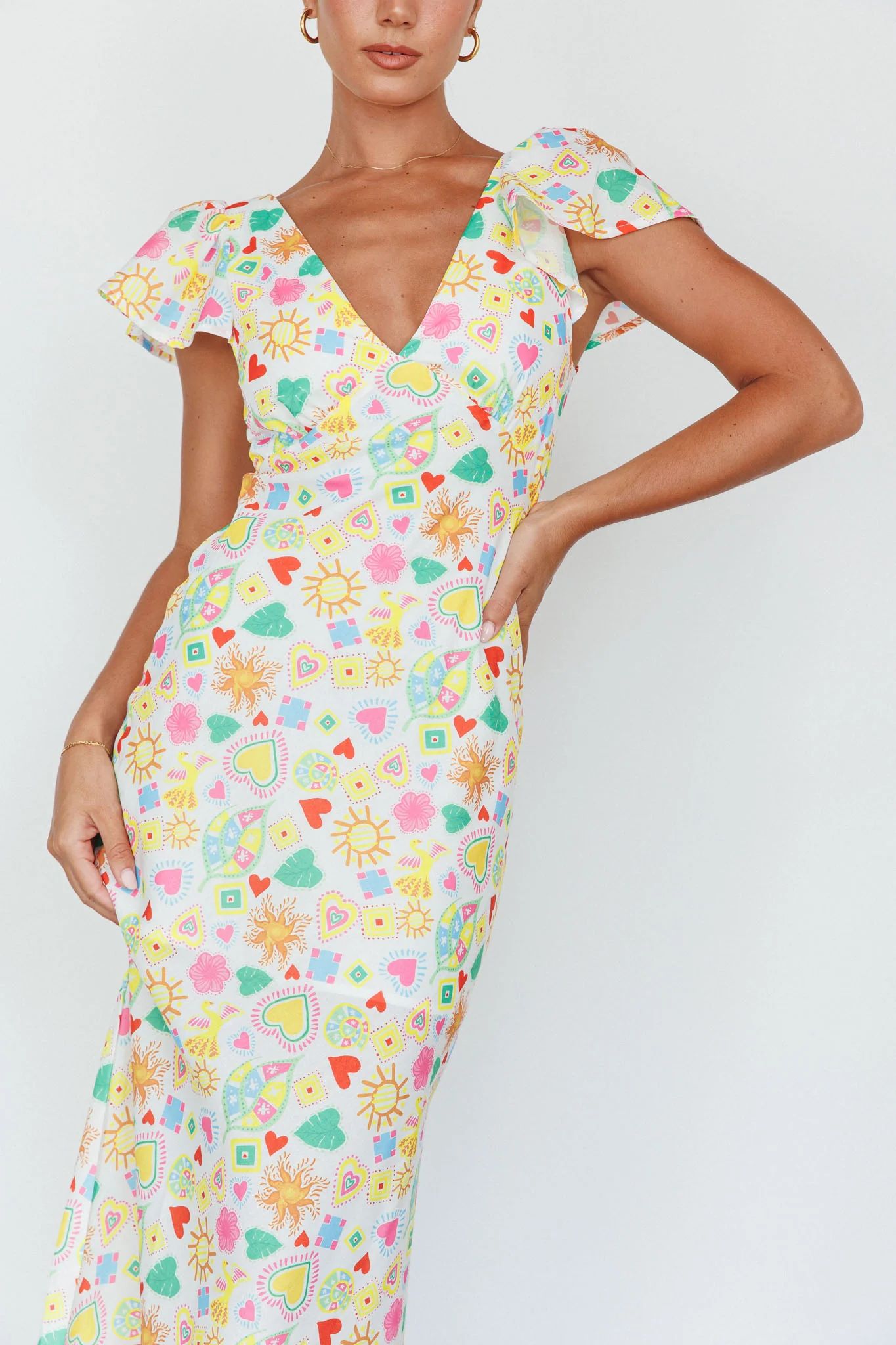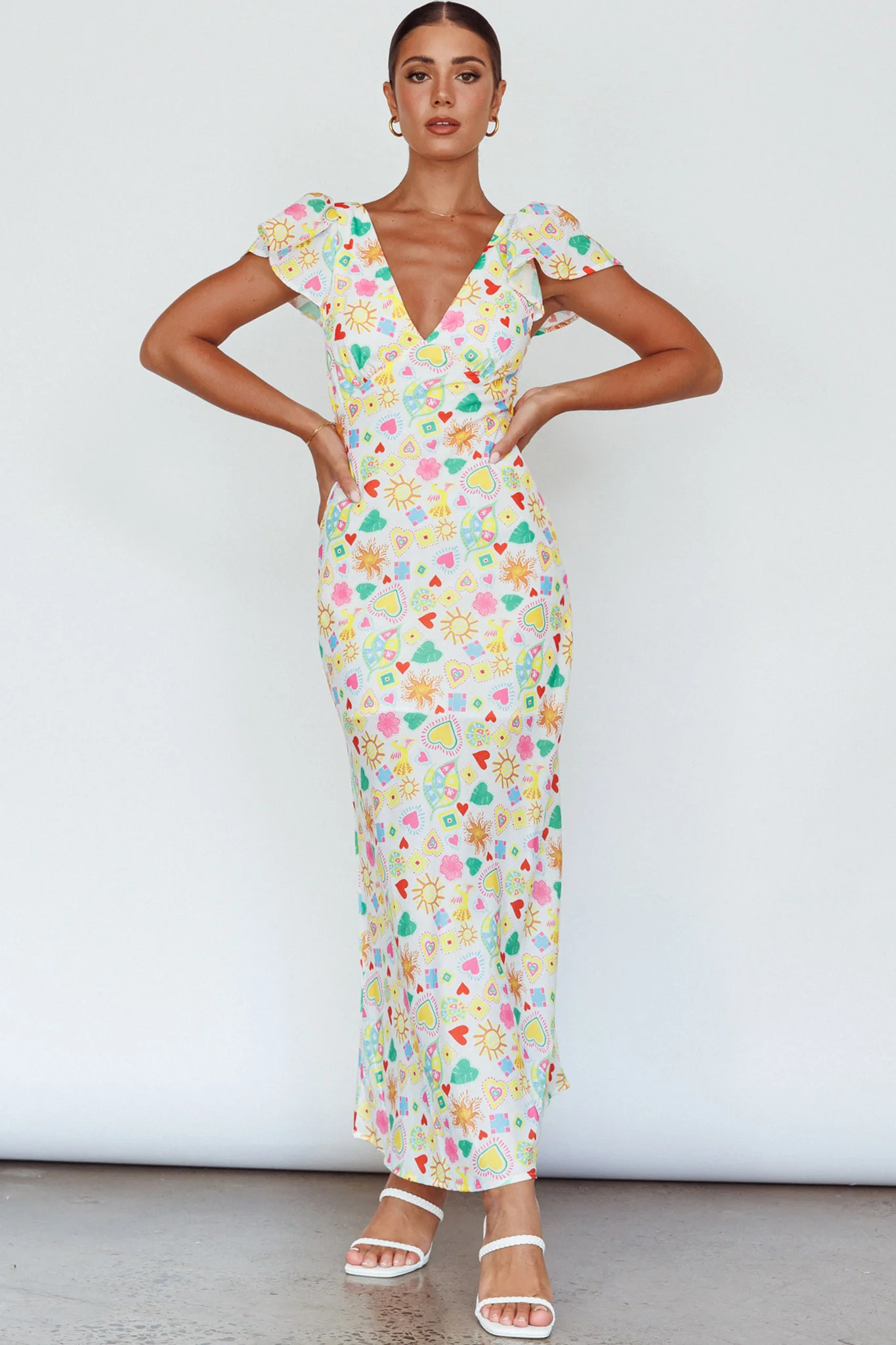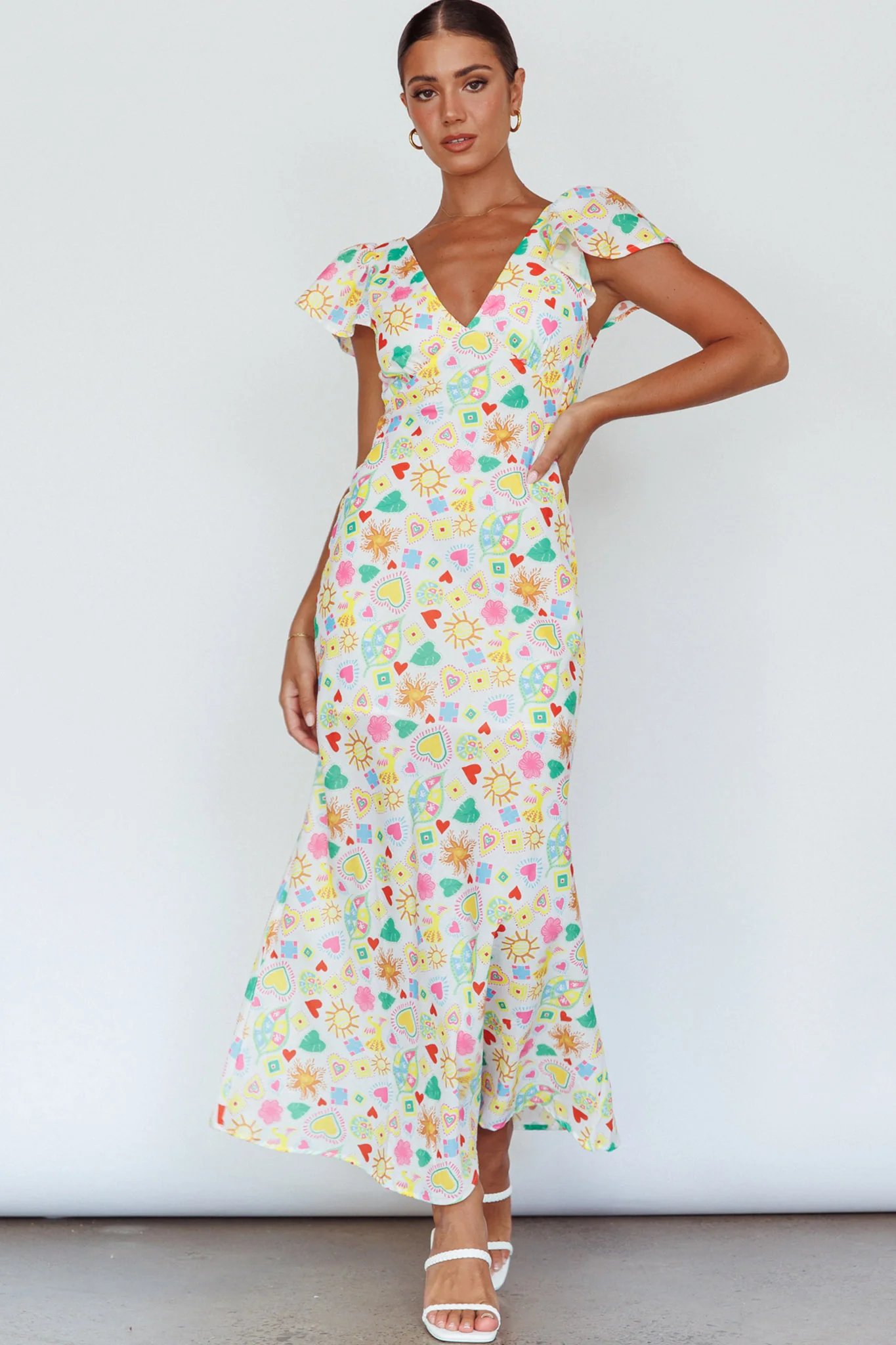 Long Summer Flutter Sleeve Maxi Dress Printed White