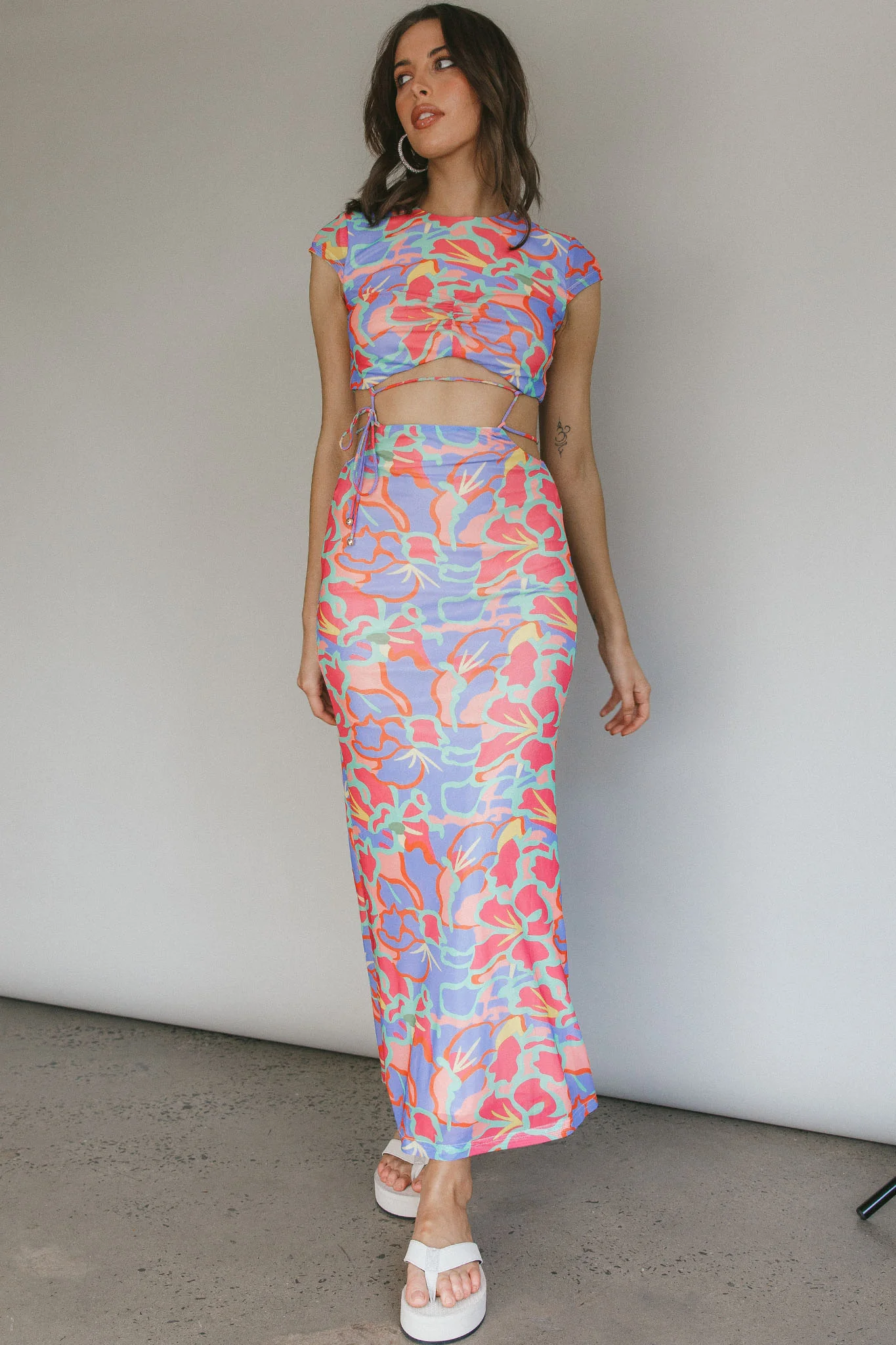 Cyndi Open Back Halterneck Maxi Dress Pink Multi