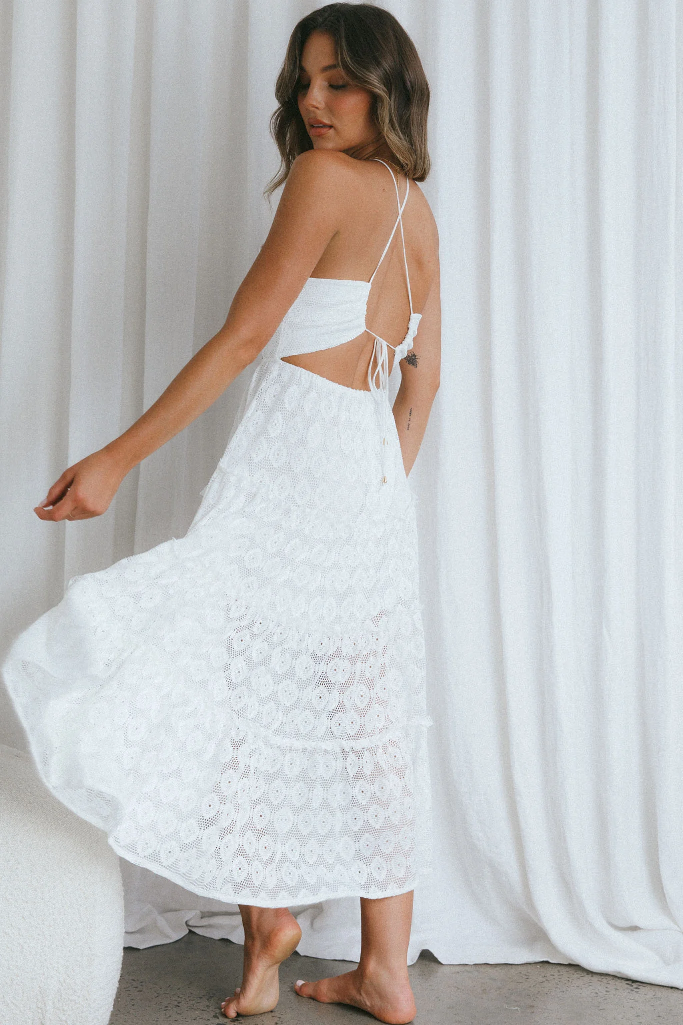 Seraya Lace-Up Back Dress White