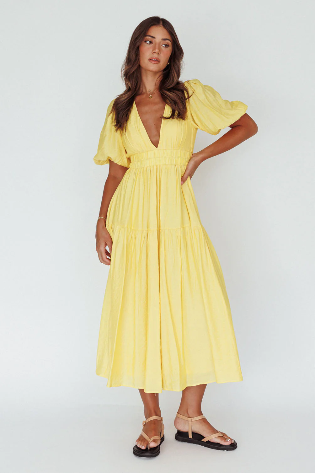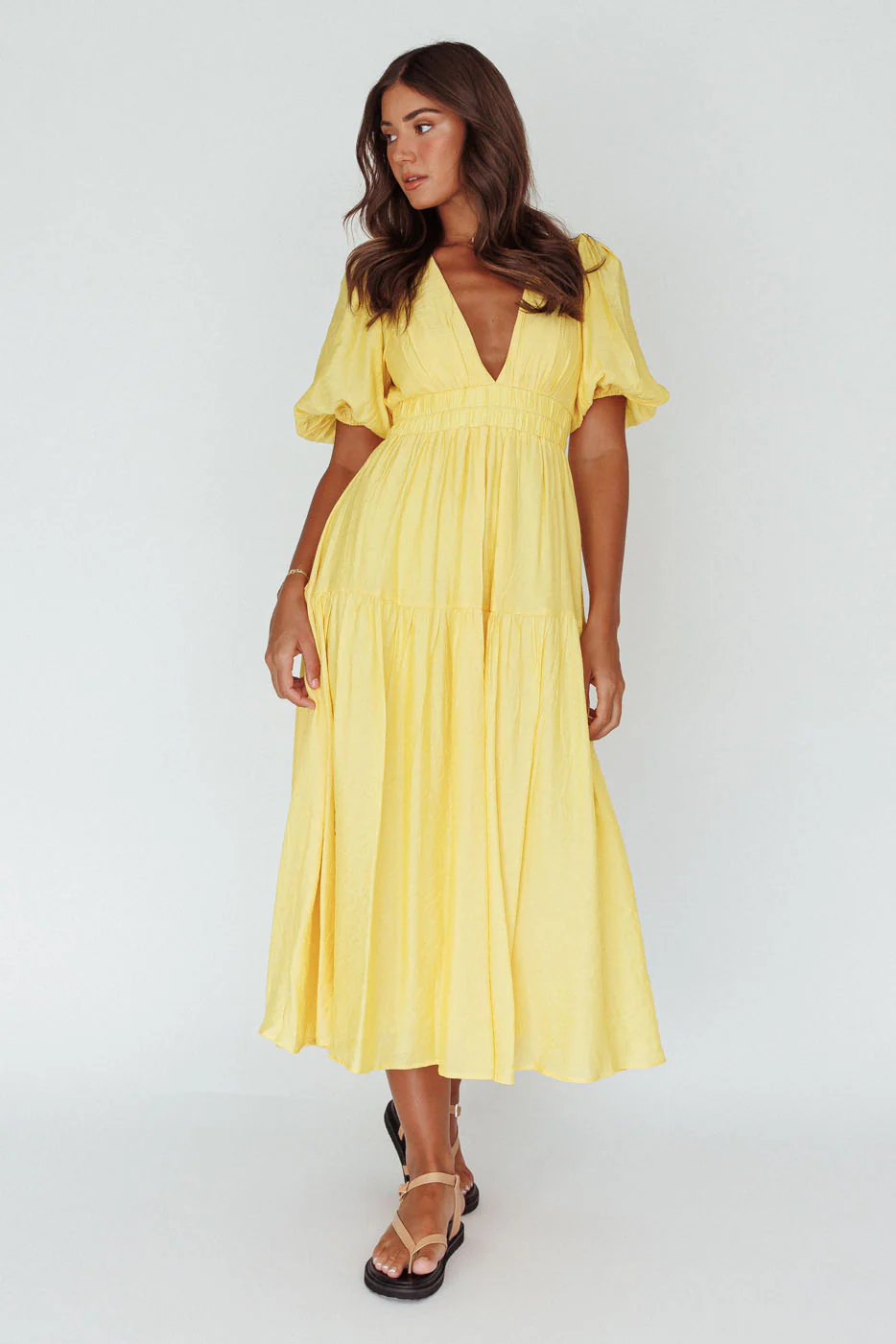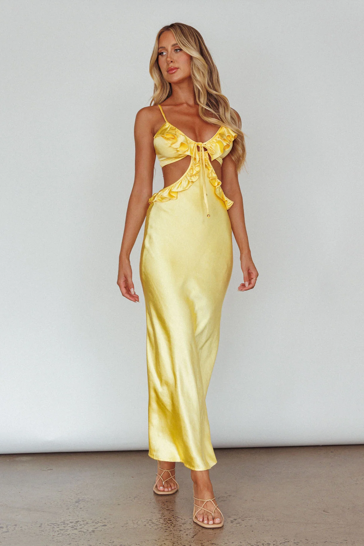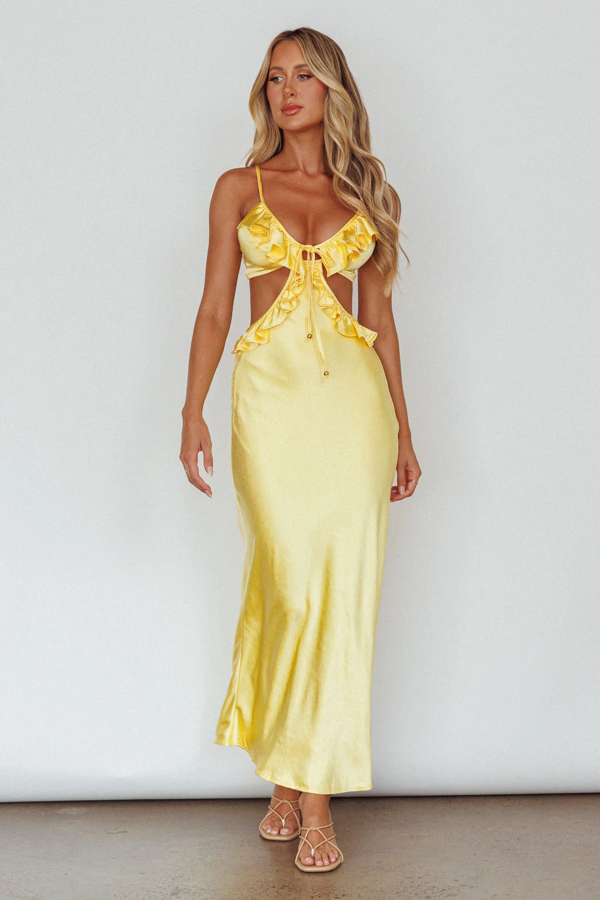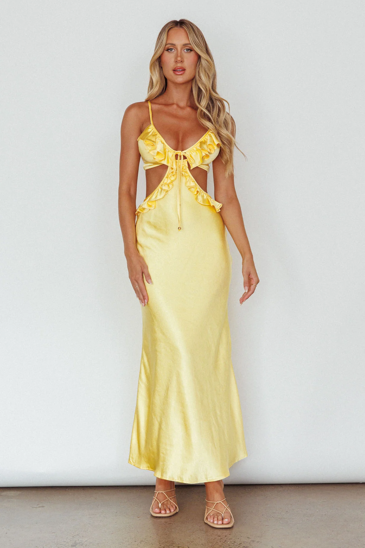 Stole My Heart Frill Trim Maxi Dress Yellow