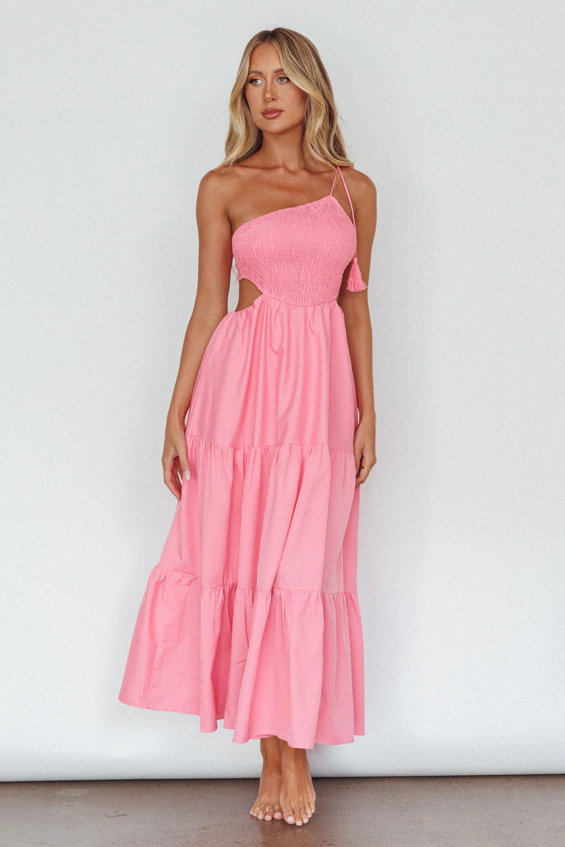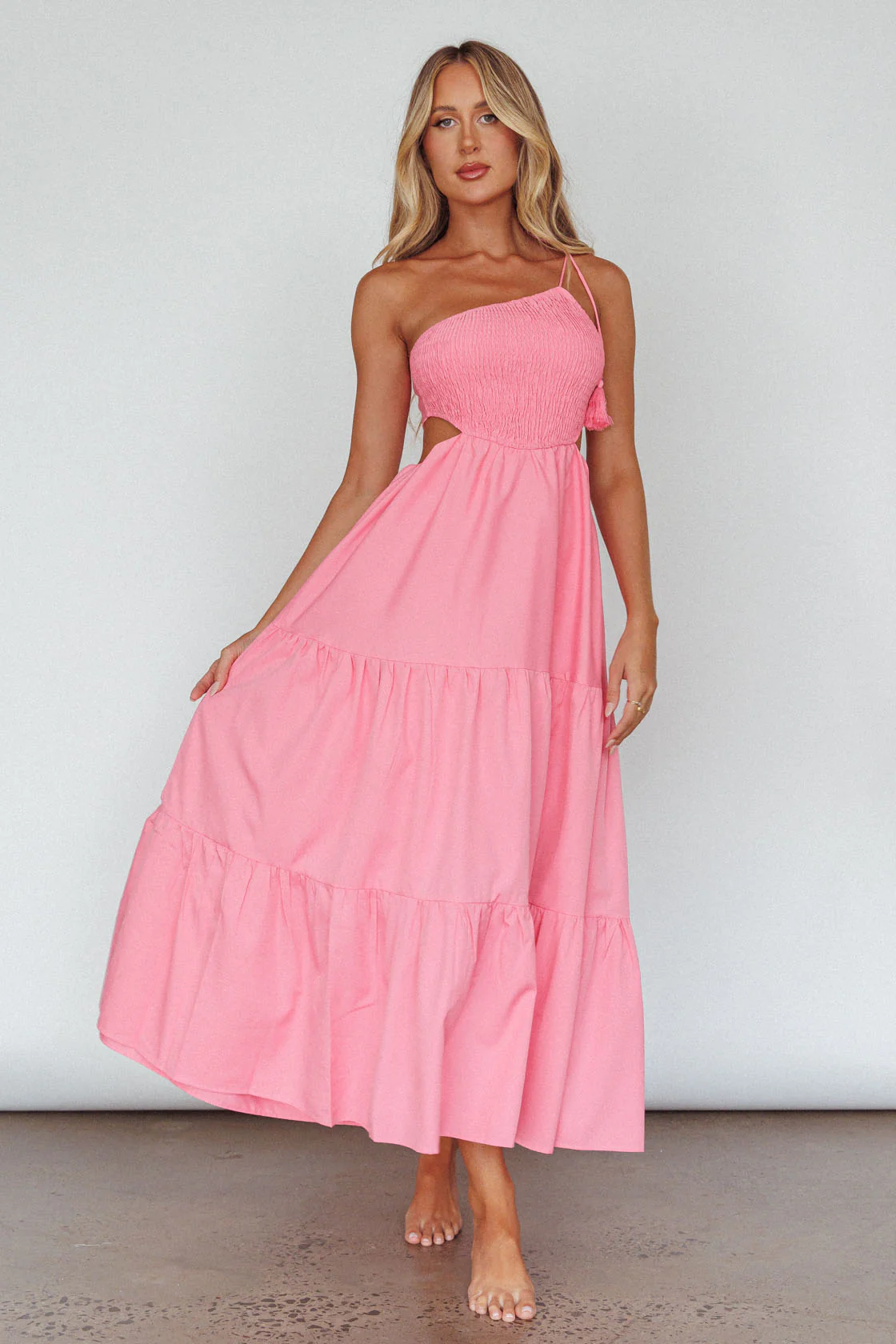 Tamzin Shirred Bodice Midi Dress Soft Pink