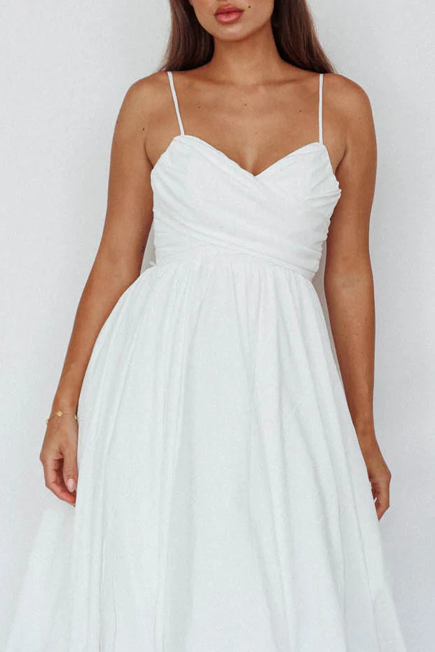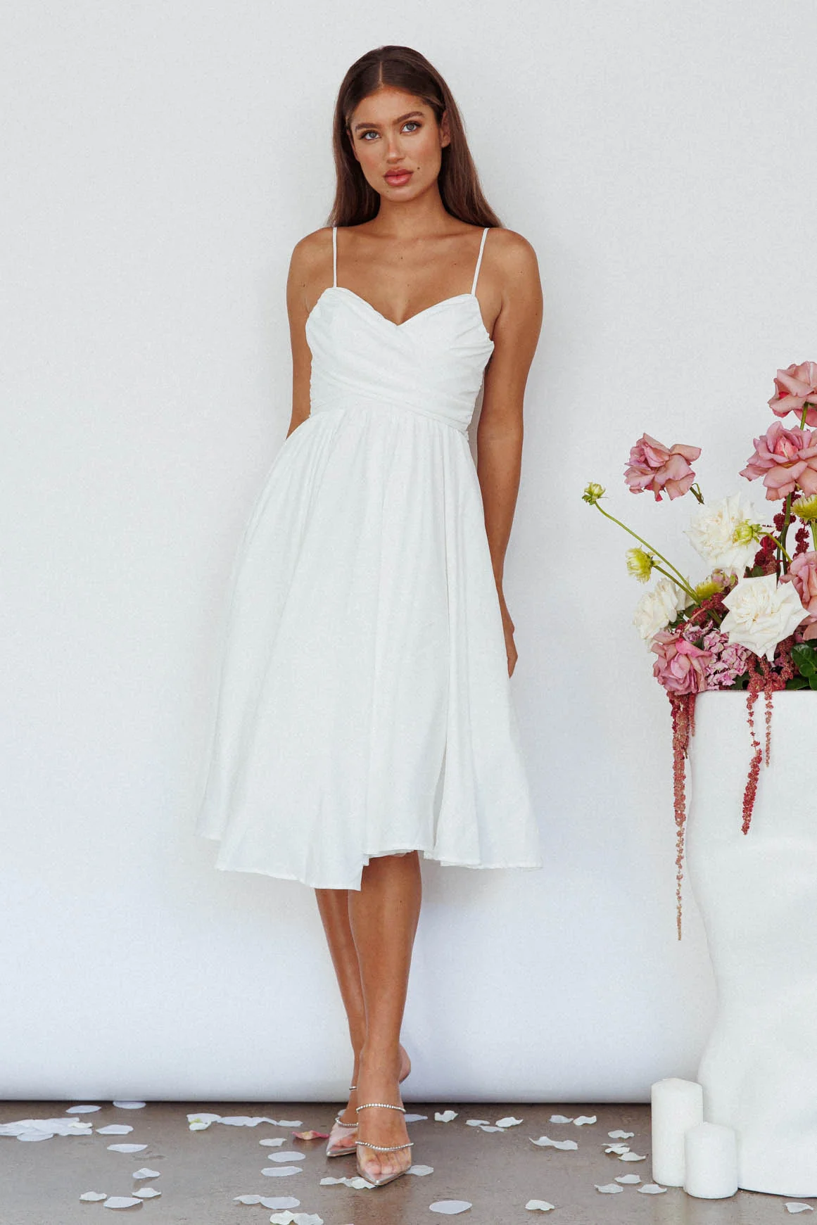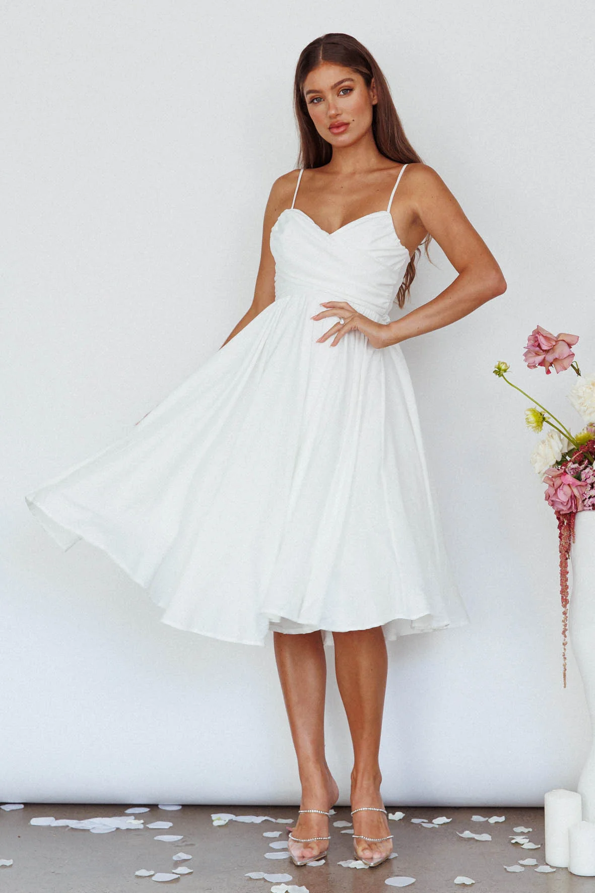 Charade Ruffle Shoulder Corset Back Eyelet Dress White