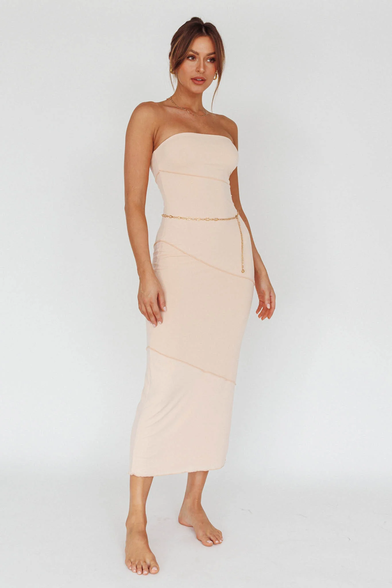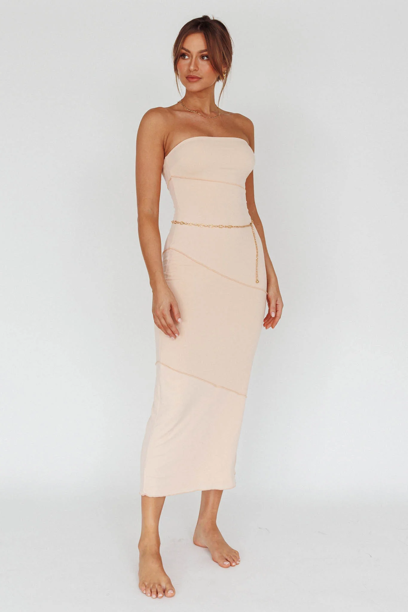 Sarita String Bust Midi Dress Beige