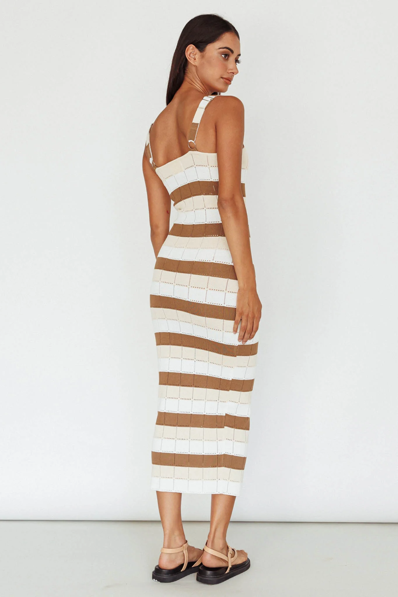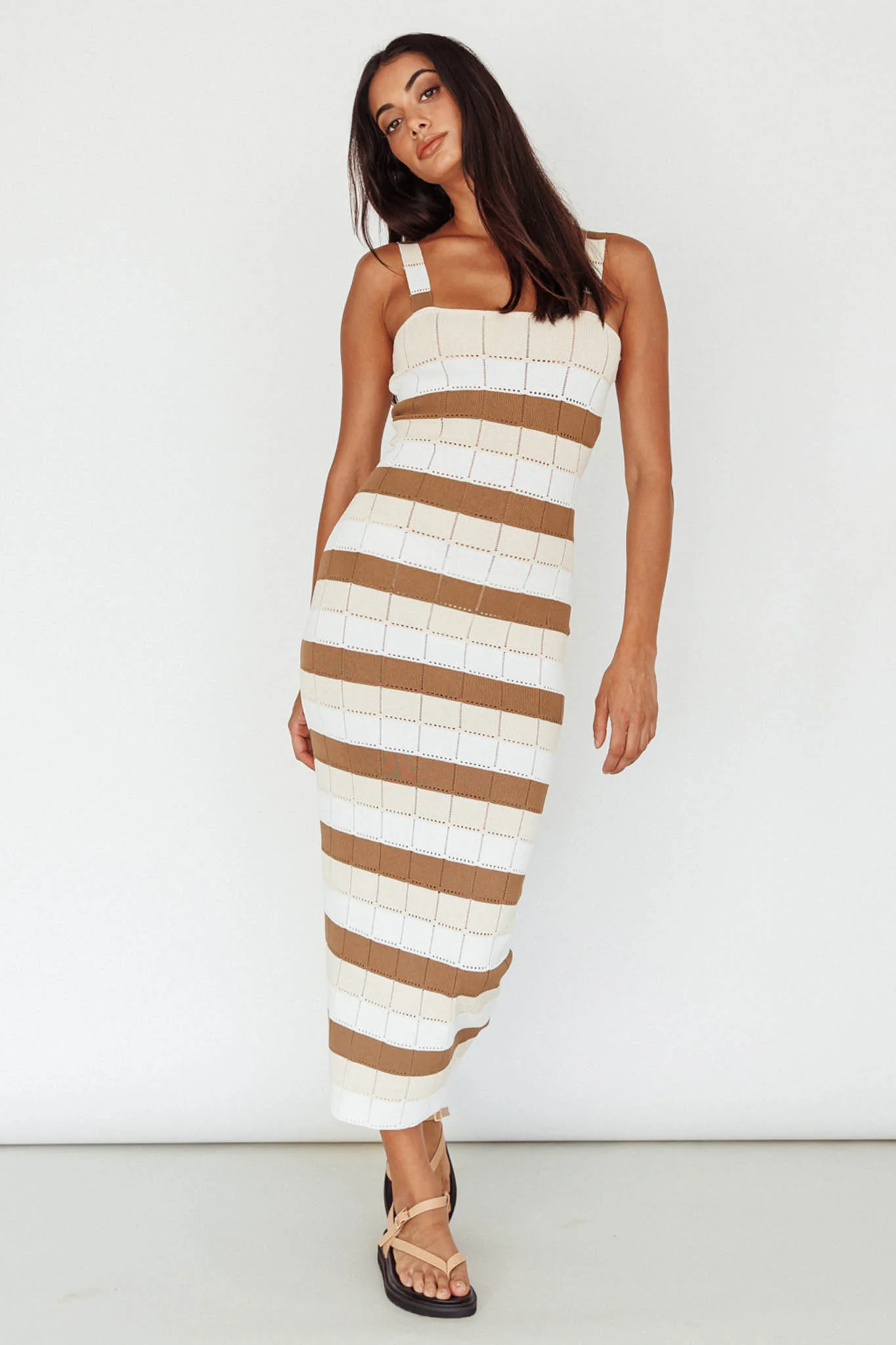 Chase The Sunrise Knit Midi Dress Striped Chocolate/White