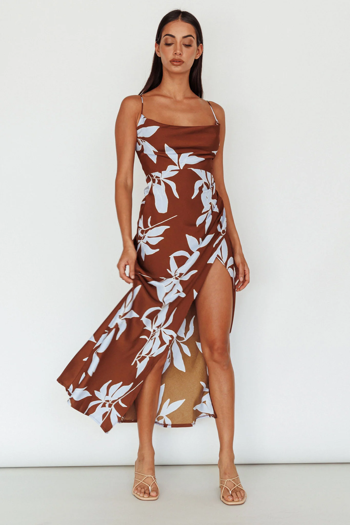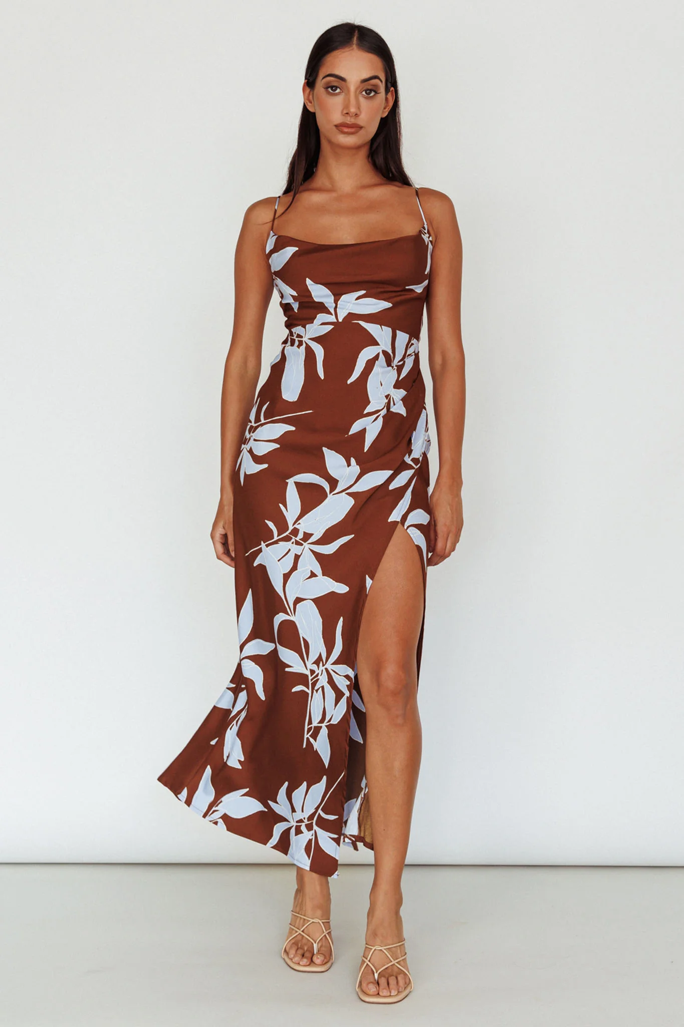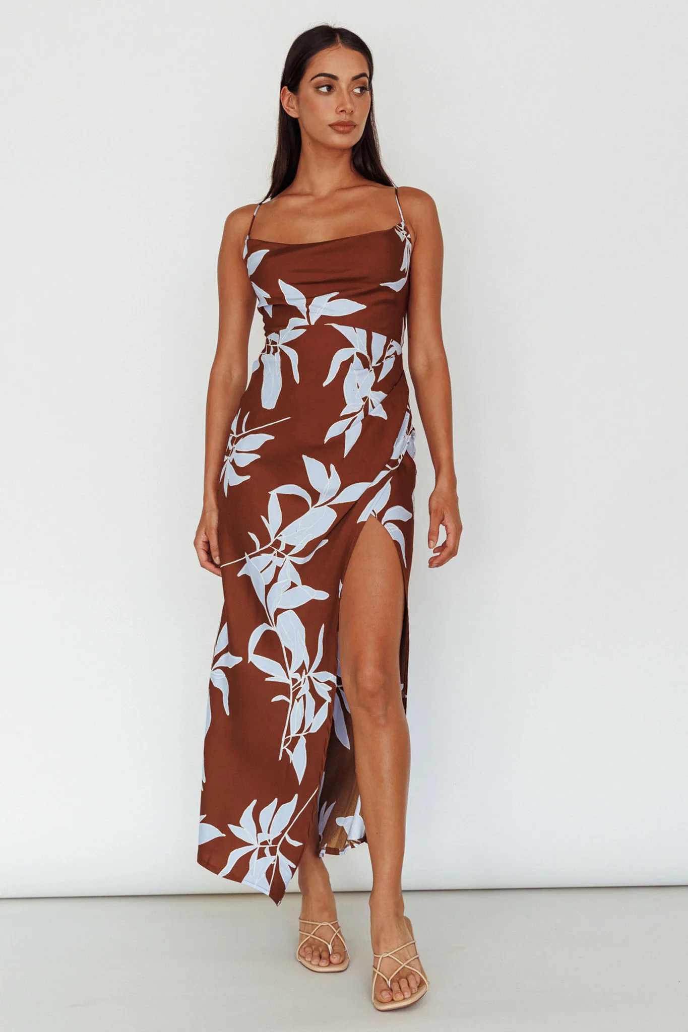 Morea Cowl Neck Maxi Dress Floral Brown