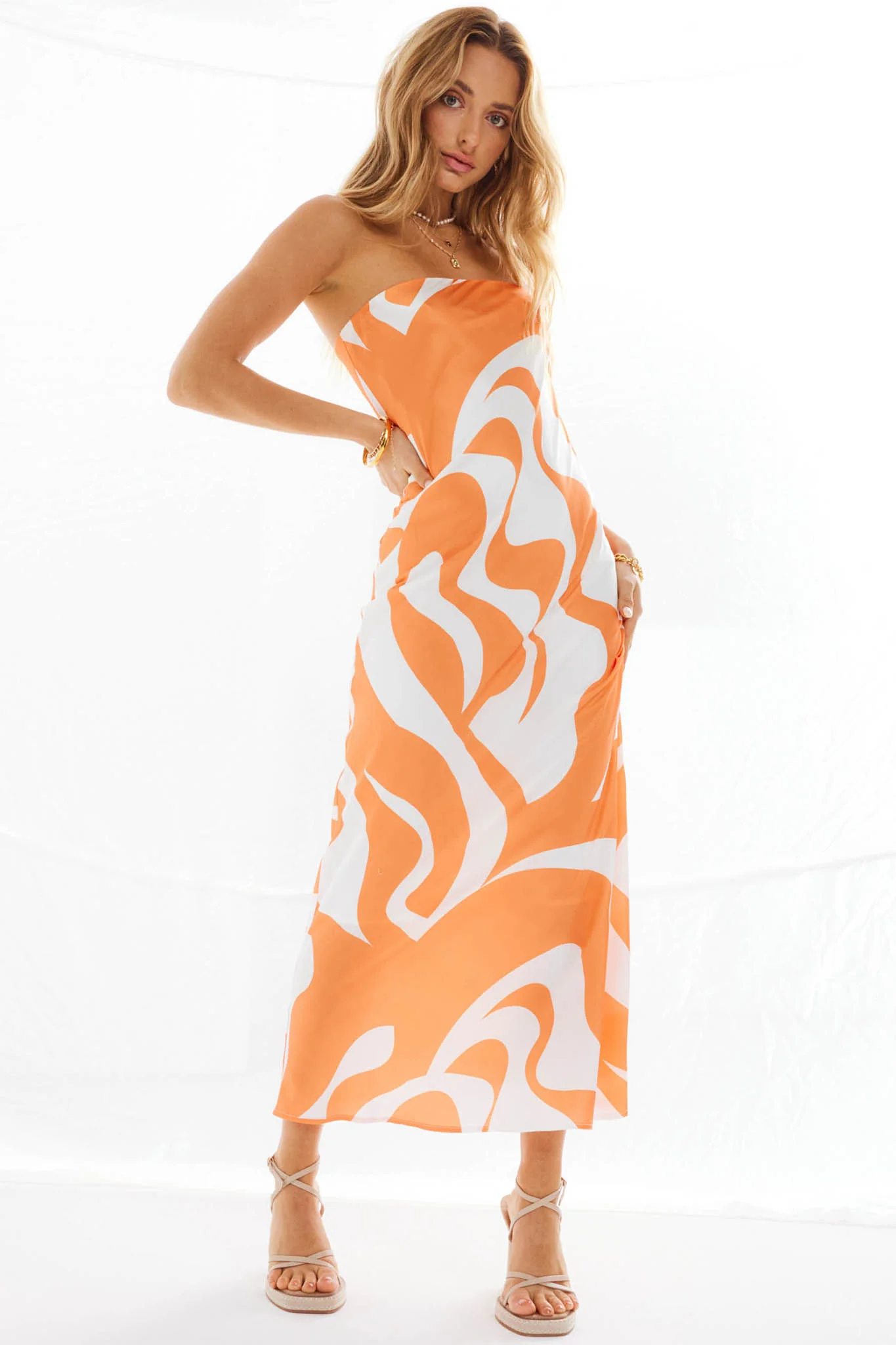 SNDYS Angel Midi Dress Swirl Orange