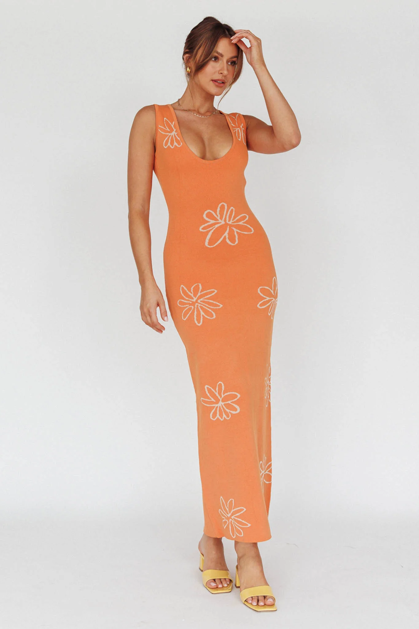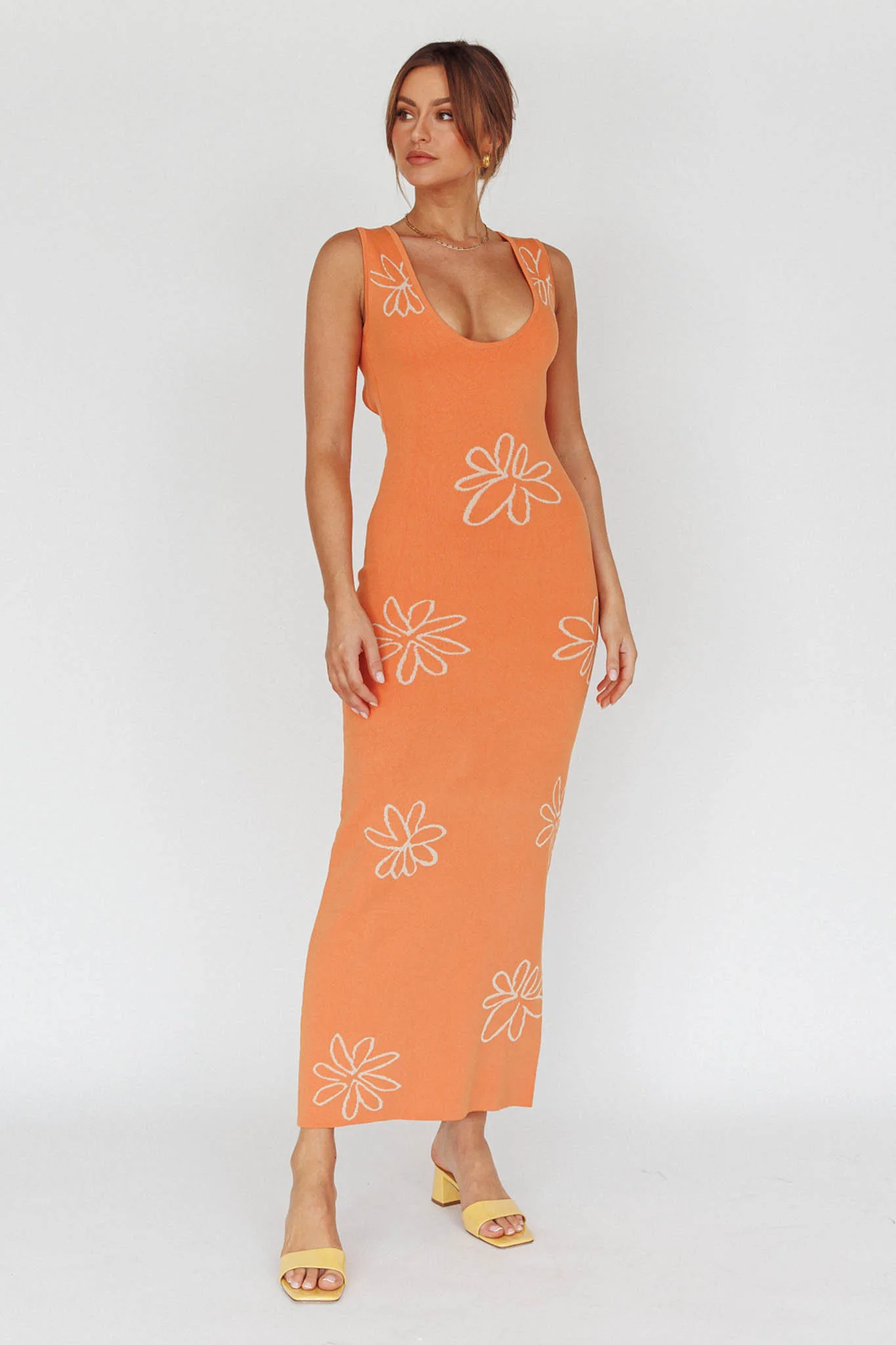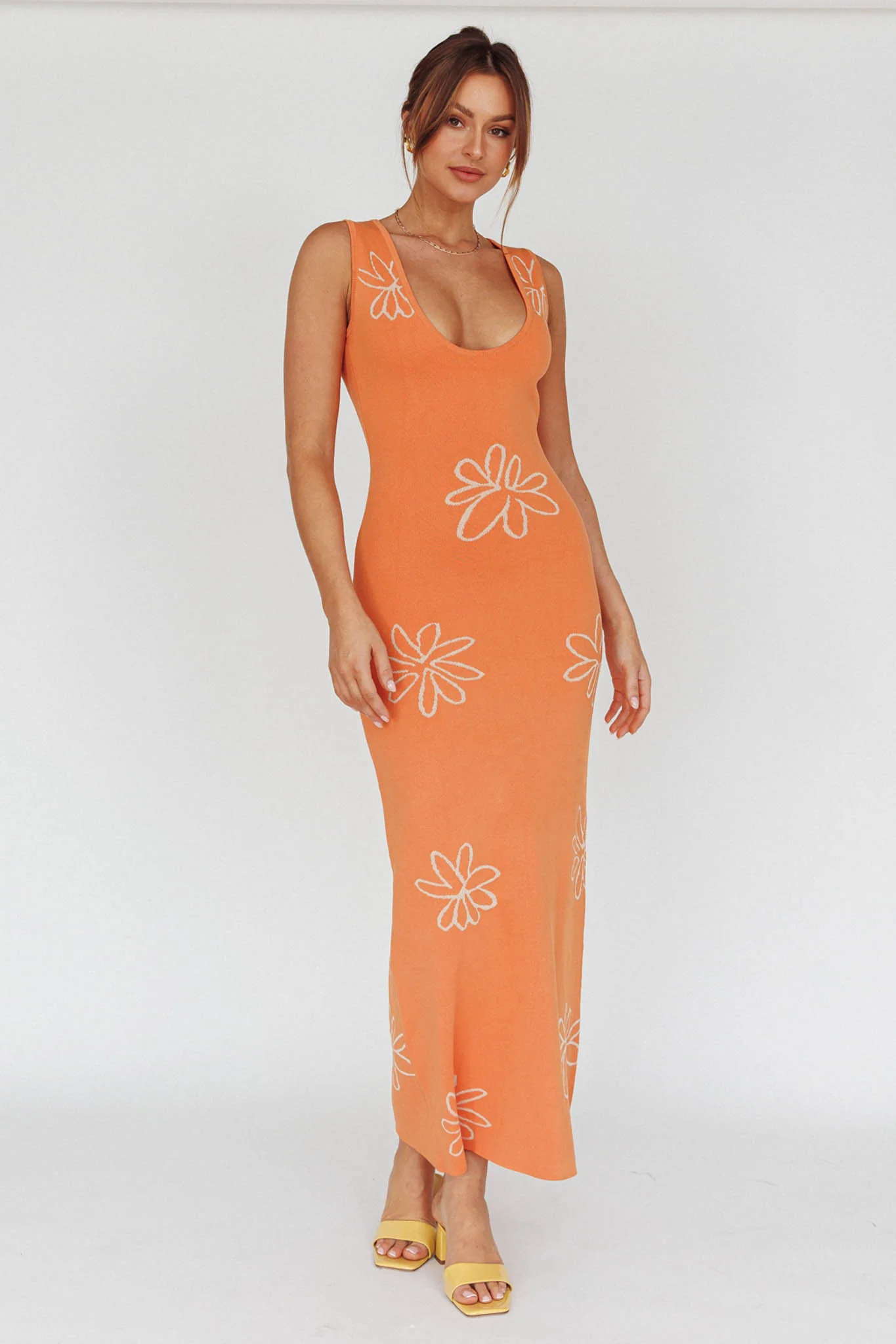 Sunland Knit Maxi Dress Flower Tangerine