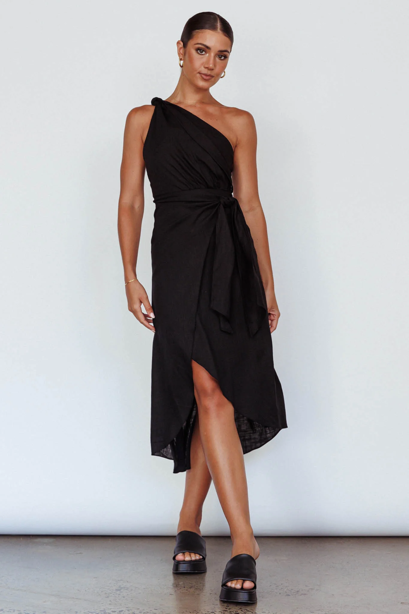 Island Time One-Shoulder Midi Dress Black