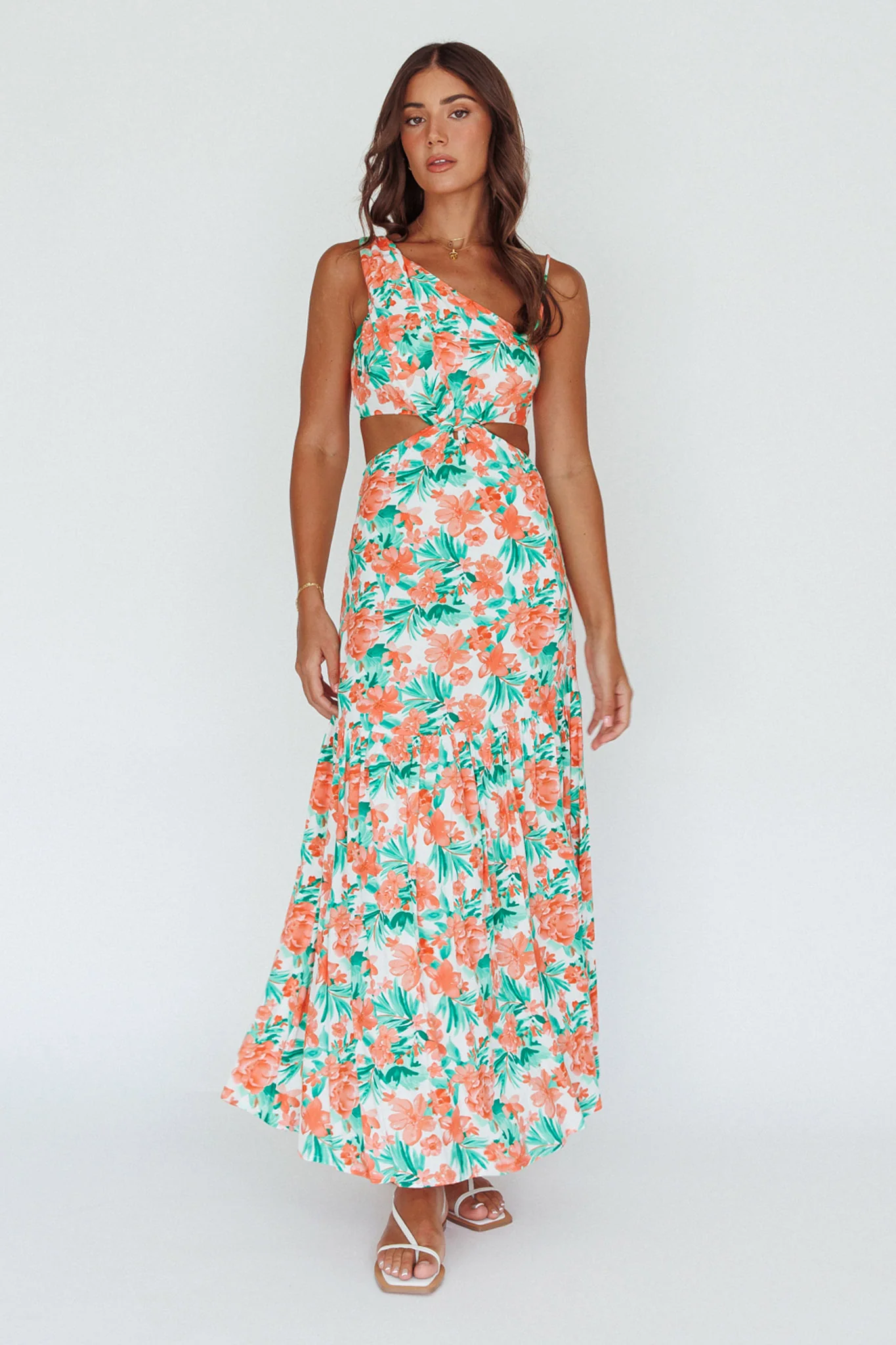 Evening Breeze Cut-Out Waist Maxi Dress Floral Orange