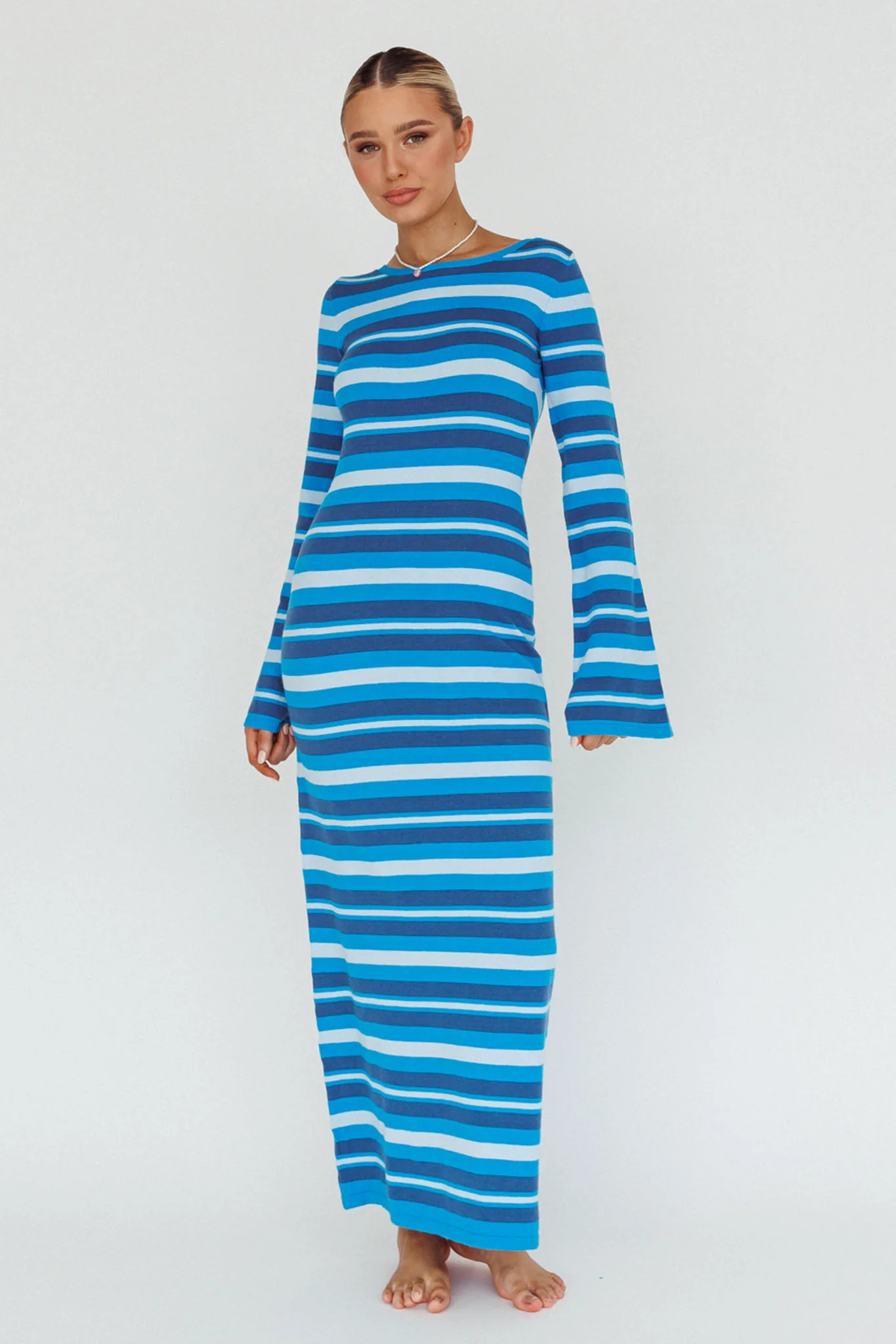 Jozie Long Sleeve Maxi Dress Stripe Blue