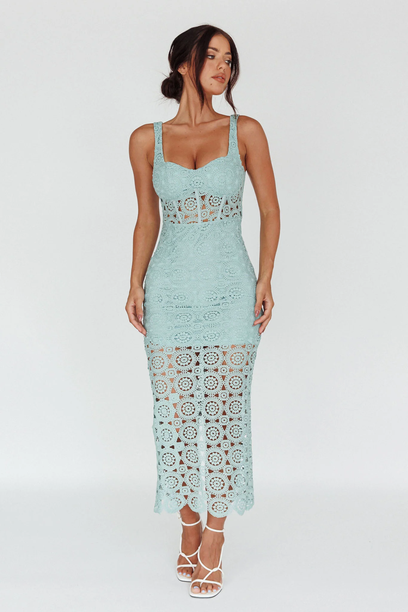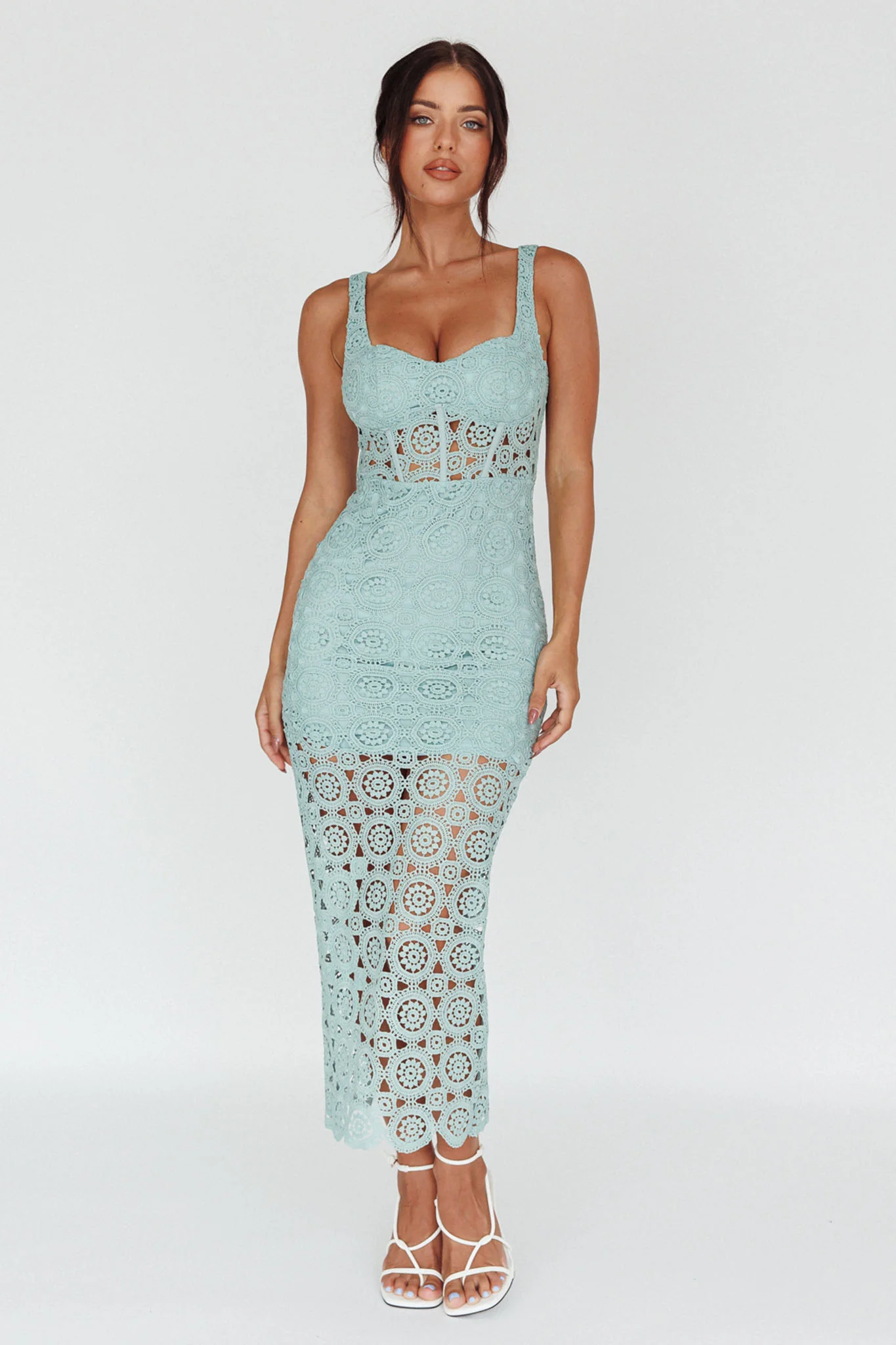 Milano Crochet Lace Midi Dress Sage
