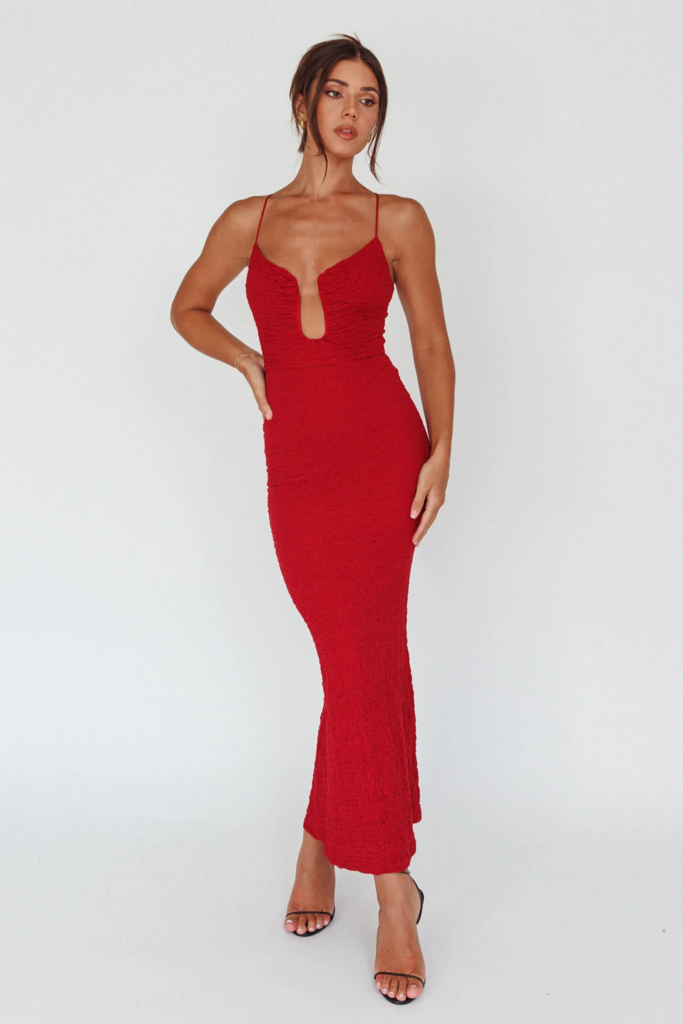 Nouveau U-Neckline Midi Dress Wine