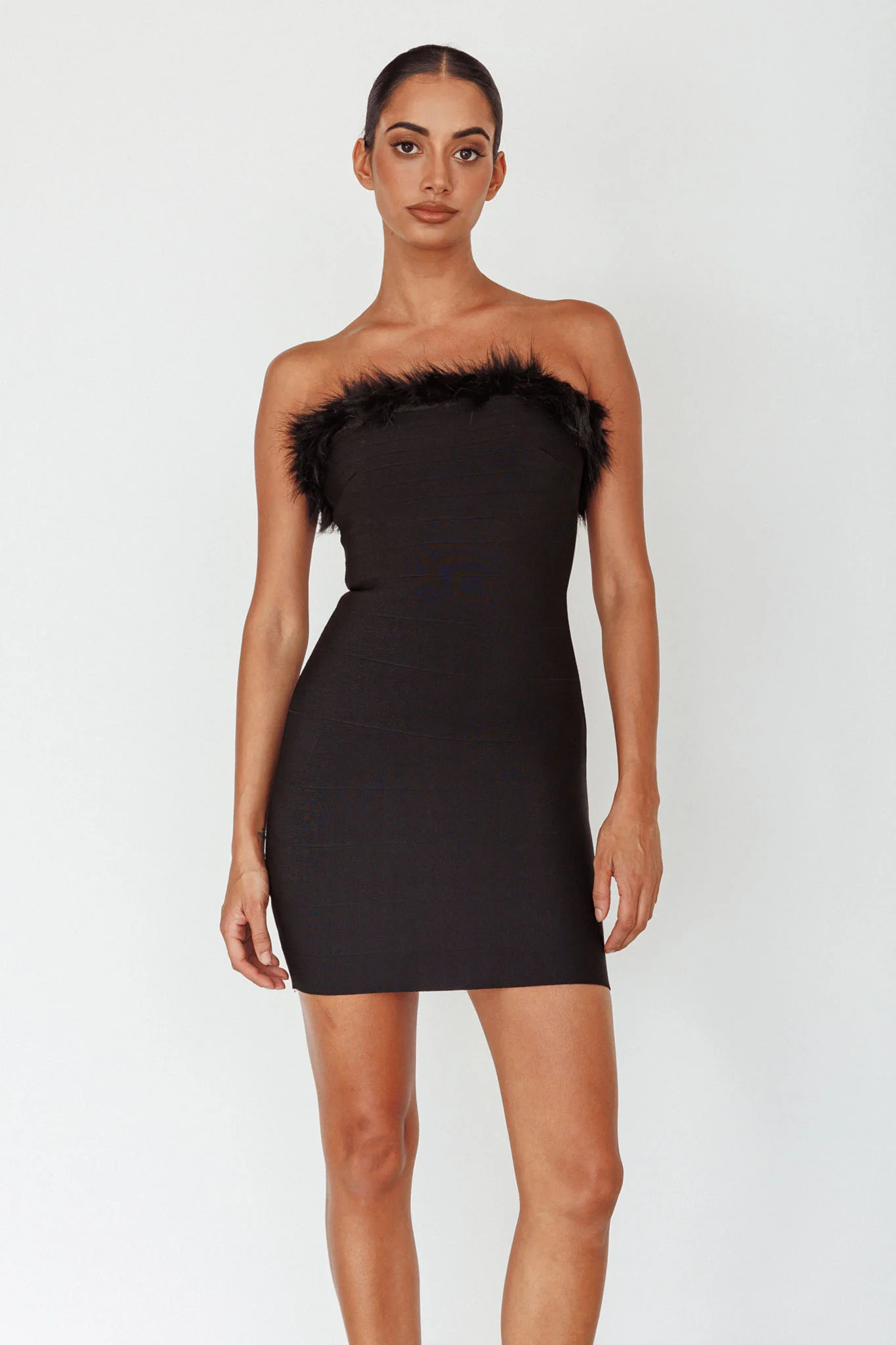 Cherri Fur Trim Mini Dress Electric Black