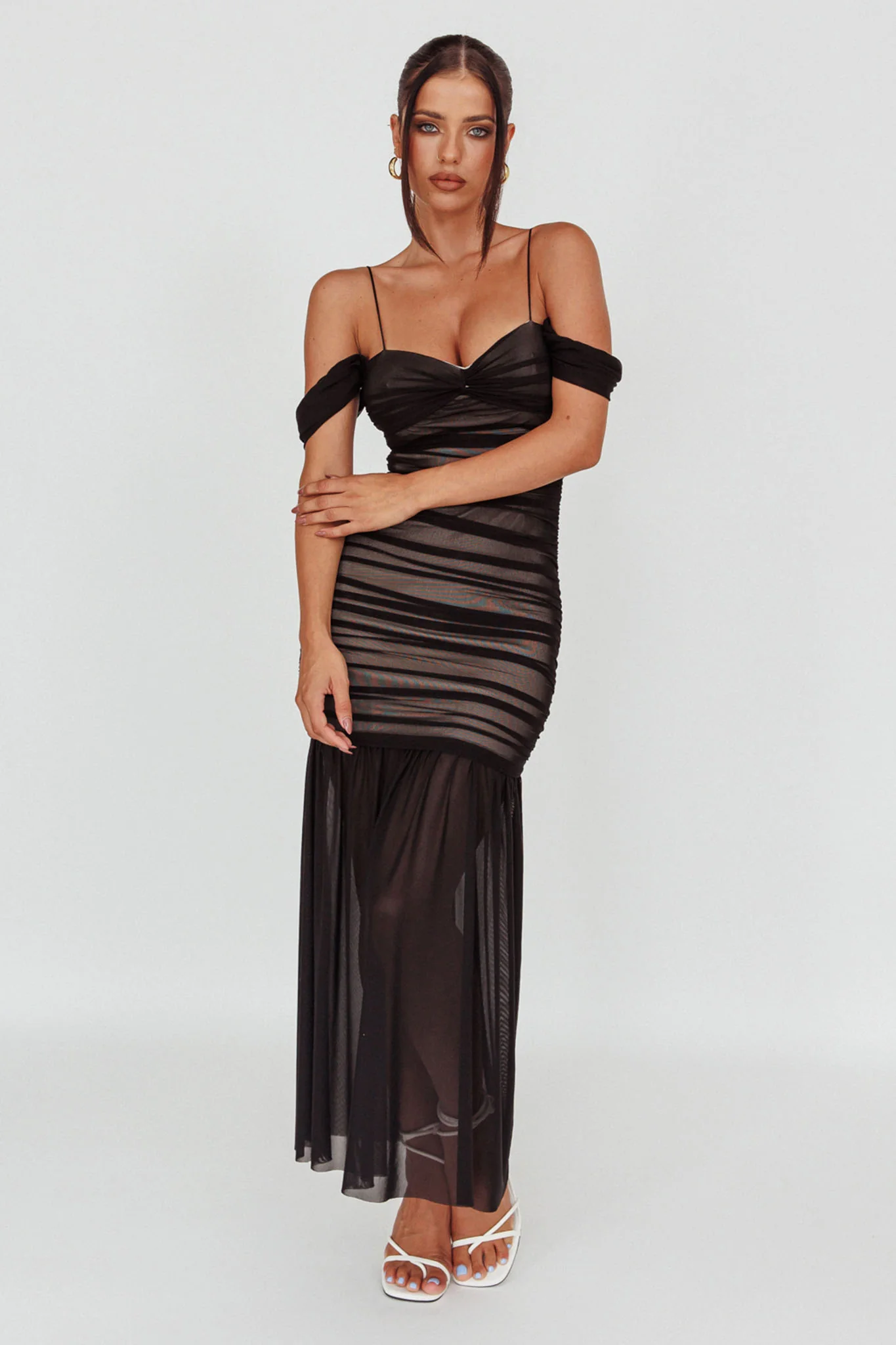 La Salle Ruched Mesh Maxi Dress Black
