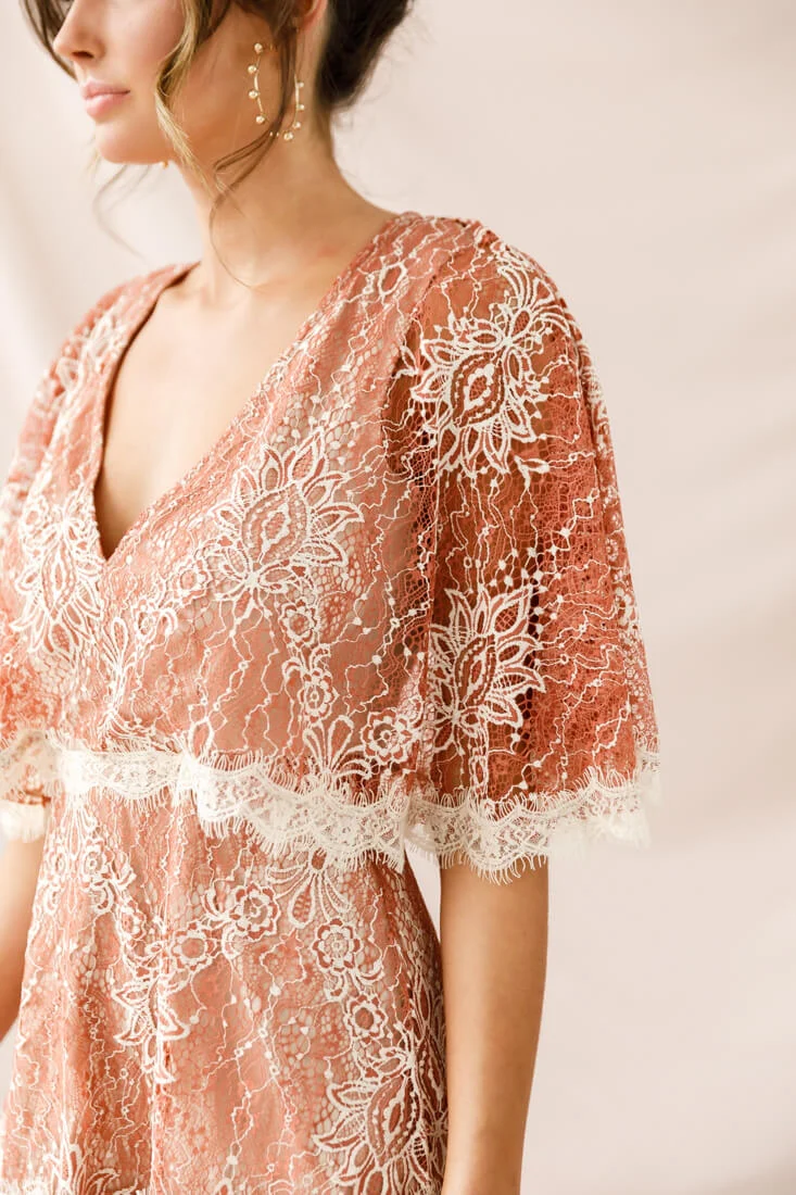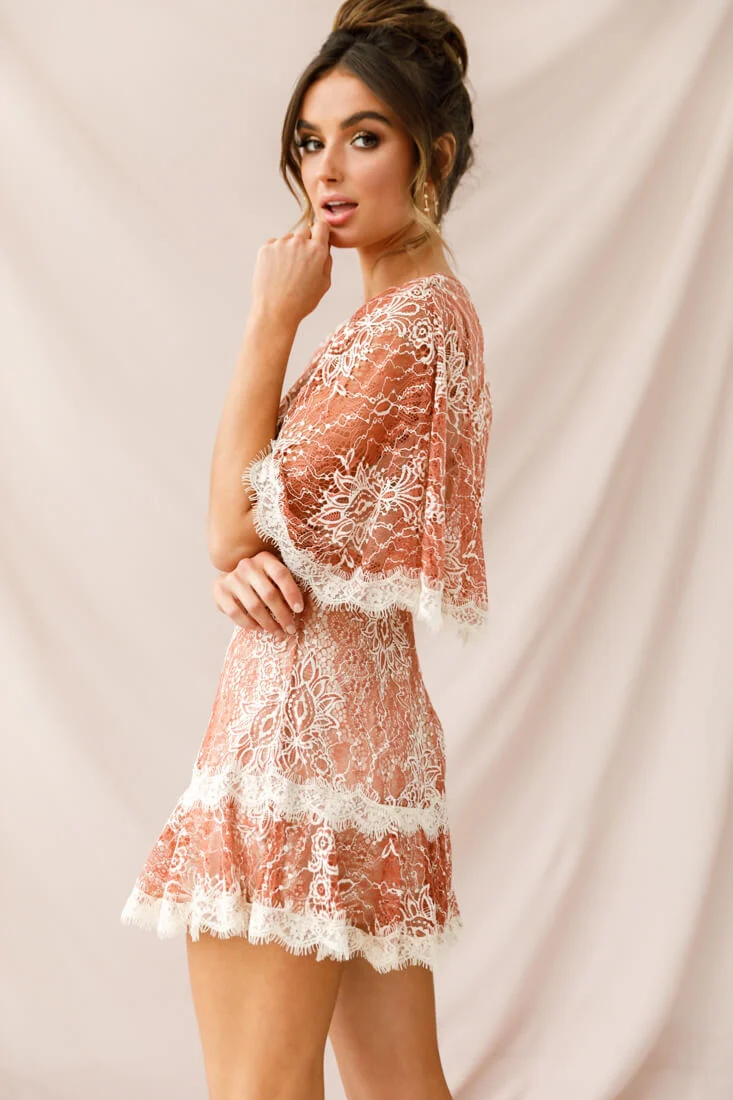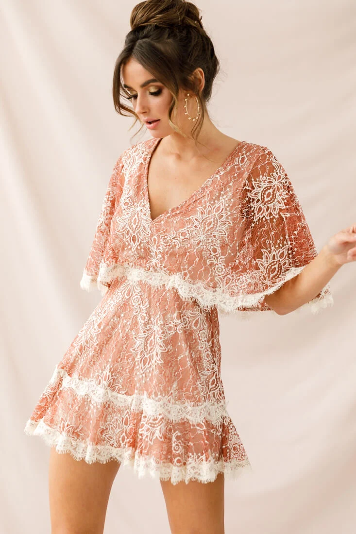 Caspar Batwing Lace Dress Rose/Beige