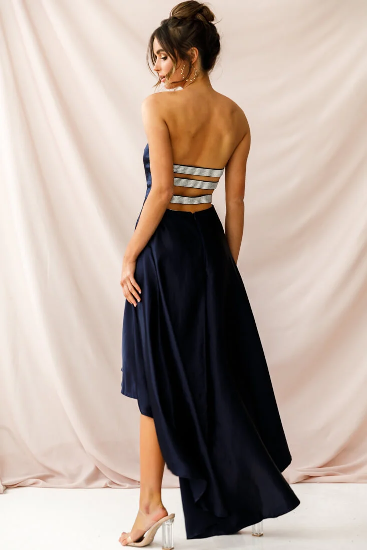 Belle Strapless High-Low Hem Dress Navy