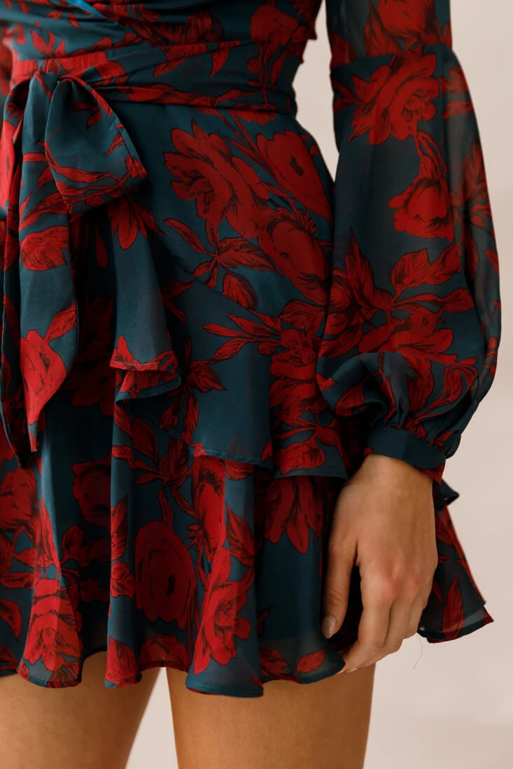 Kerry Layered Balloon Sleeve Dress Forest Green/Red