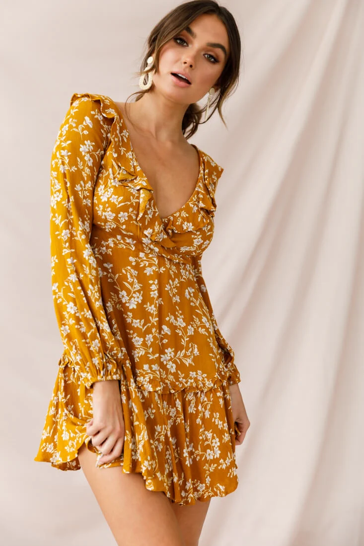 Brentwood Lace Up Babydoll Dress Mustard