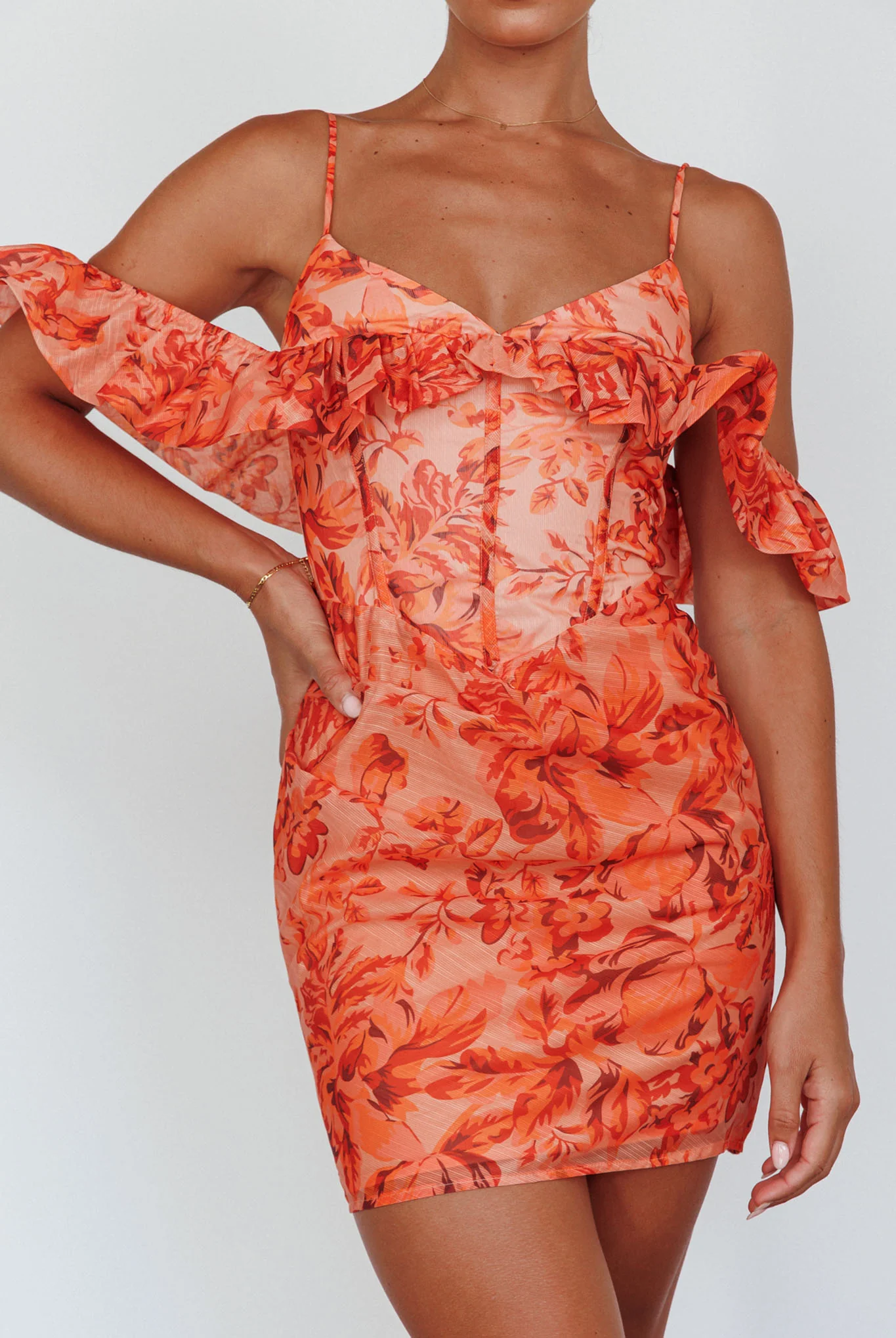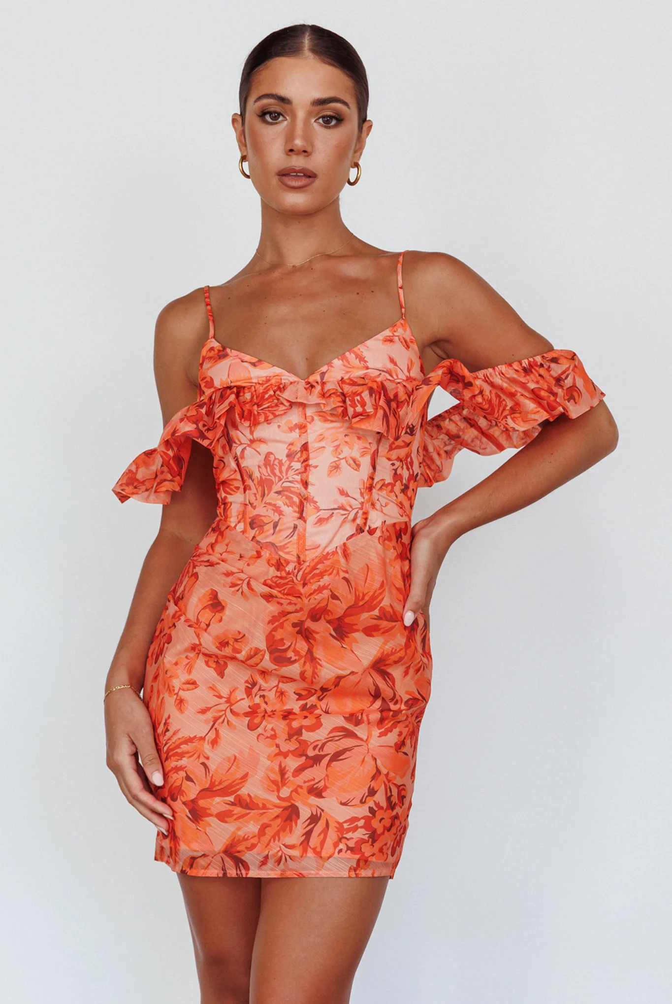 Catania Off-Shoulder Ruffle Mini Dress Floral Orange