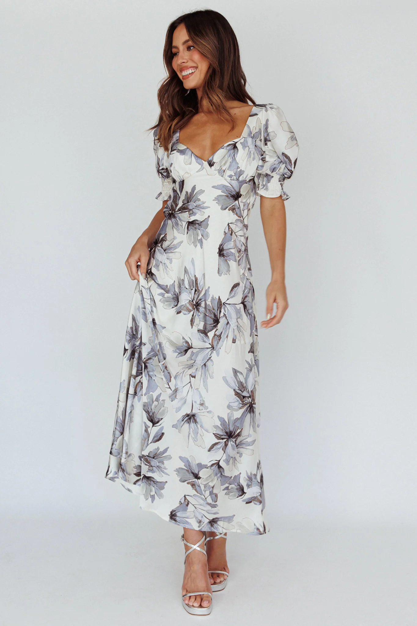 Brigita Tied Back Maxi Dress Floral Blue