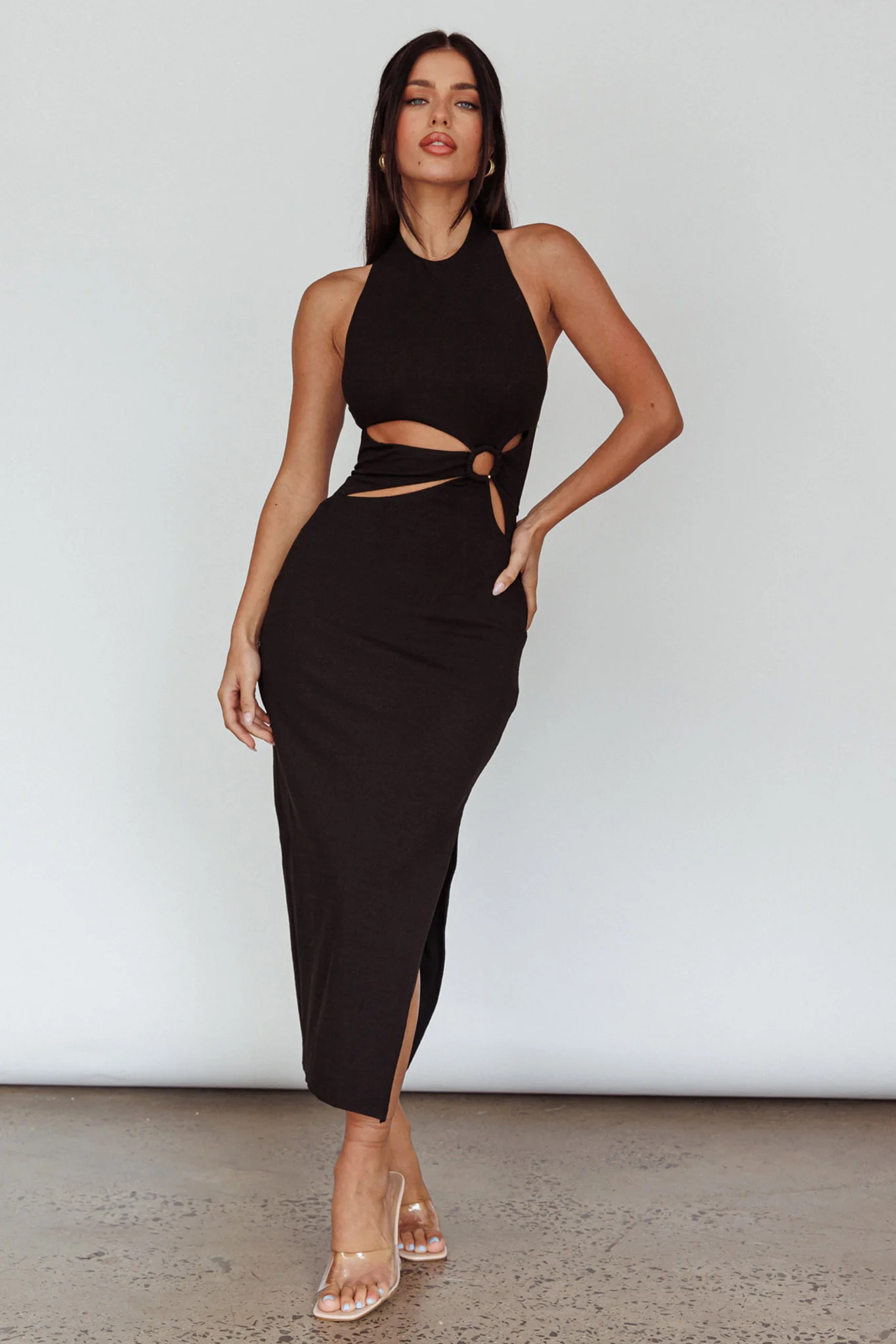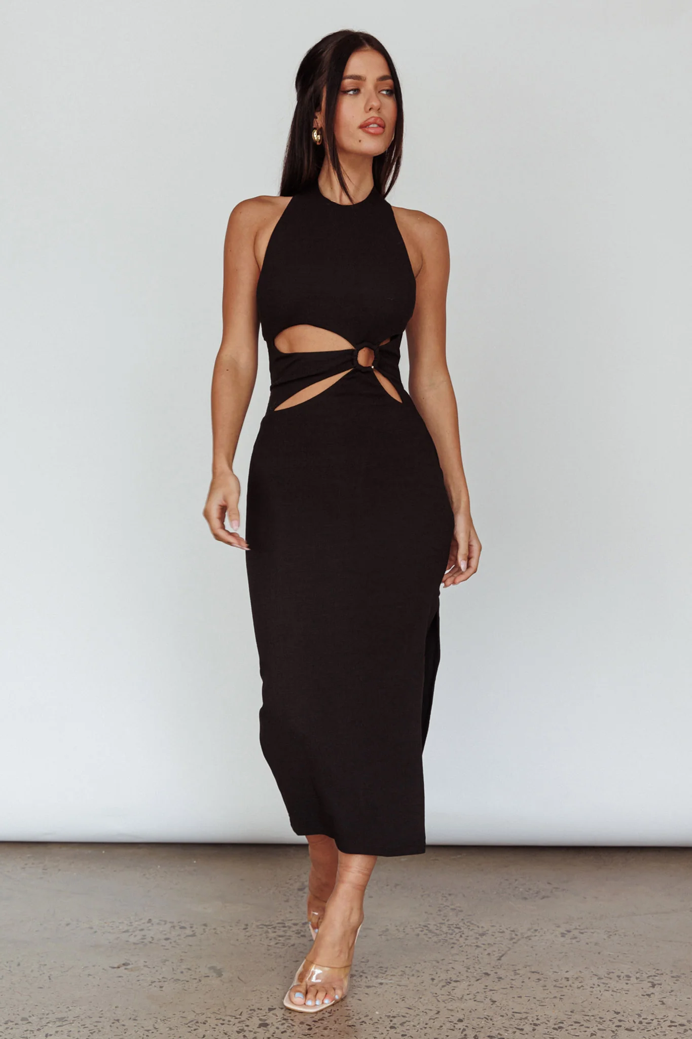 Crystal Skies Cut-Out Feature Midi Dress Black