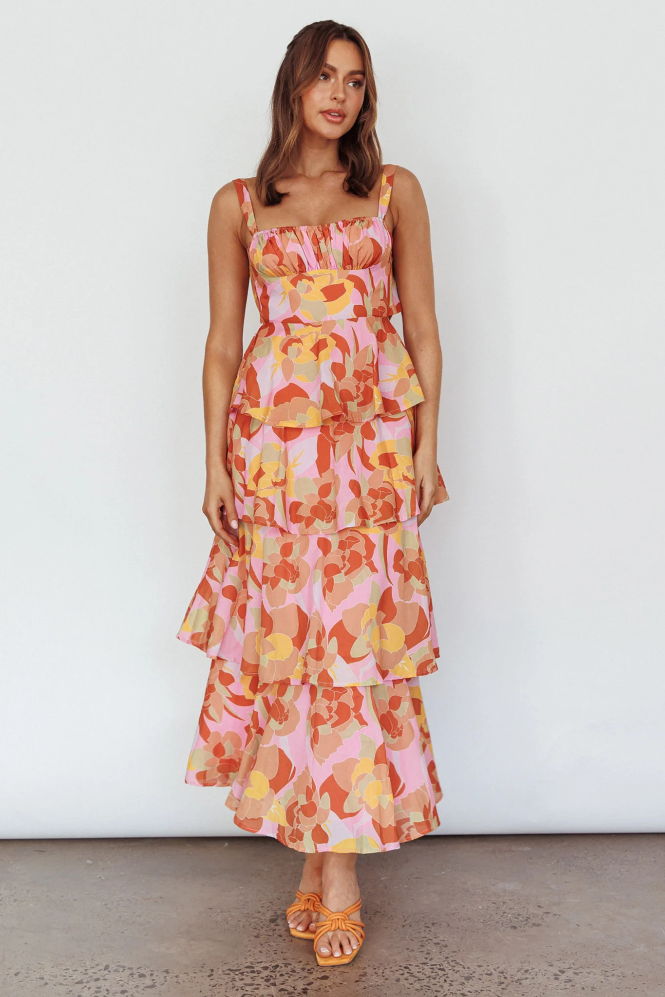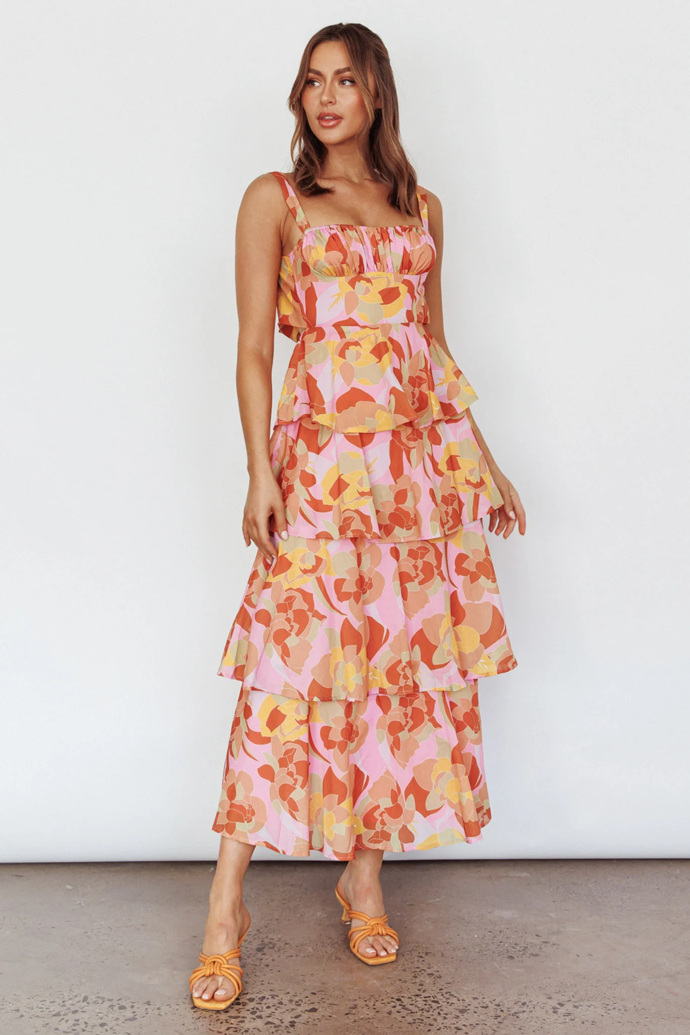 Provence Bloom Tiered Midi Dress Abstract Pink Multi