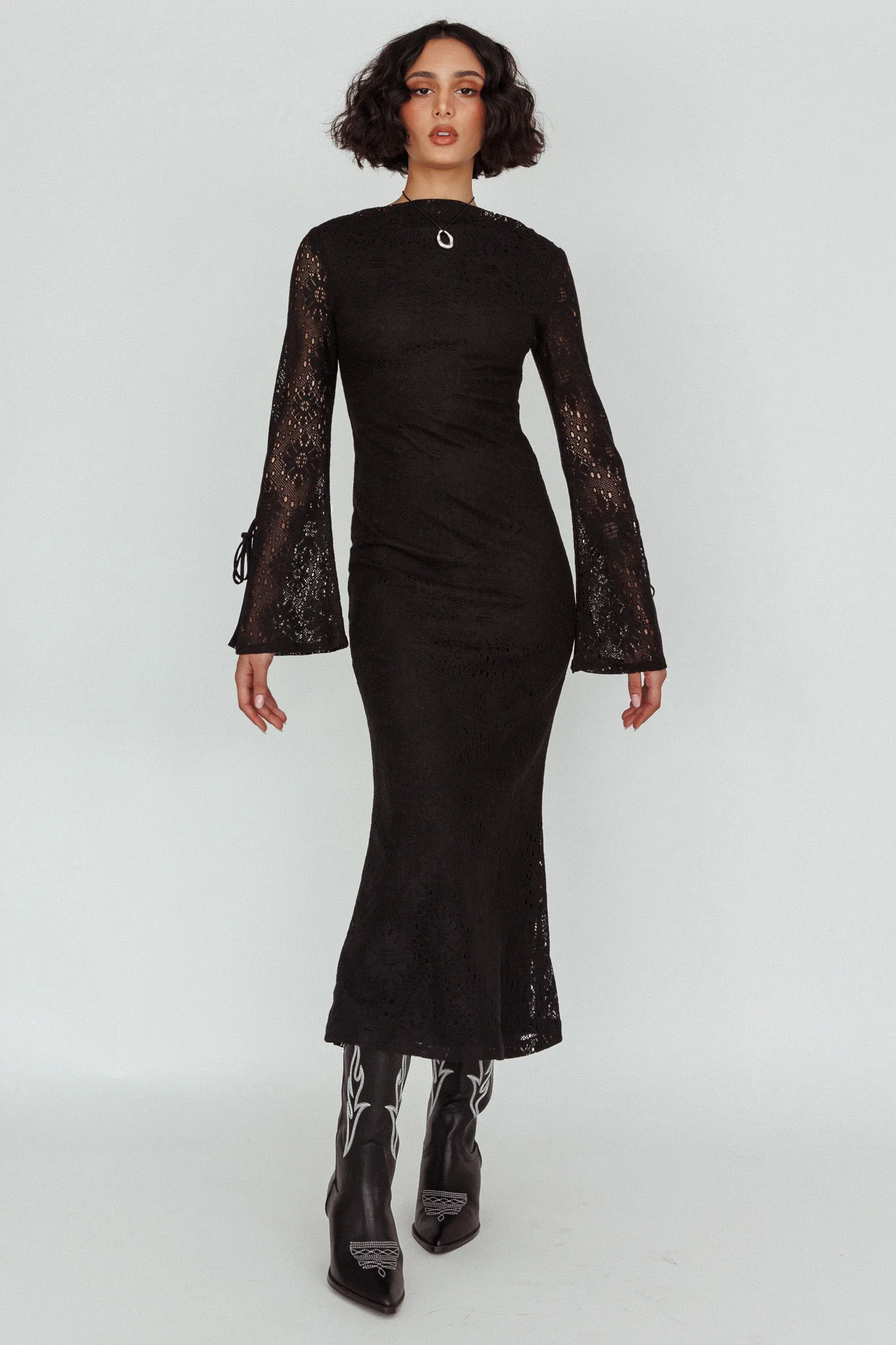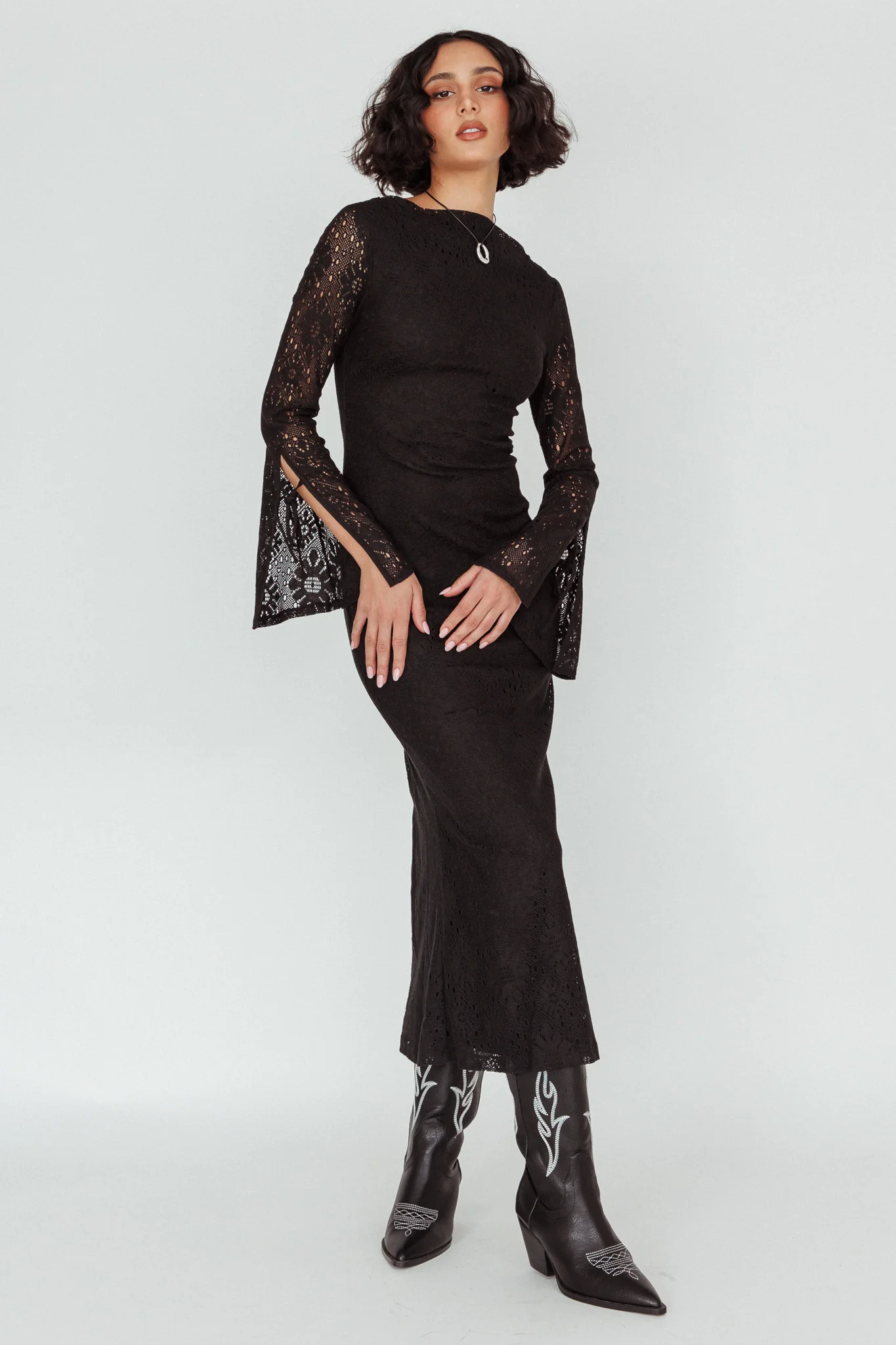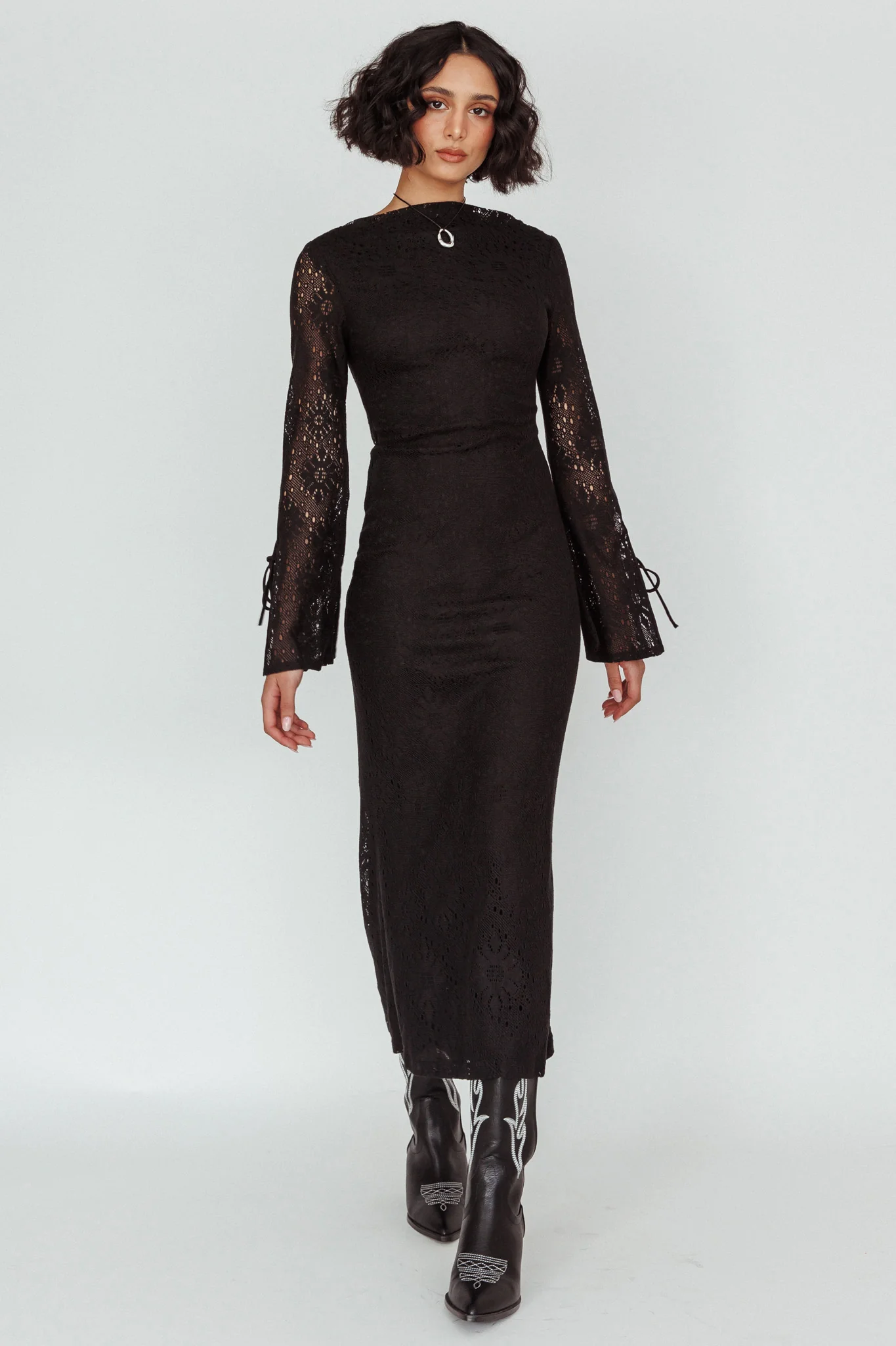 Kalia Long Sleeve Lace Midi Dress Black