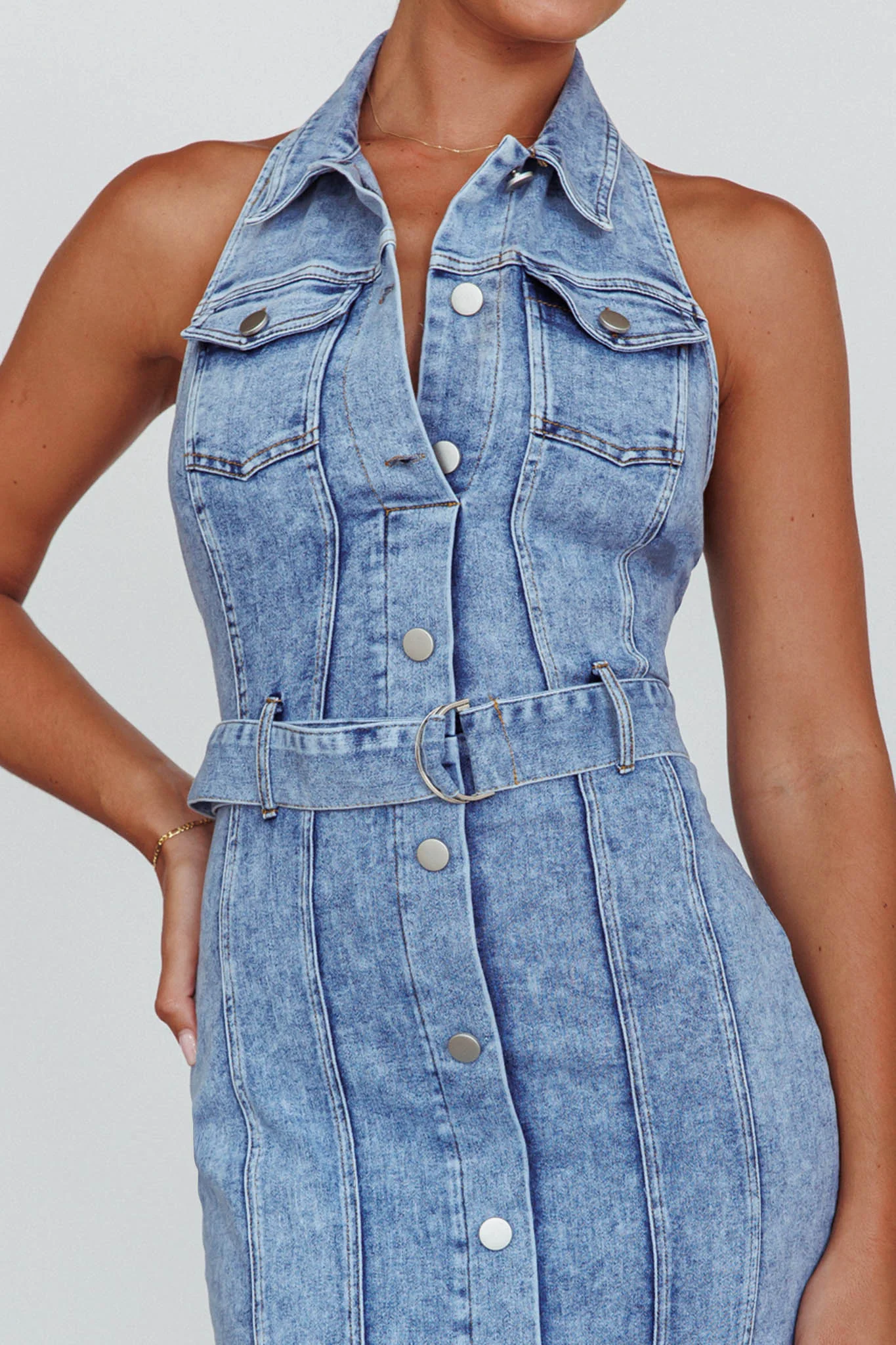 Good To Go Halterneck Midi Dress Denim
