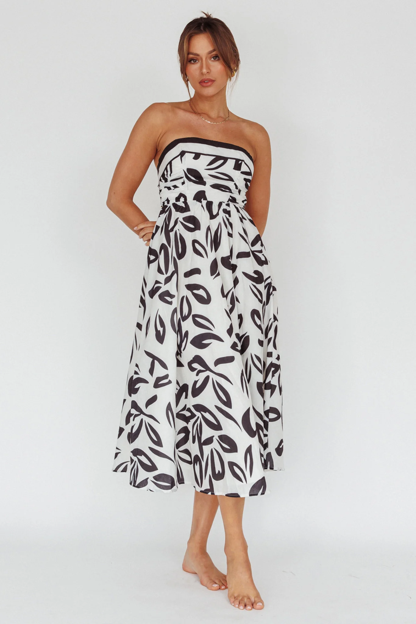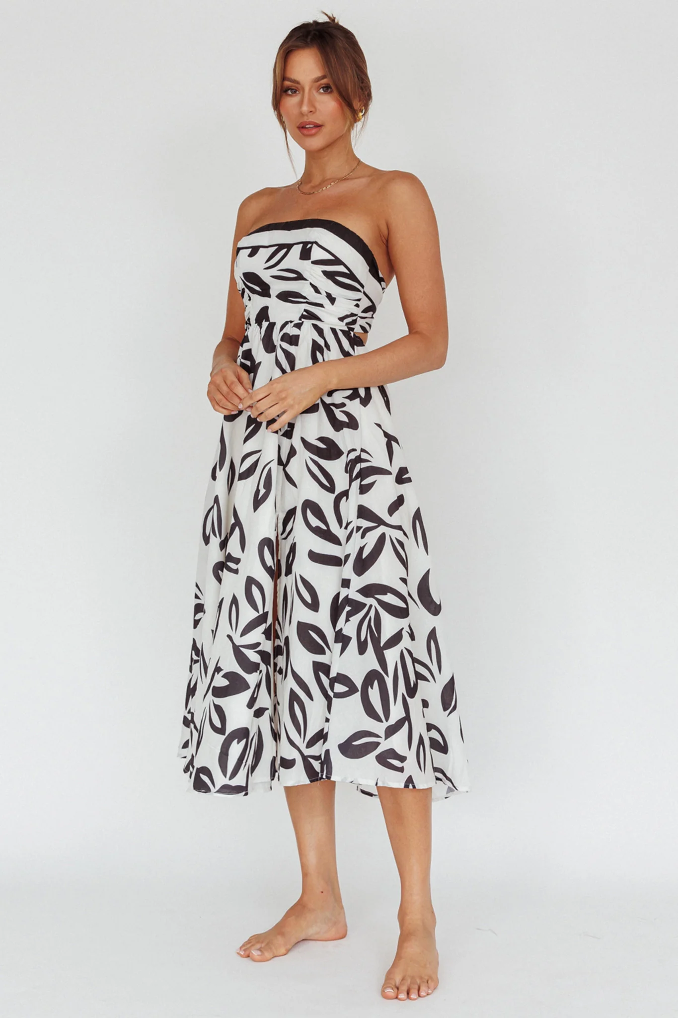 Randi Tie-Back Maxi Dress Leaf Print Beige
