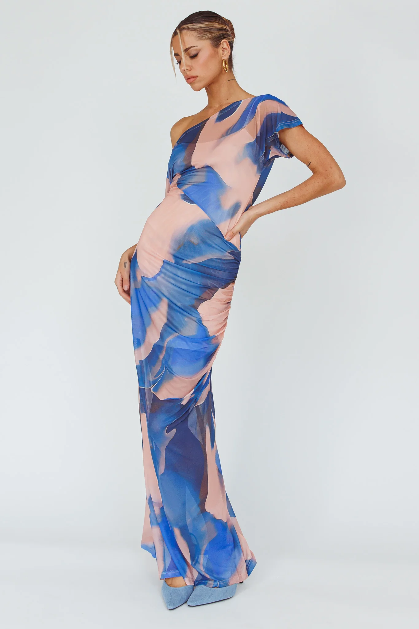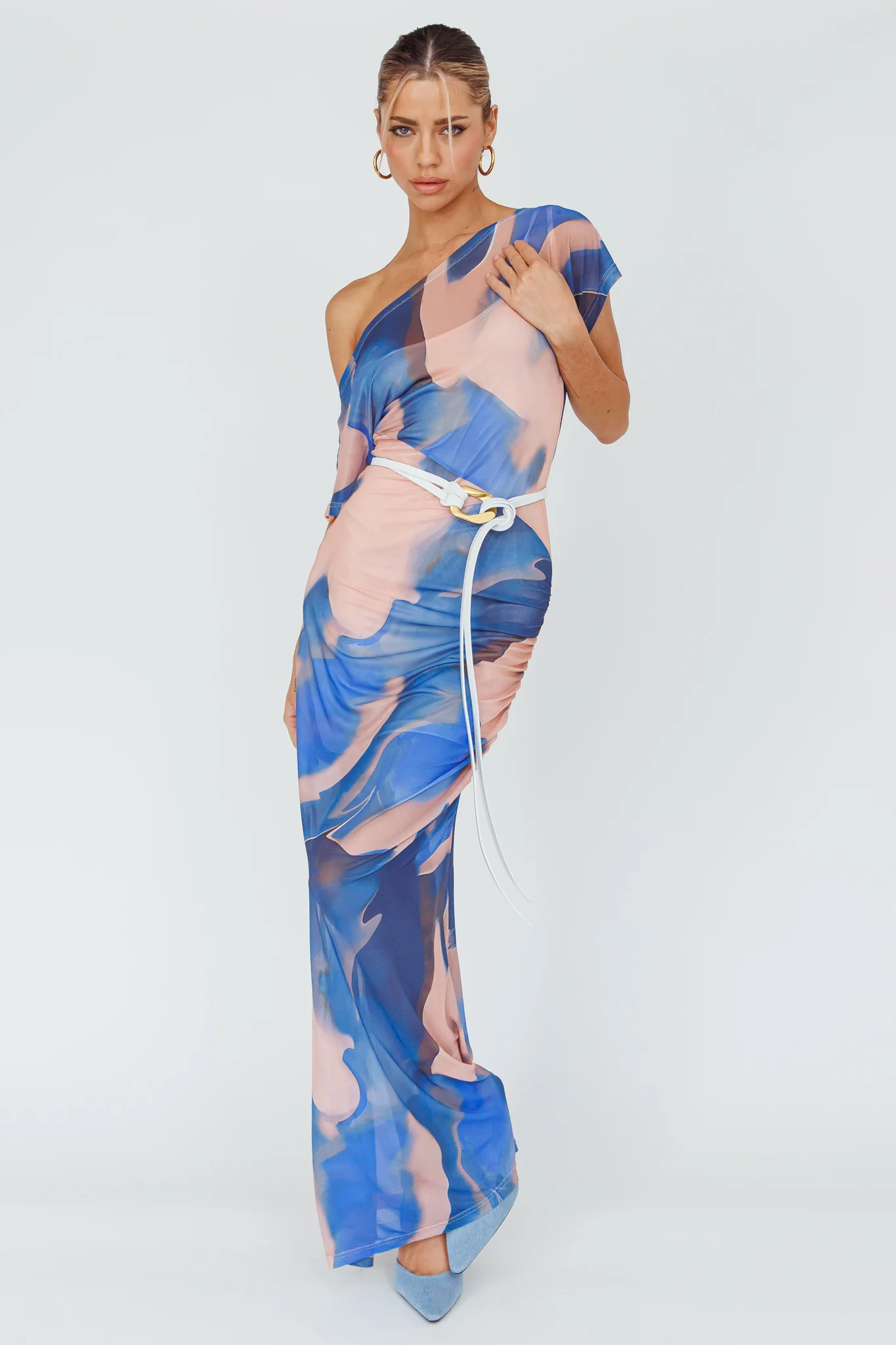 Annalora One-Shoulder Long Sleeve Midi Dress Blue