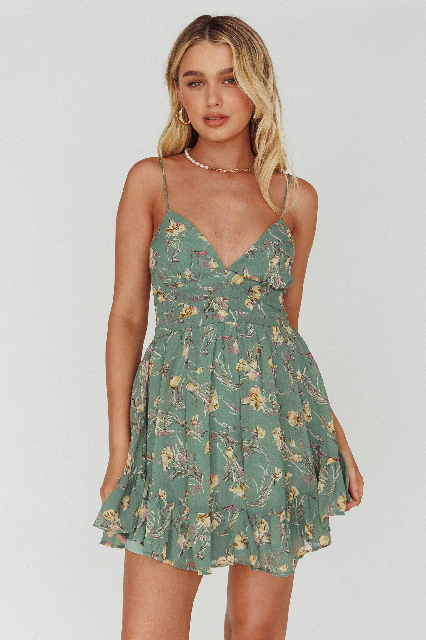 Got Love Frill Hem Mini Dress Floral Sage