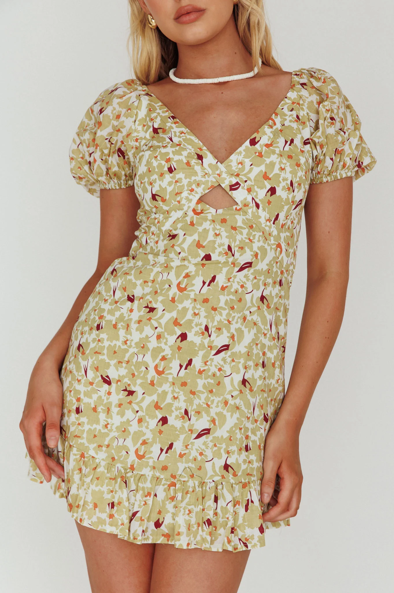 Connie Puff Sleeve Mini Dress Floral Olive