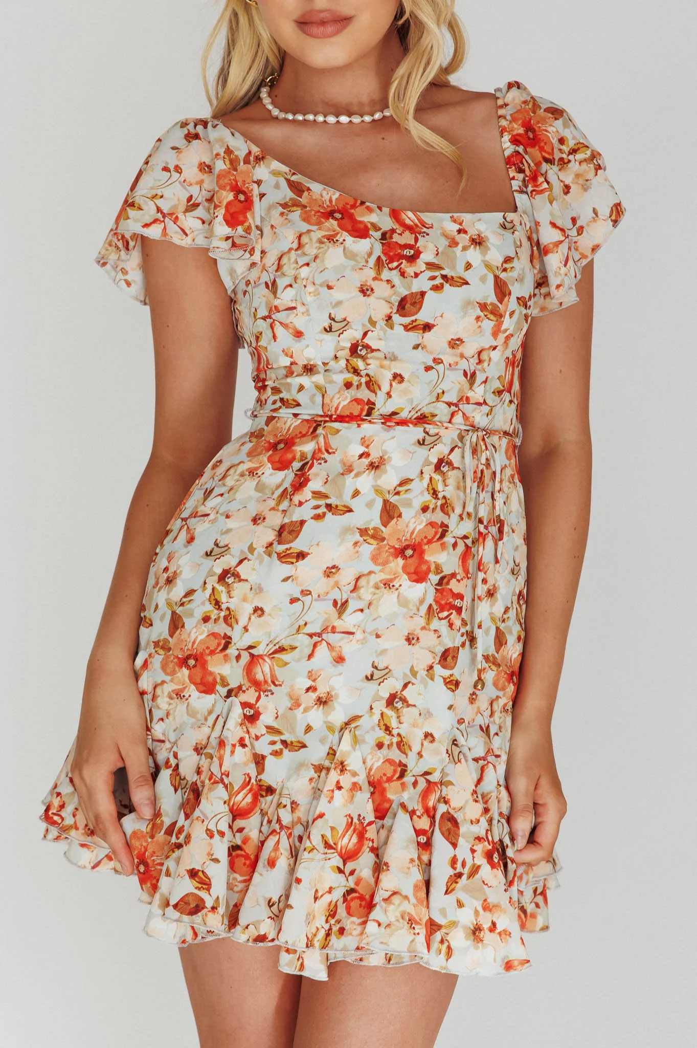 Jadyn Tied Shoulder Mini Dress Floral Cream