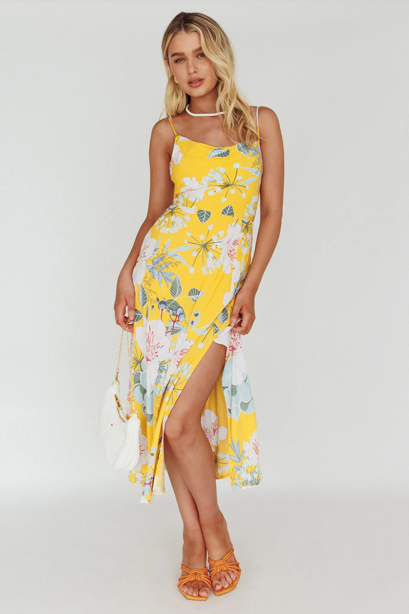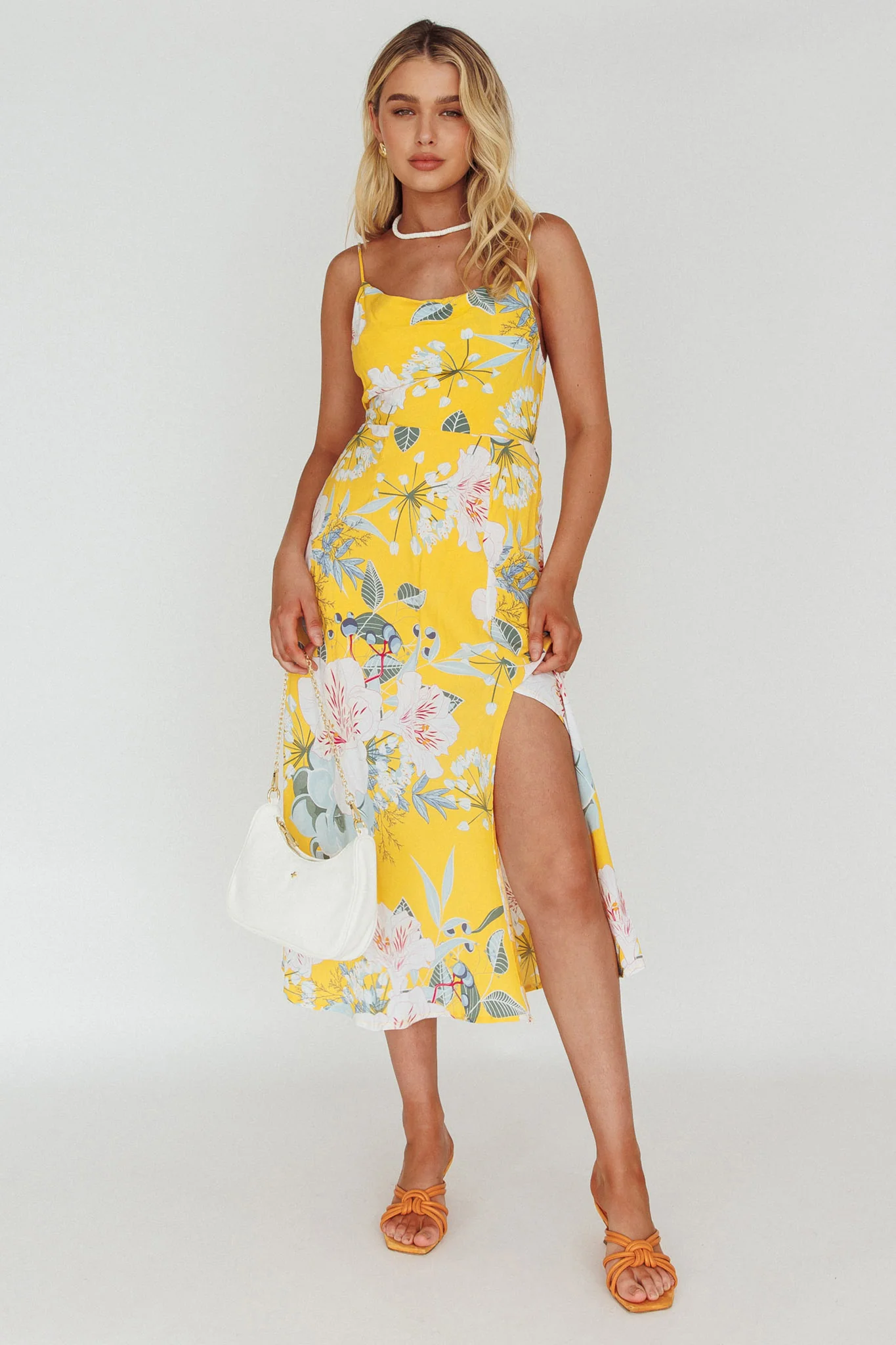 Suki Front Split Midi Dress Lily Mustard