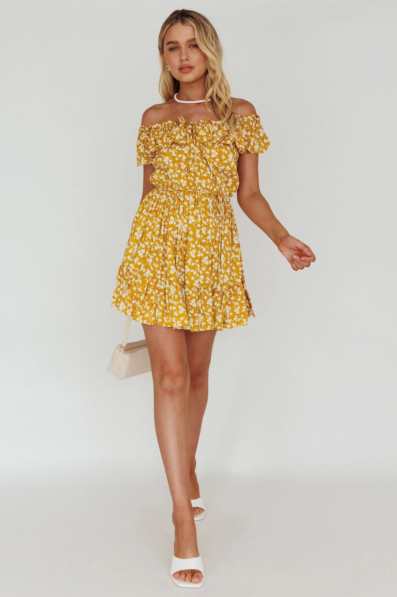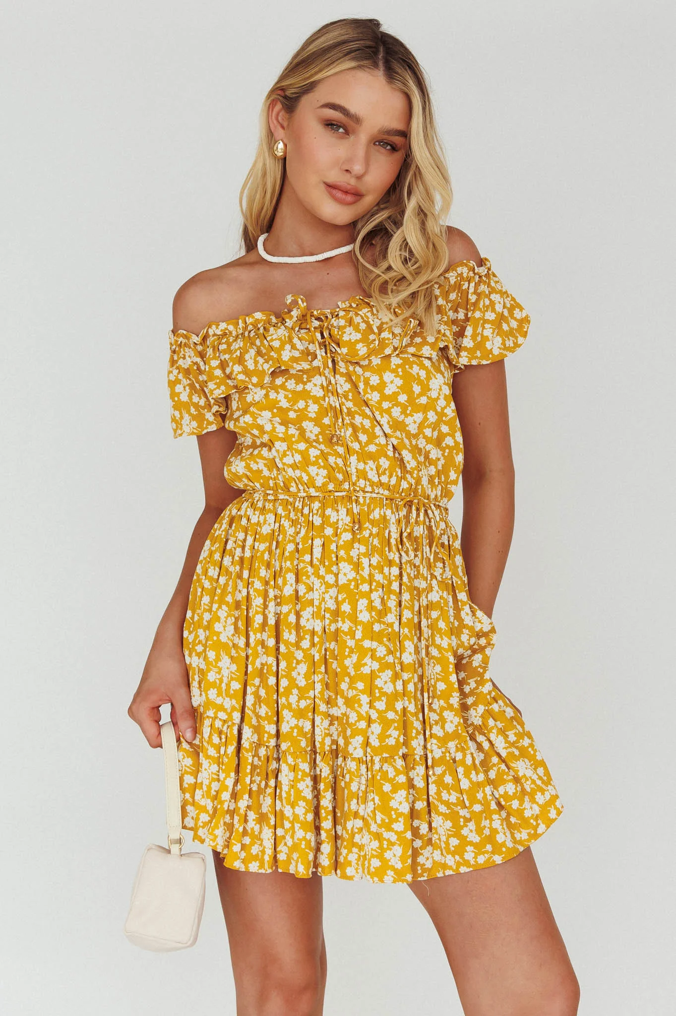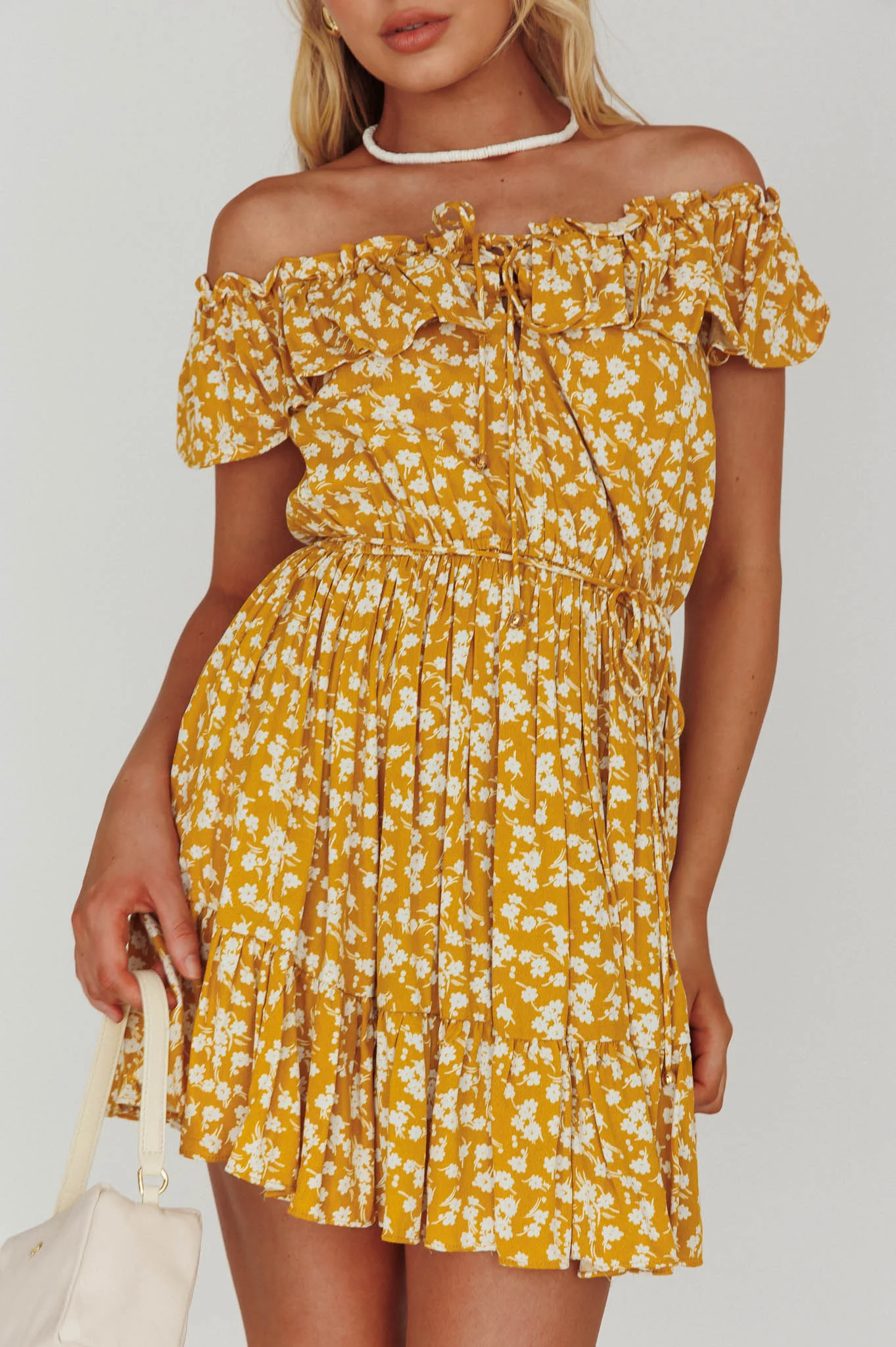Andie Off-Shoulder Frill Dress Floral Yellow
