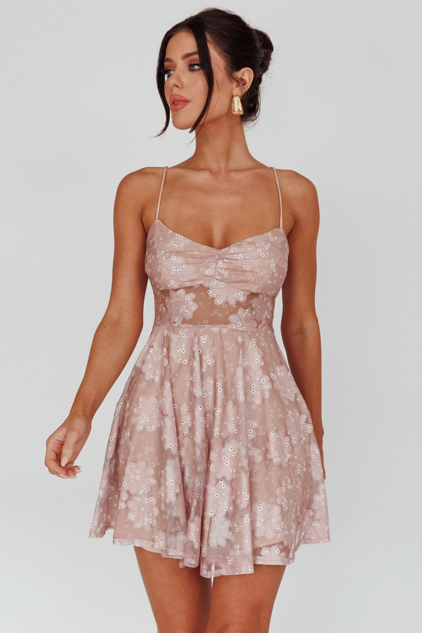 Orianthi Cut-Out Waist Mini Dress Floral Pink
