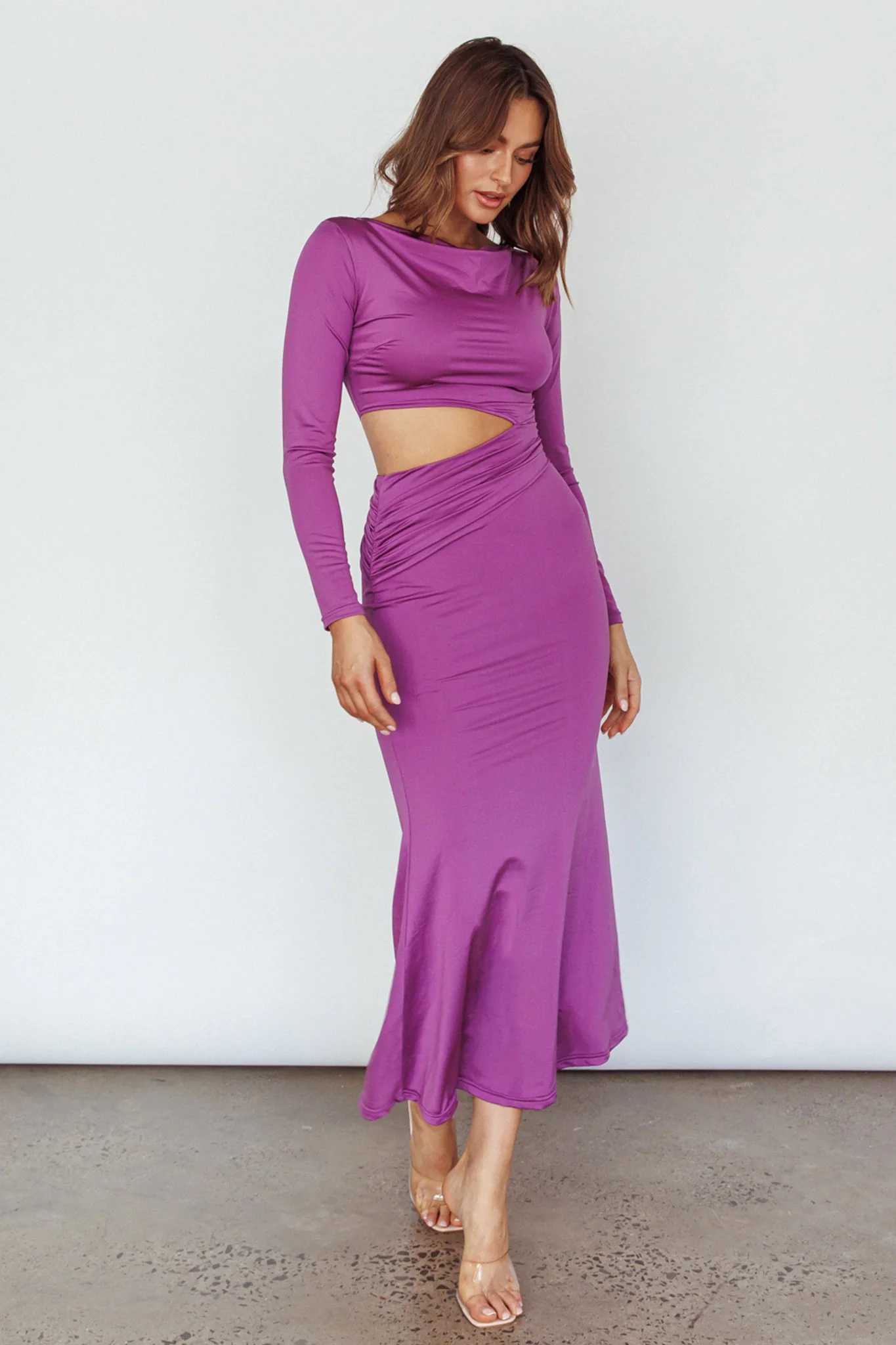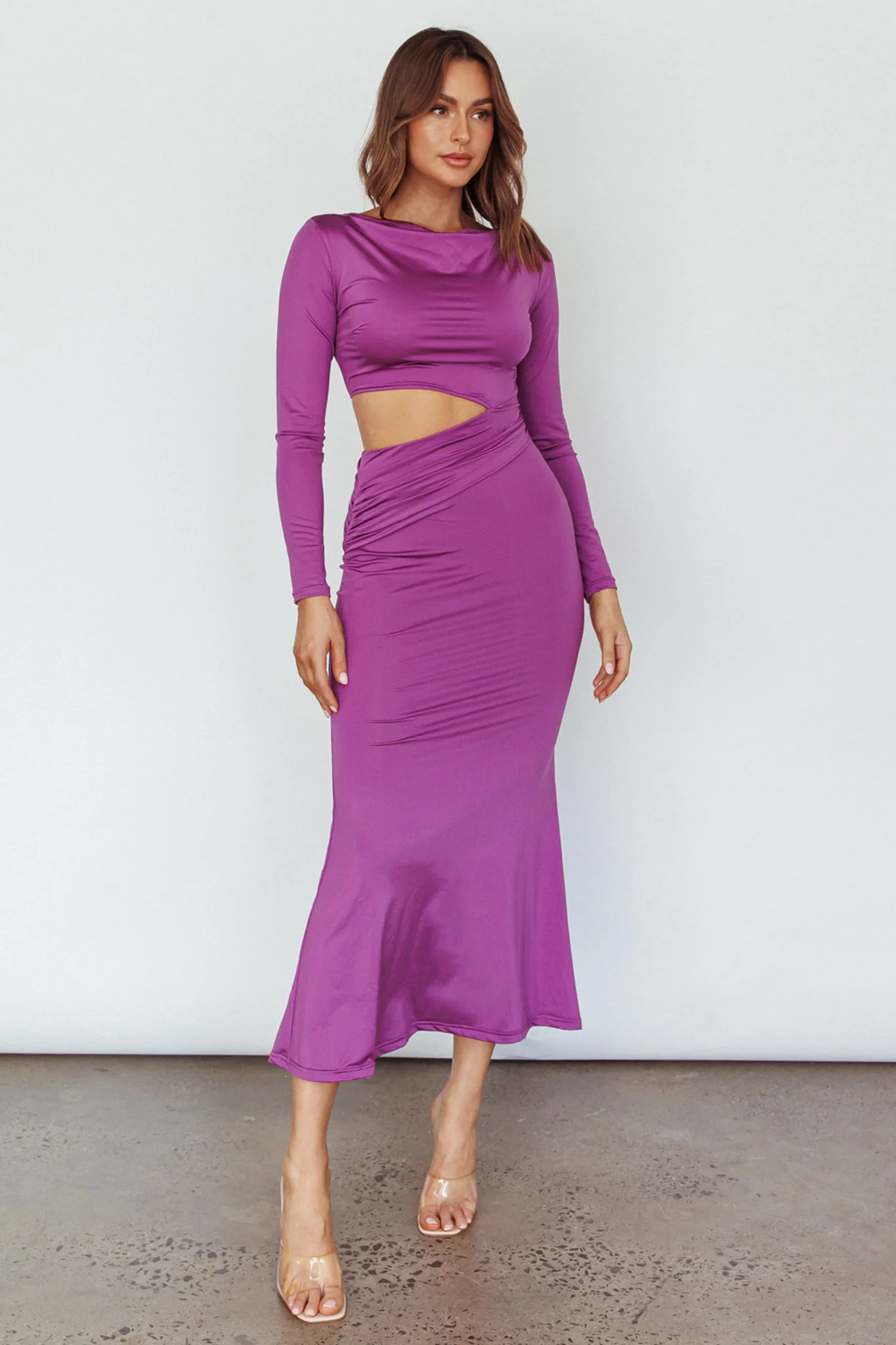Rajah Long Sleeve Cut-Out Midi Dress Purple