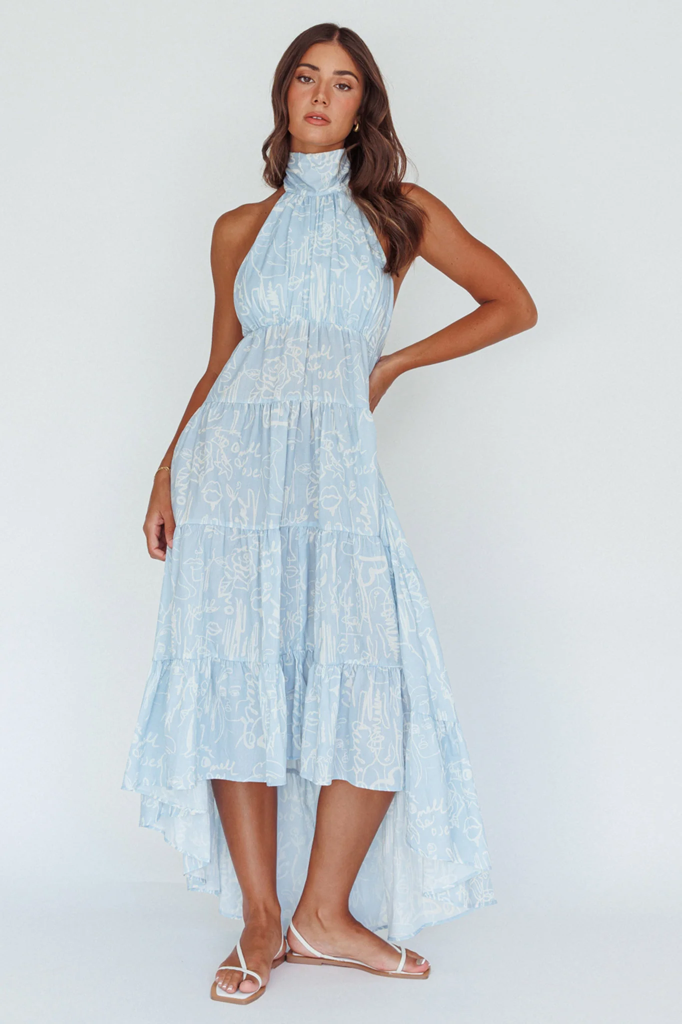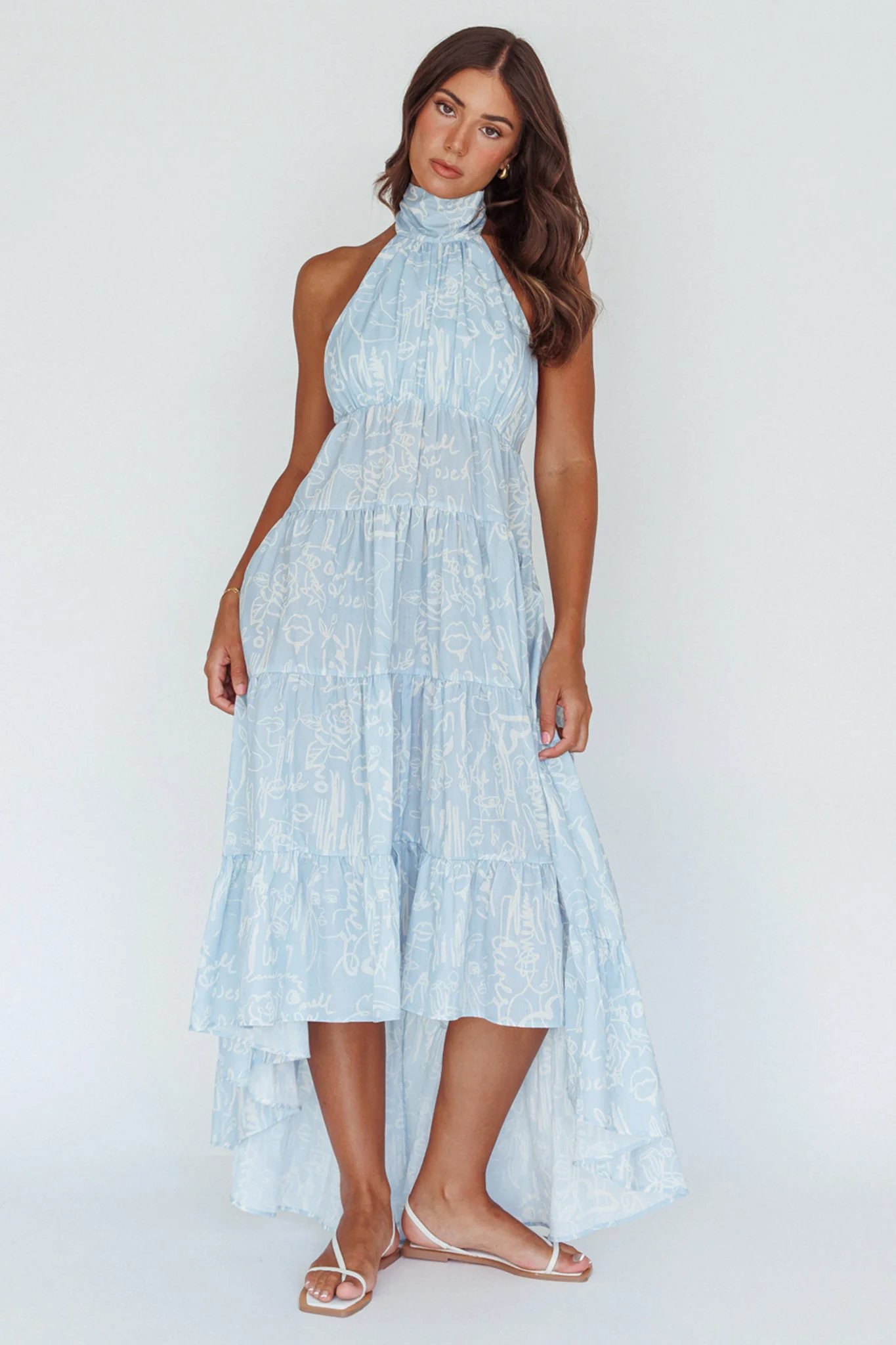South Haven Halter Midi Dress Floral Blue