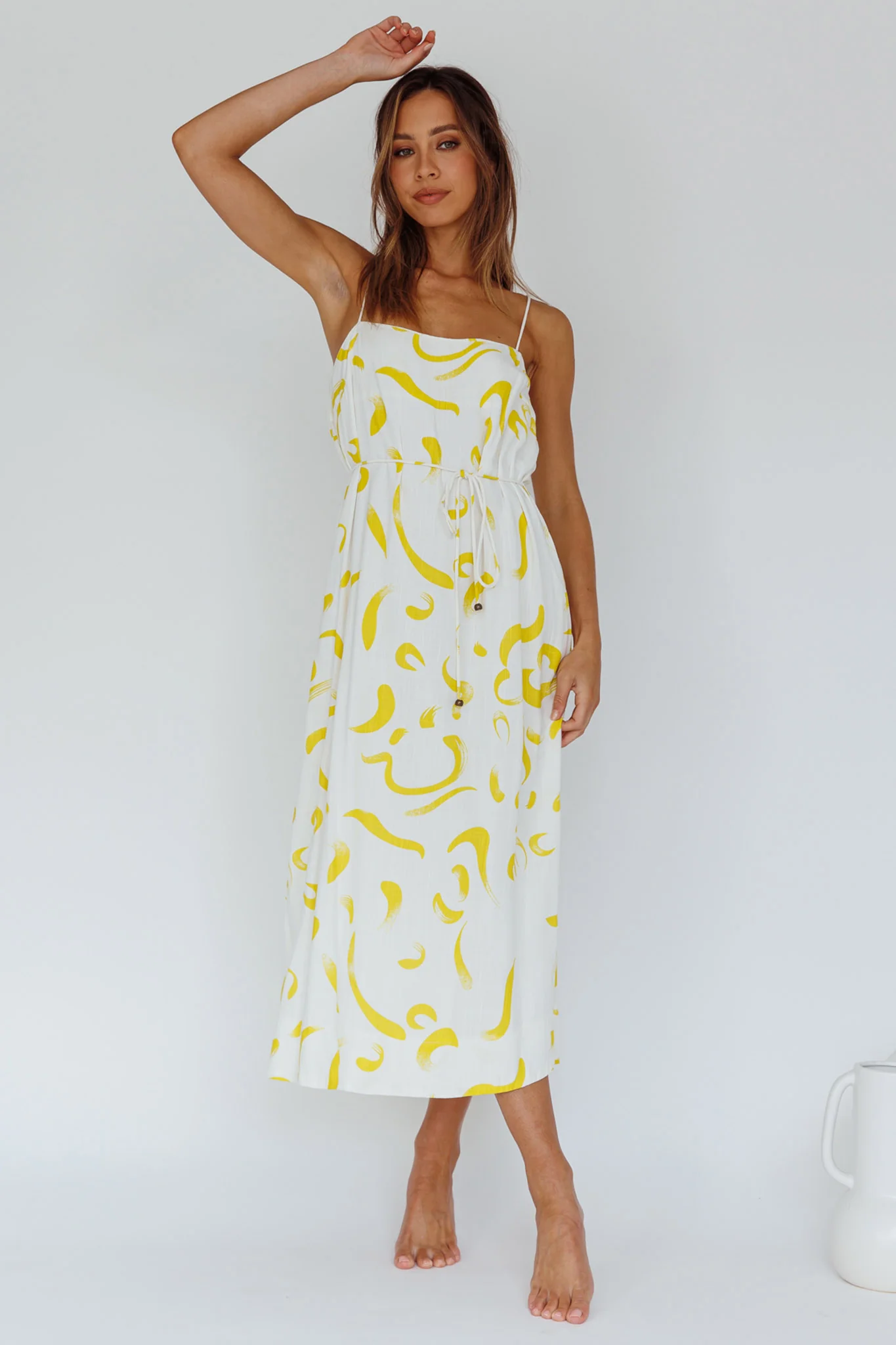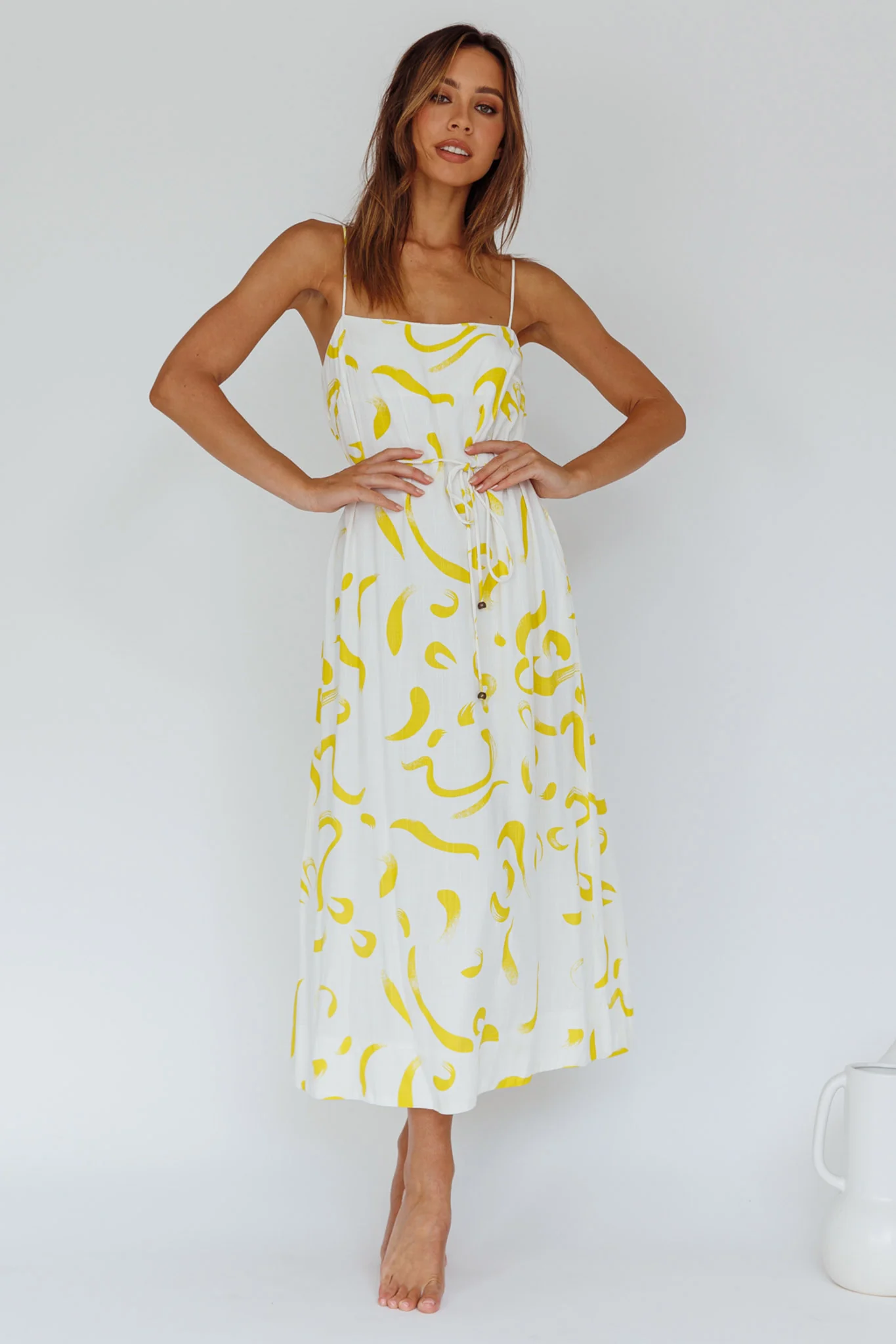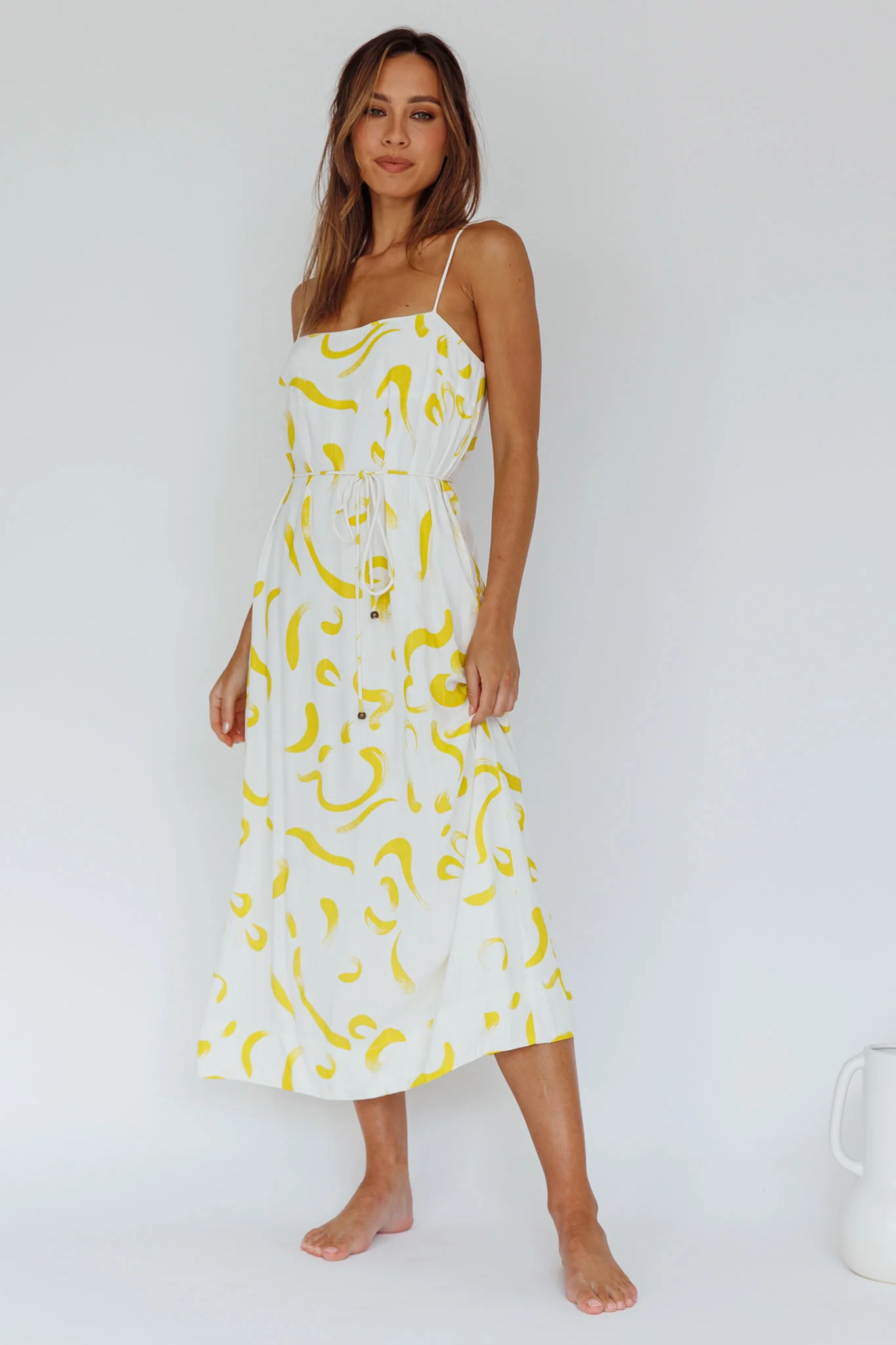 Rossy Waist Tie Midi Dress Printed Yellow