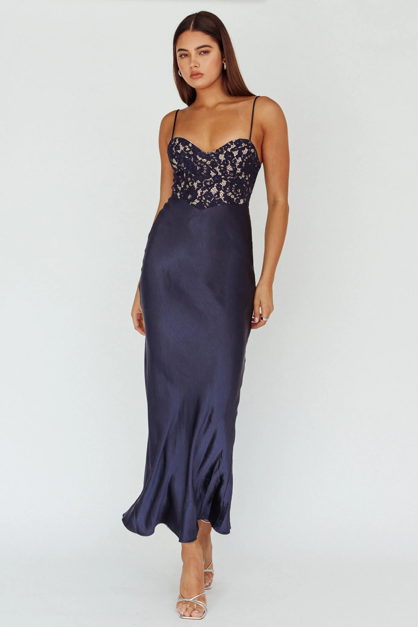 Evening Star Lace Bodice Maxi Dress Navy