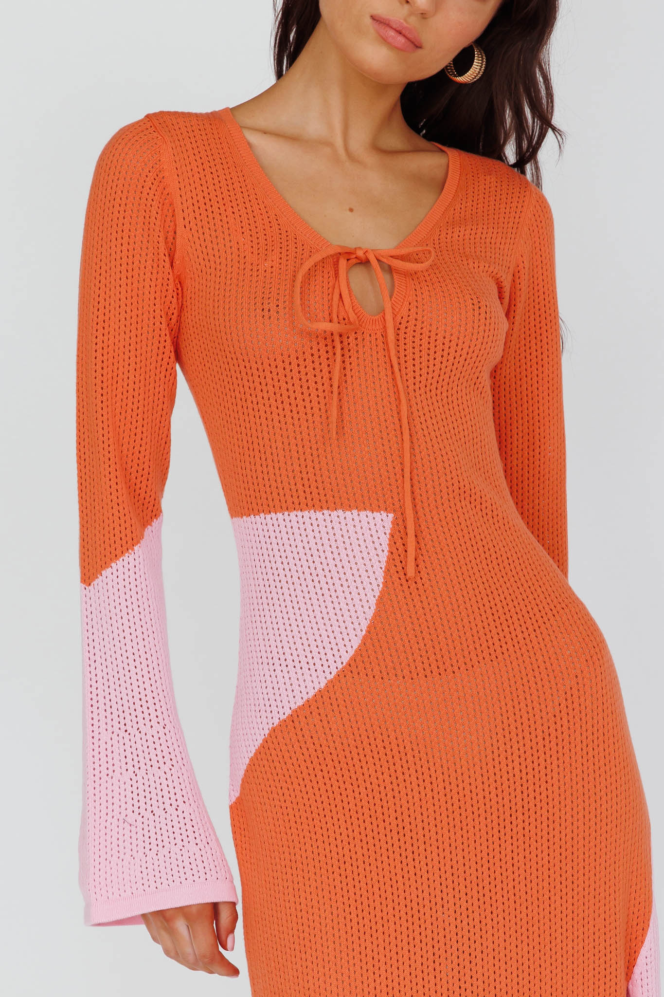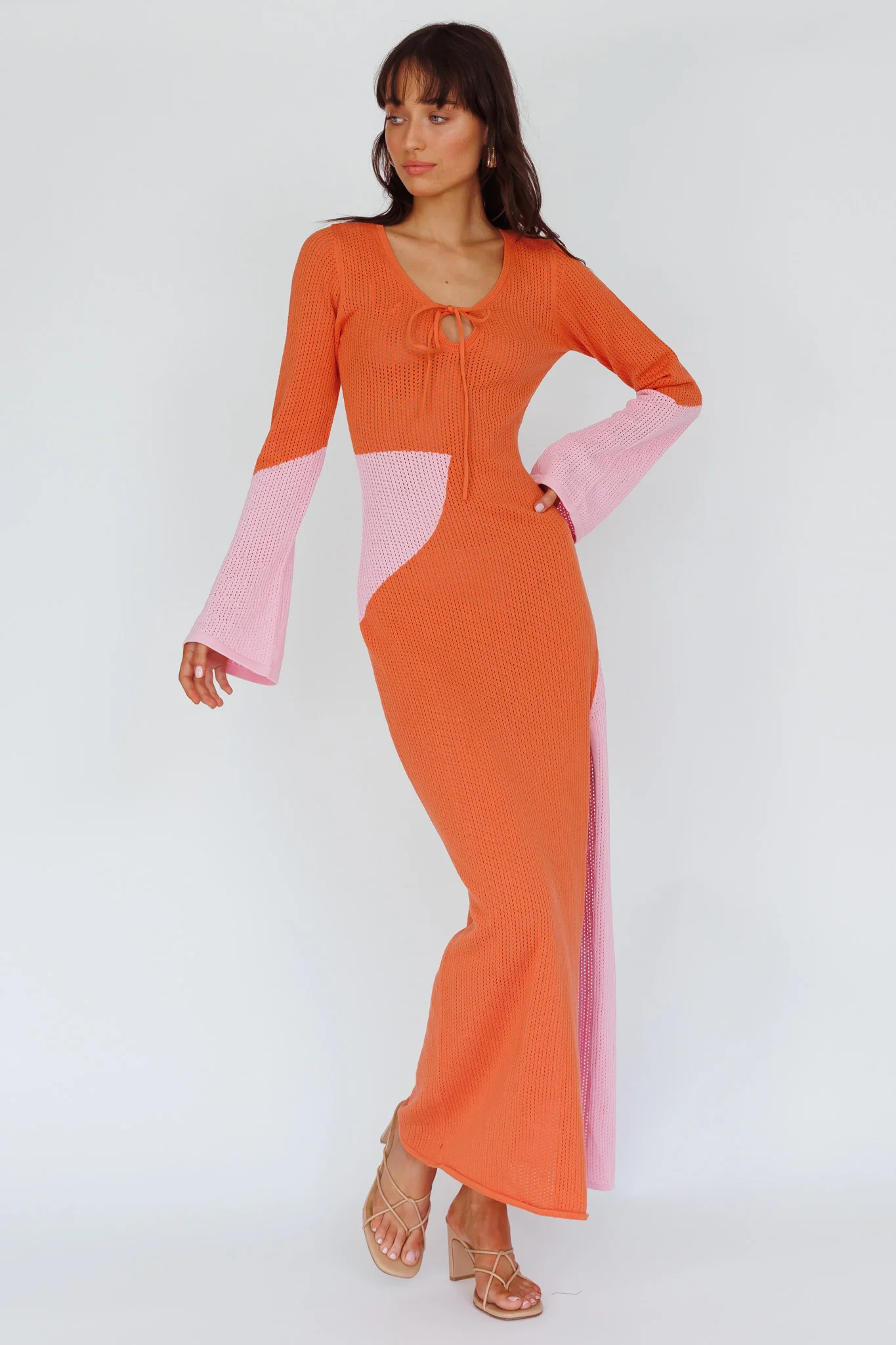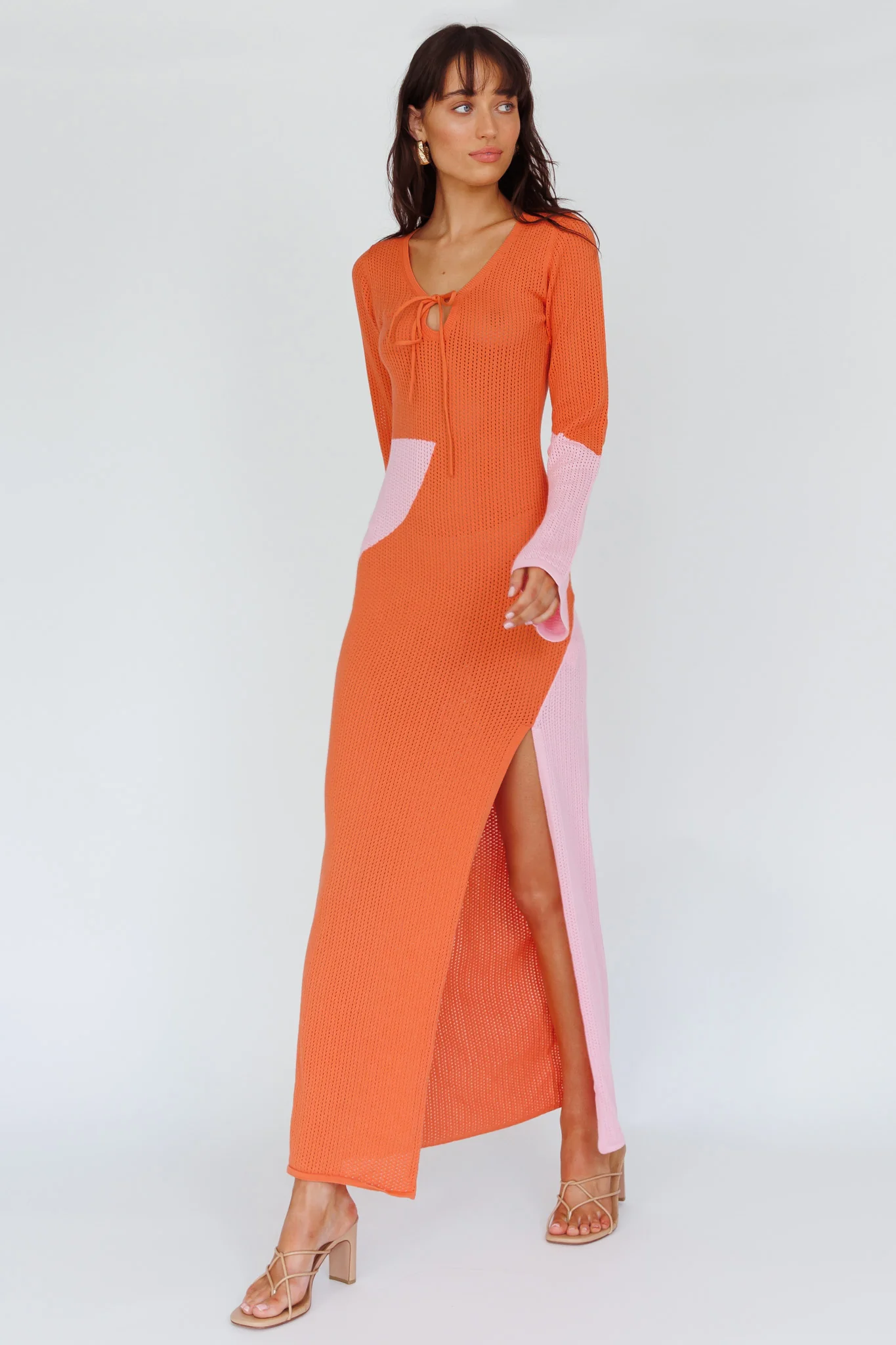 Karsen Long Sleeve Crochet Maxi Dress Orange