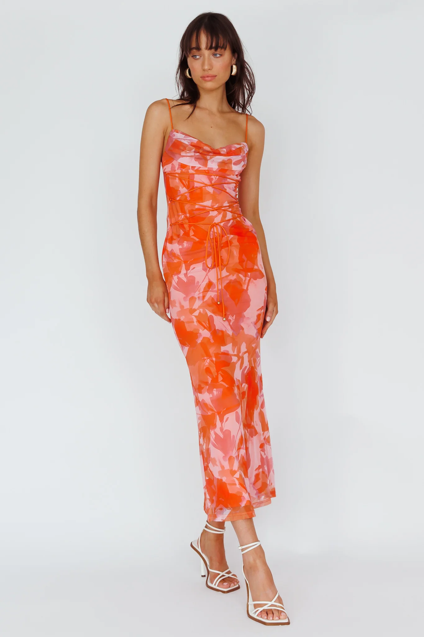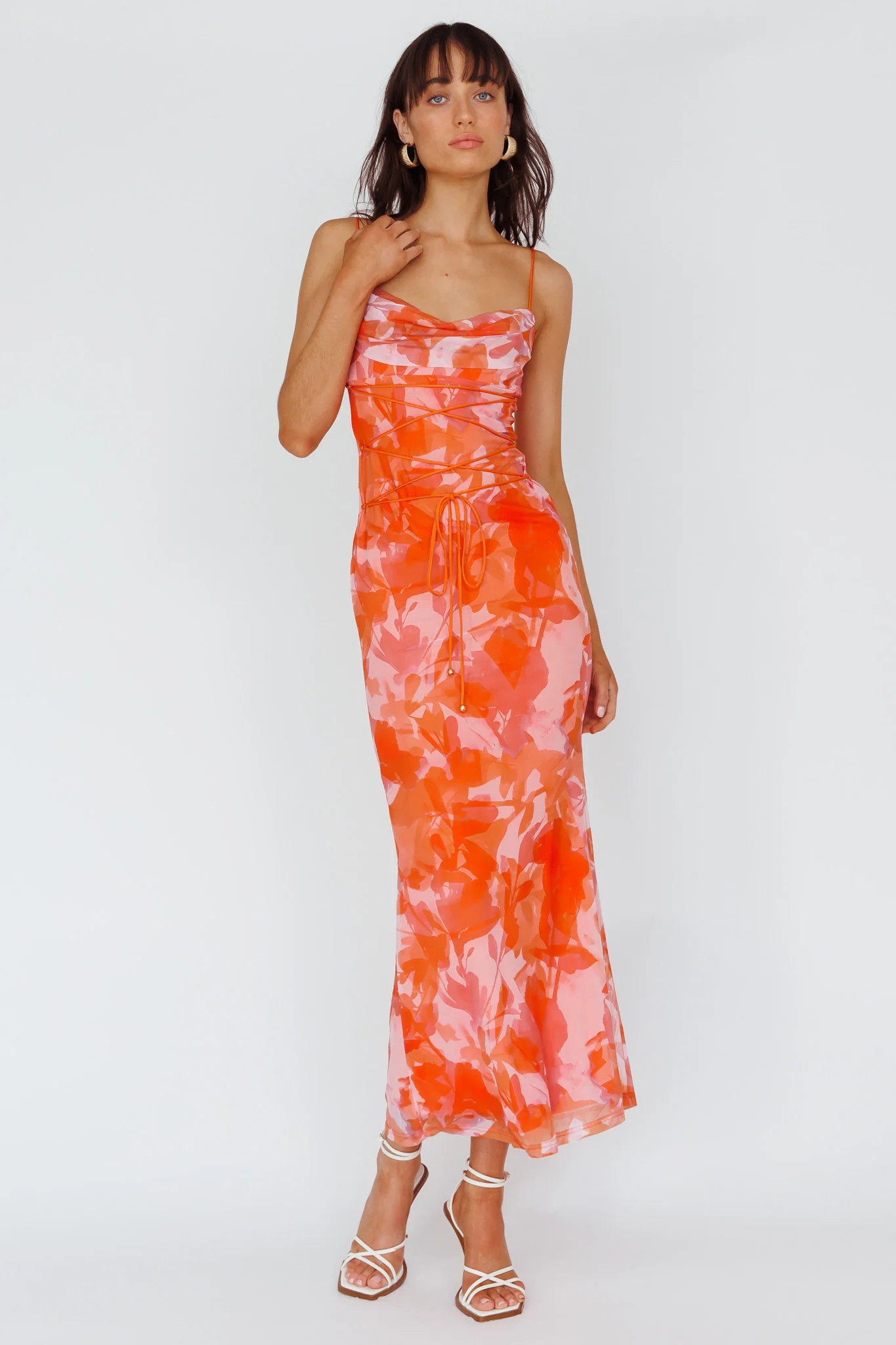 Teava Laced Waist Maxi Dress Print Floral Orange